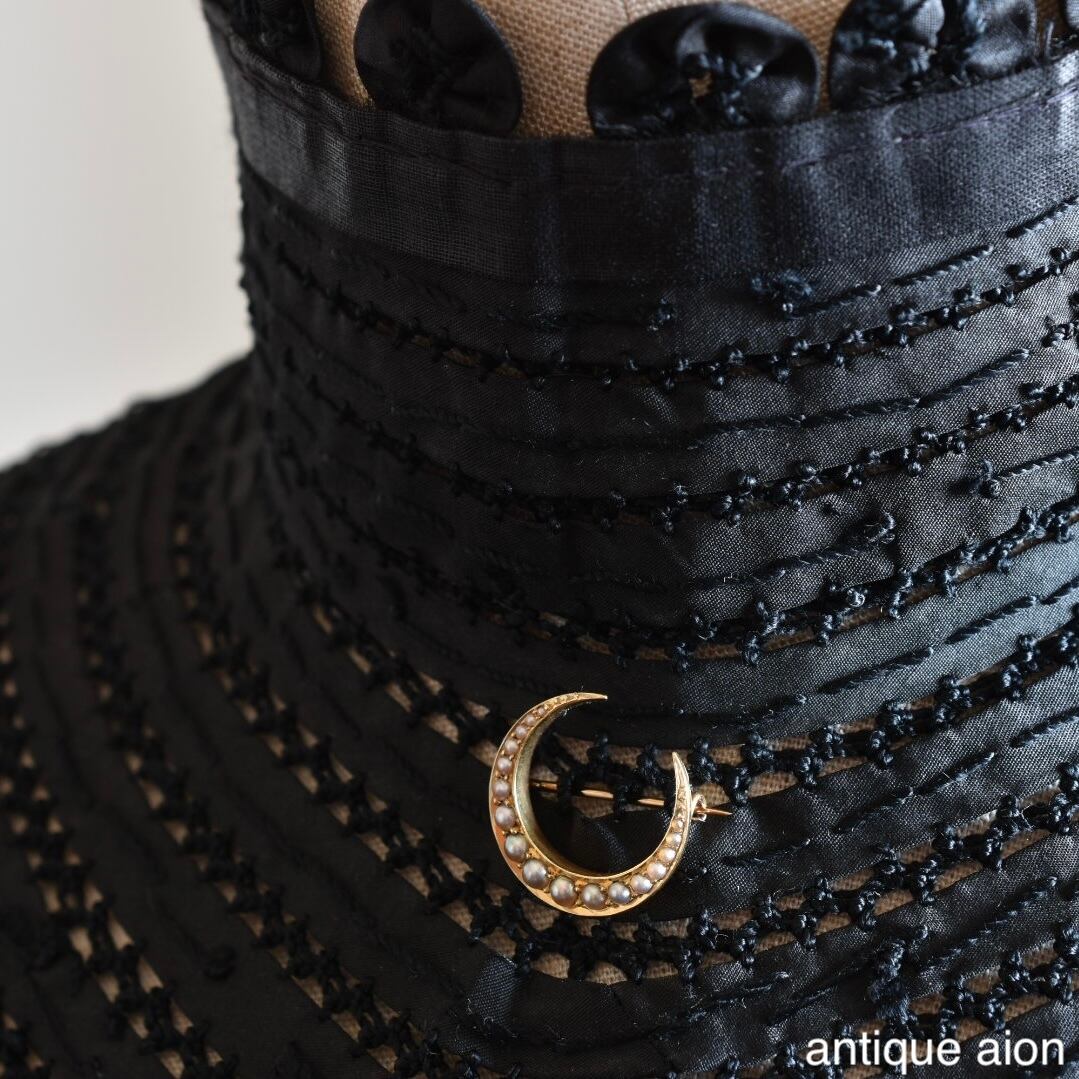 夜空に浮かぶ月のように、神秘的な美しさを放つヴィクトリアンのクレセントムーンブローチ。