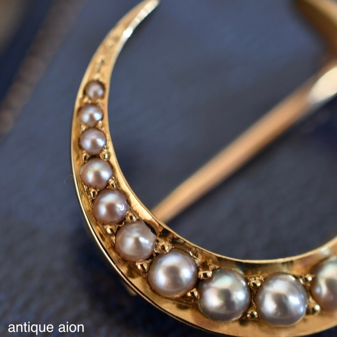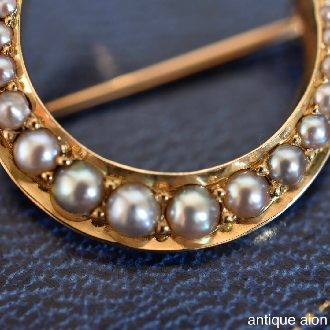 英国アンティーク 19世紀後期 ヴィクトリア朝時代 15ctゴールド&天然シードパールのクレセントムーンブローチ