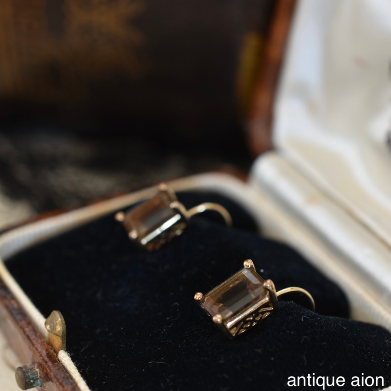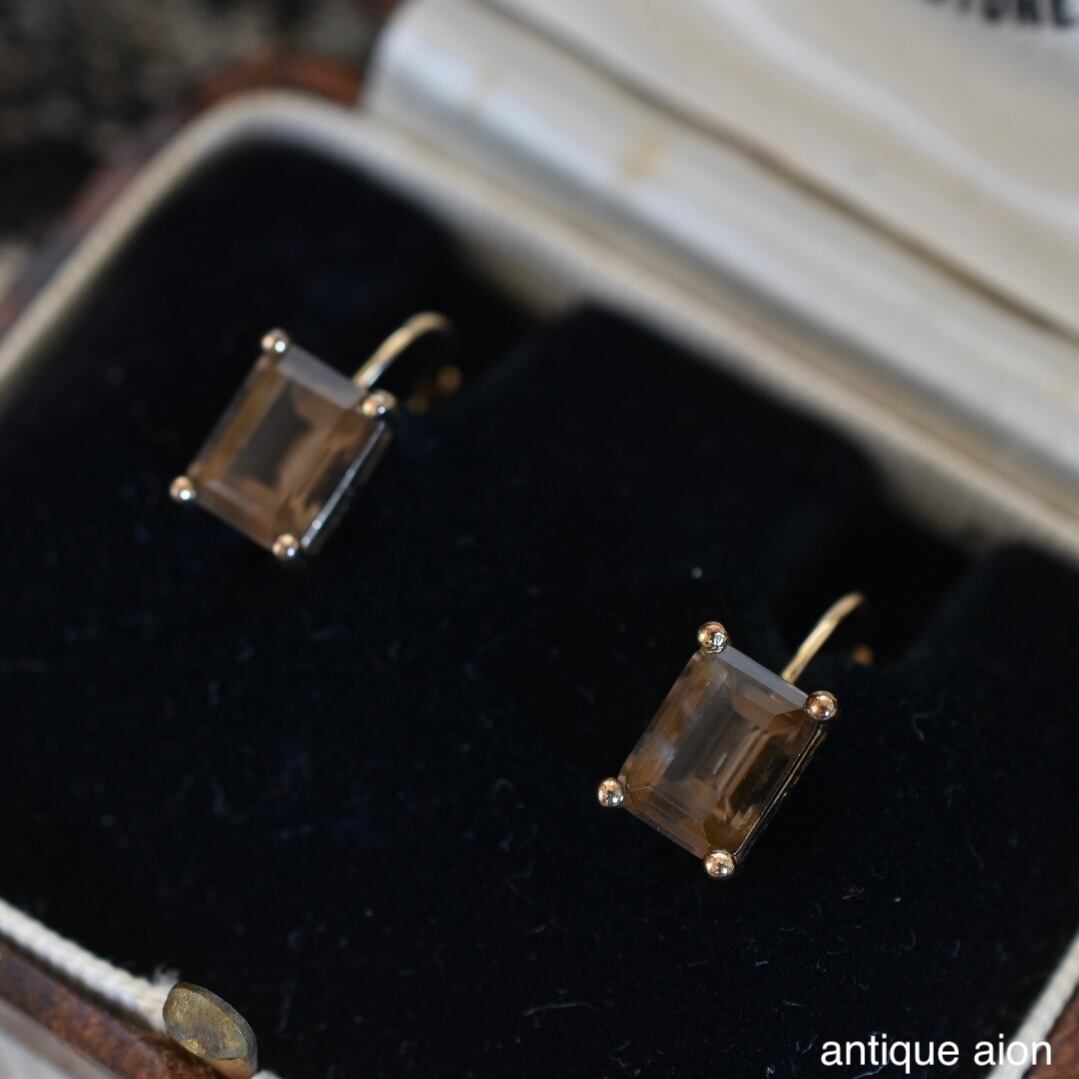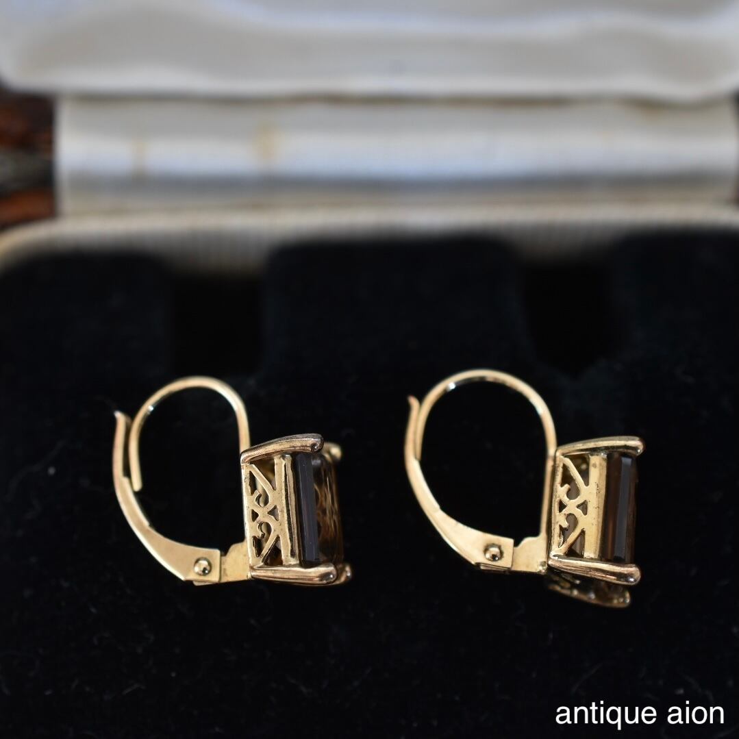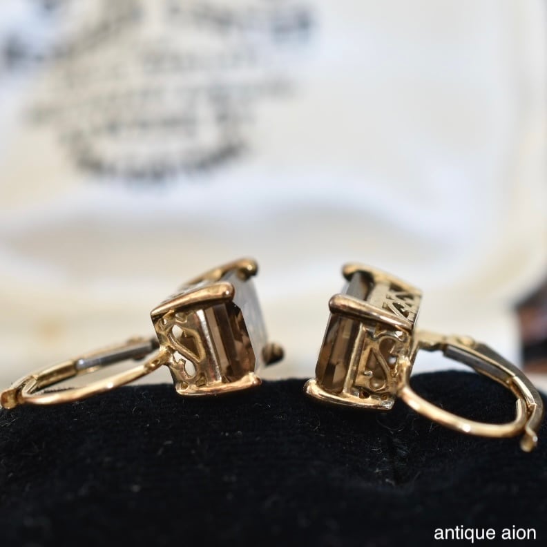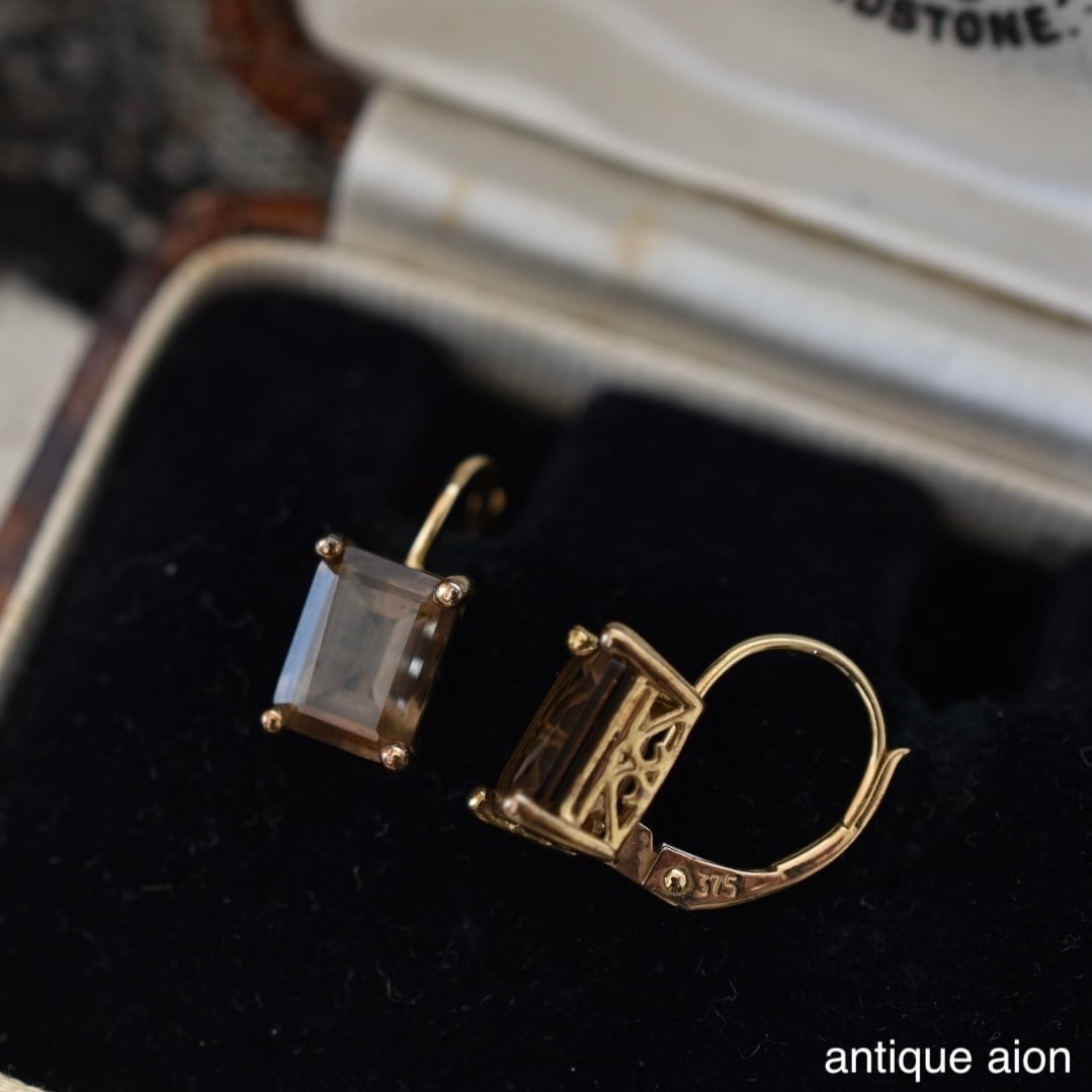 英国ヴィンテージ 1970s-80s 9ctゴールド 天然スモーキークォーツ ピアス