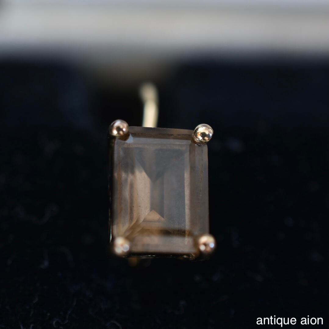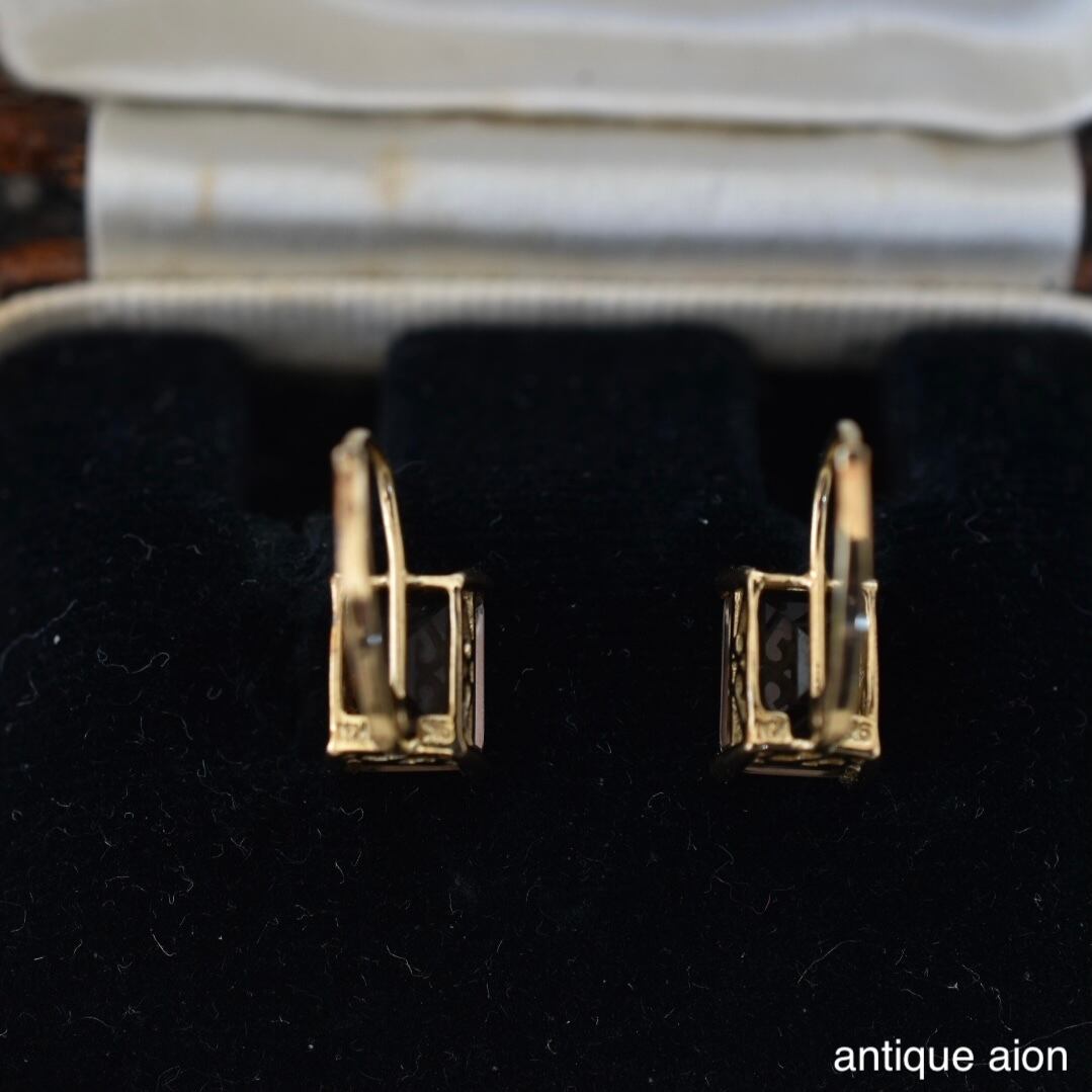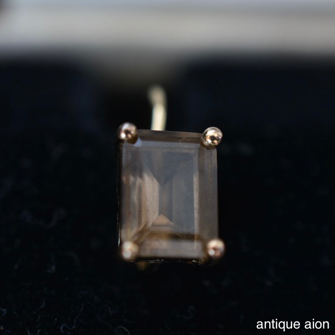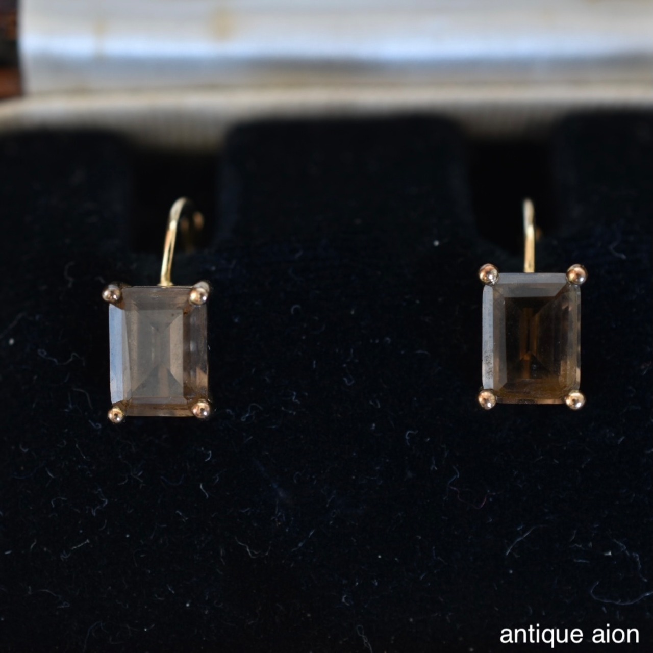 英国ヴィンテージ 1970s-80s 9ctゴールド 天然スモーキークォーツ ピアス