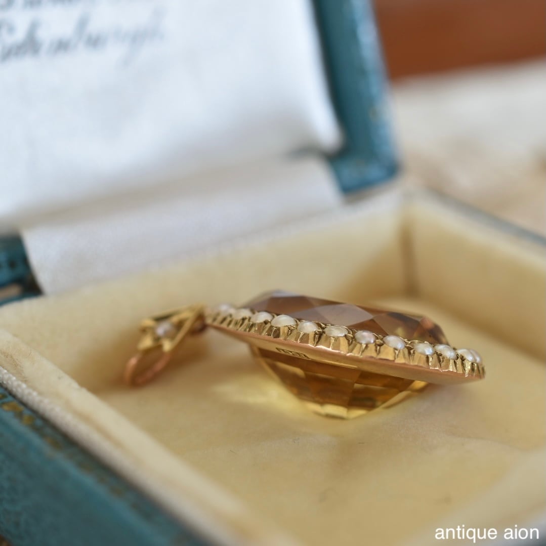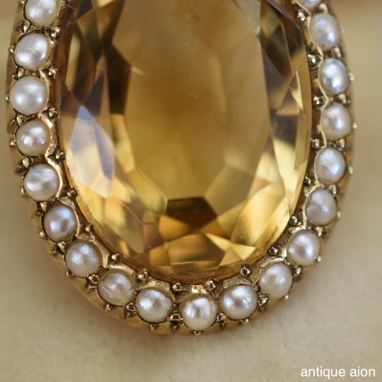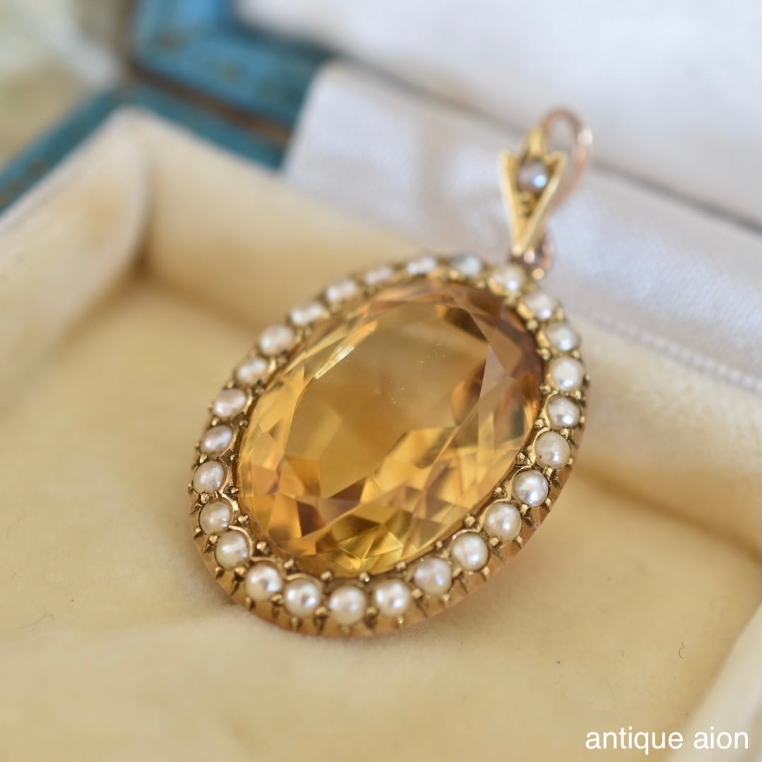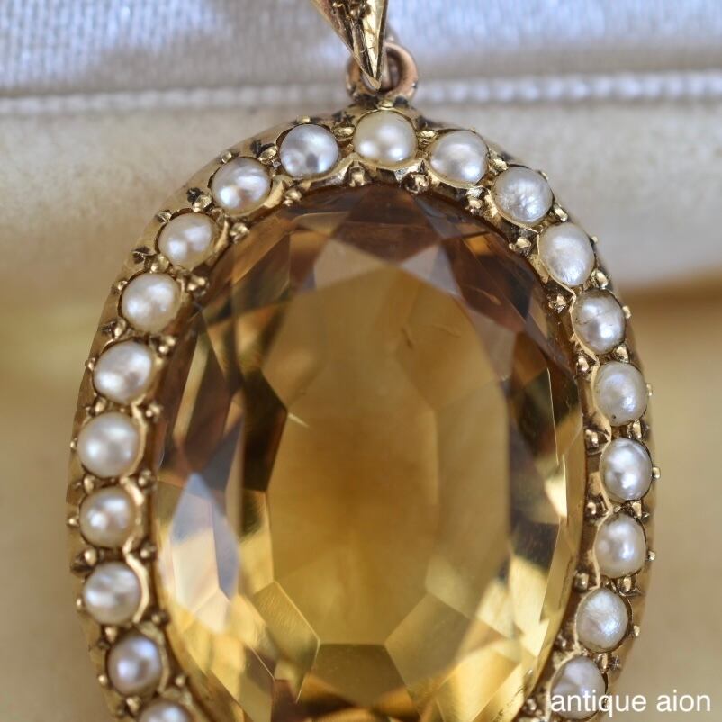英国アンティーク 19世紀後期-20世紀初頭 15ctゴールド 天然シトリン&シードパール ペンダントトップ