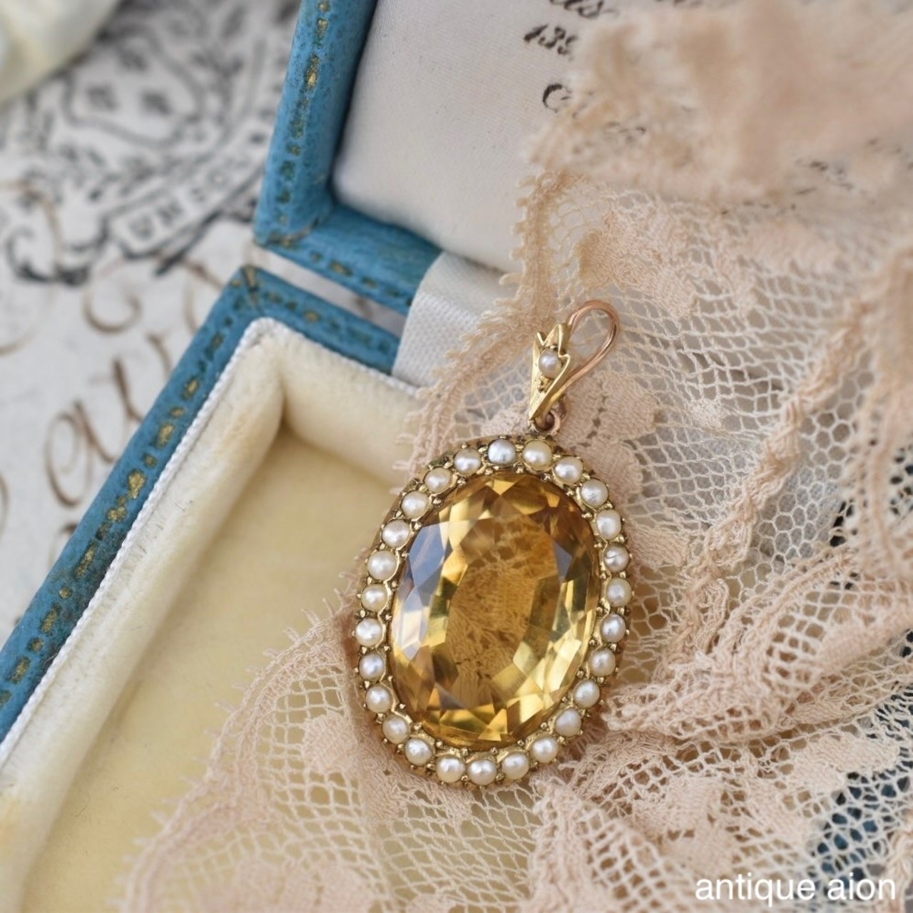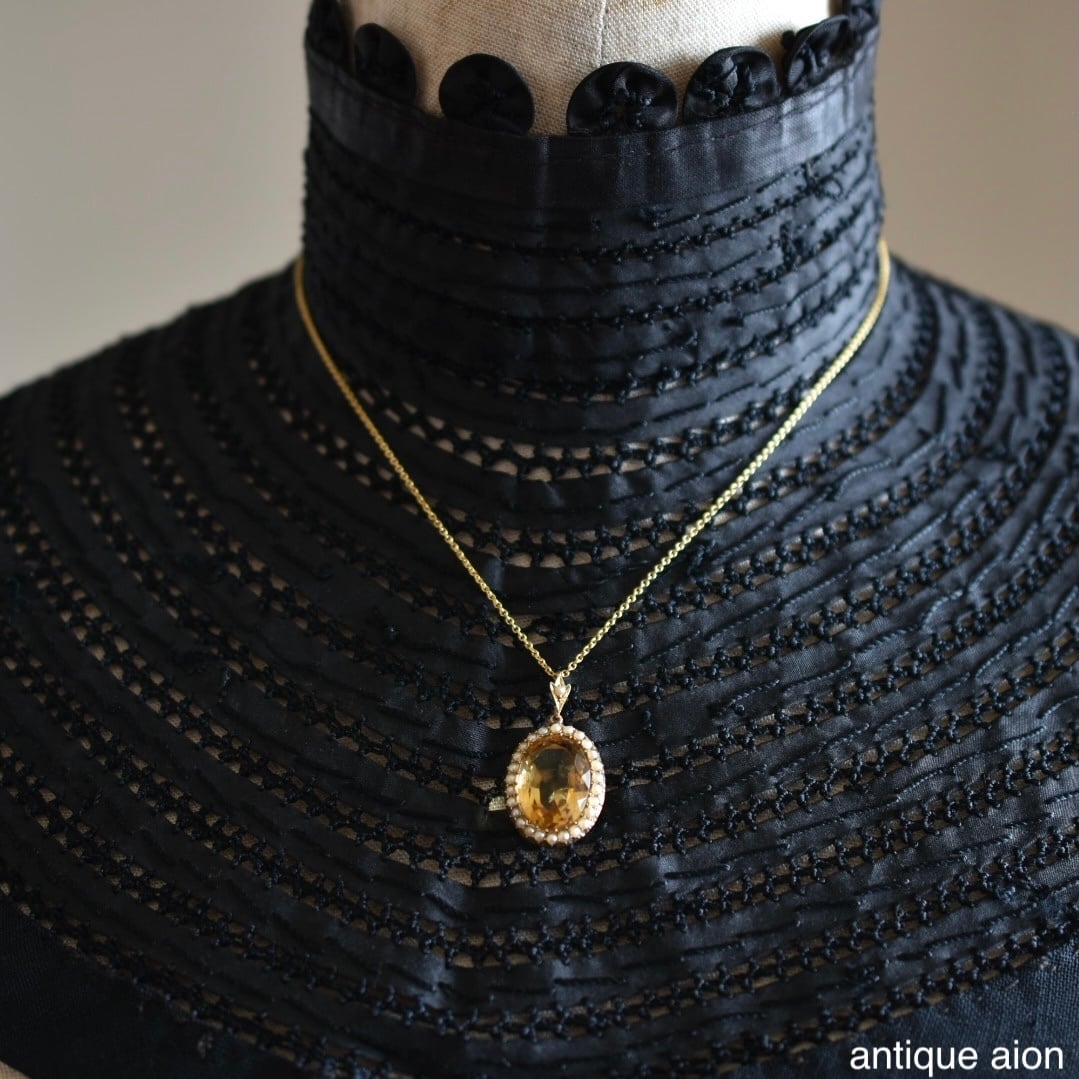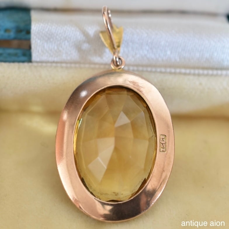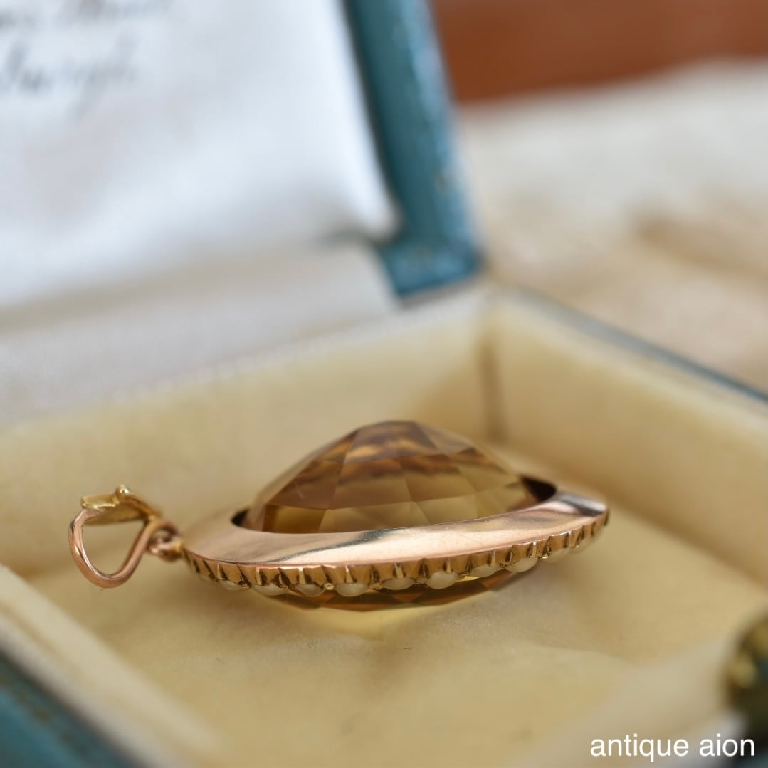 英国アンティーク 19世紀後期-20世紀初頭 15ctゴールド 天然シトリン&シードパール ペンダントトップ