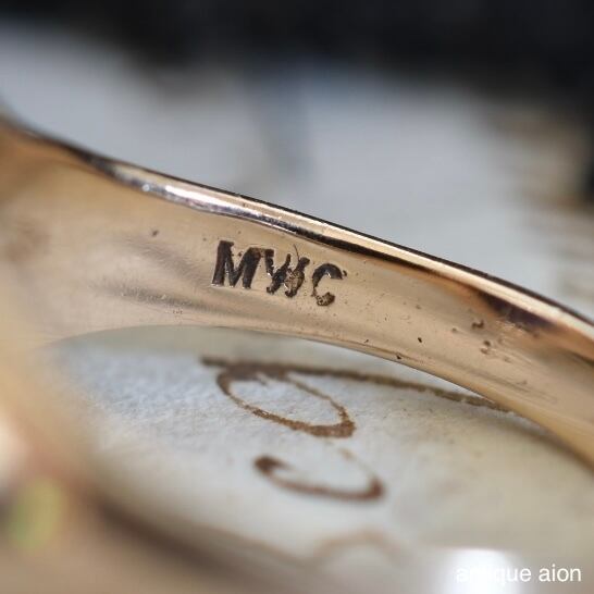 リングの内側には、メーカーズマーク 「MWC」、アイルランドを象徴する シーテッドレディ(ハイバーニア)、金の品位を示す 「9.375」、そして1966年を示す デートレター「Y」 が刻まれており、確かな来歴を物語っています。