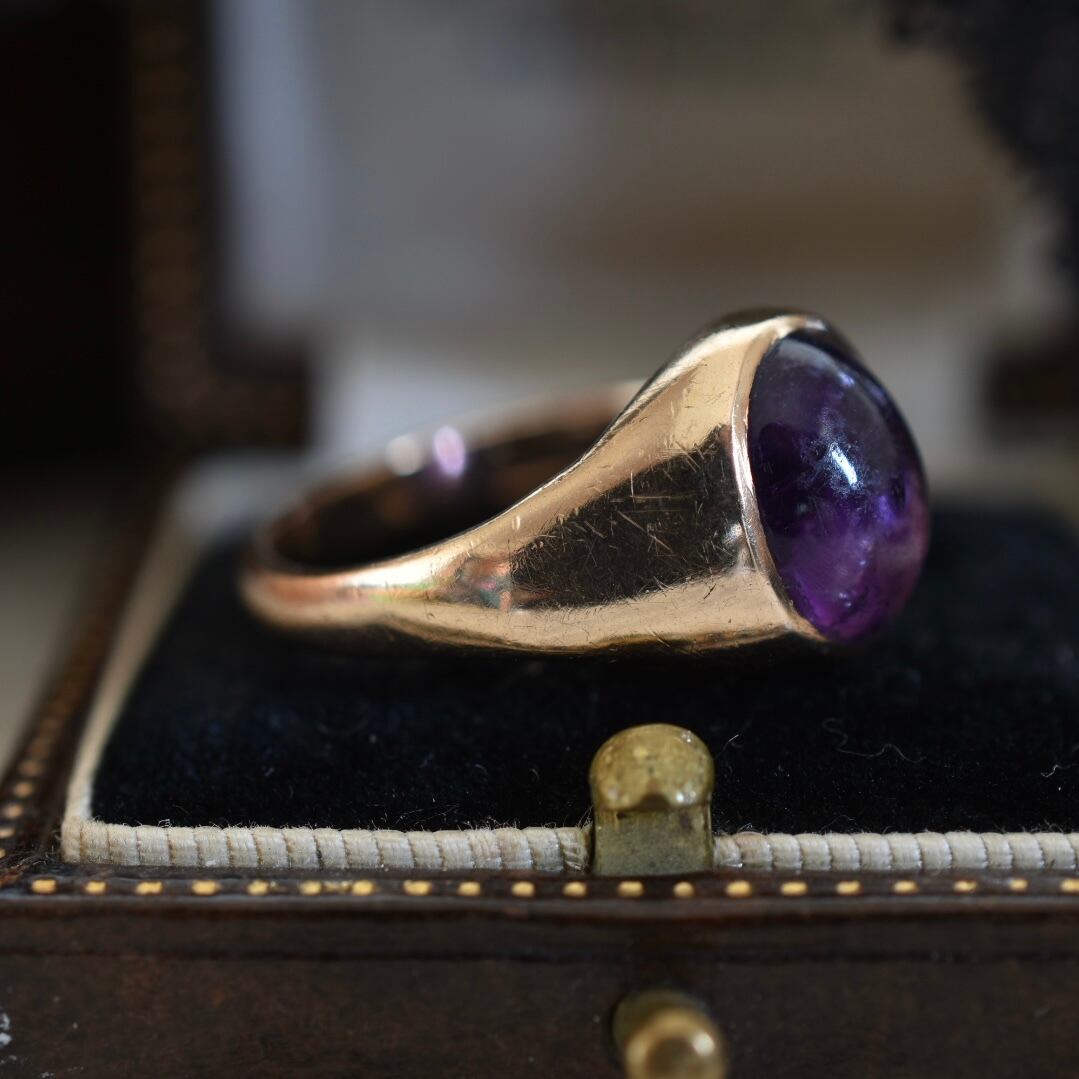 深みある紫が印象的な天然アメジストをあしらった、アイルランド製ヴィンテージリングのご紹介です。
