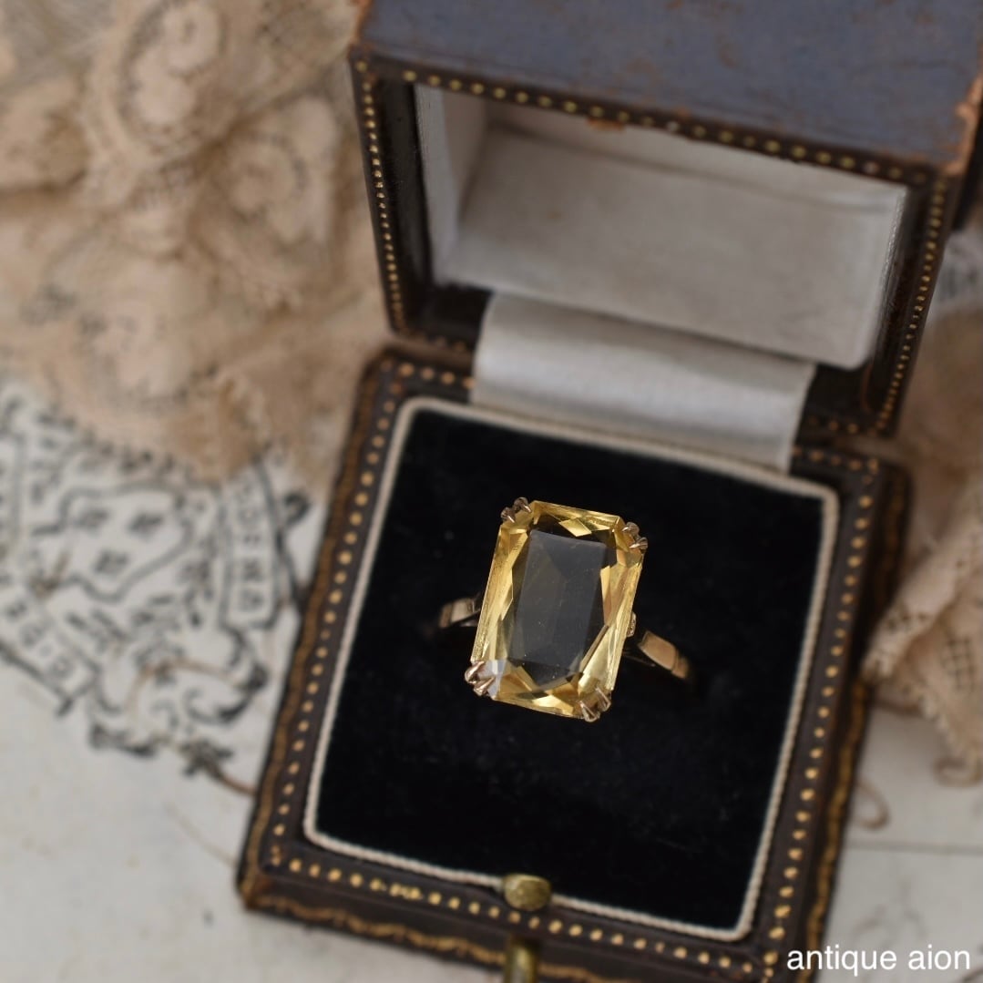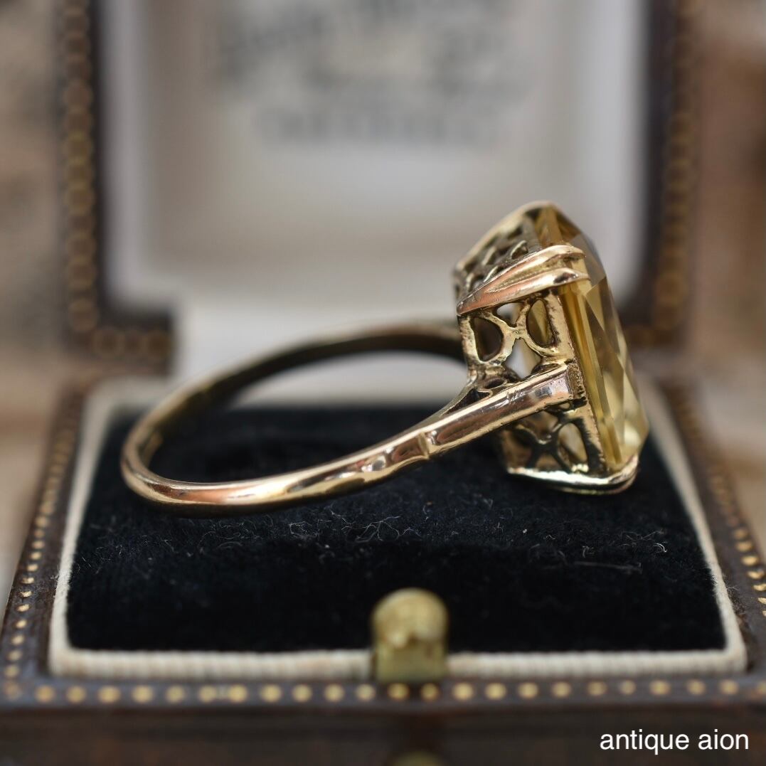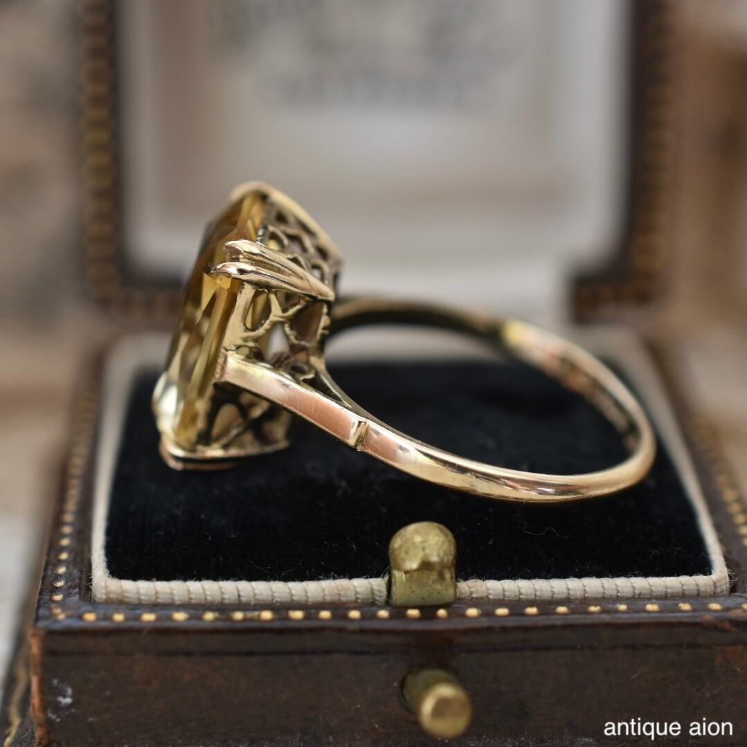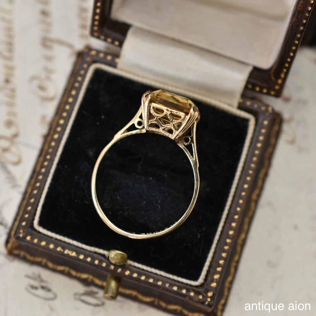 淡い透明感のあるイエローがやさしく指先を彩る、天然シトリンをあしらったアンティークリングのご紹介です。