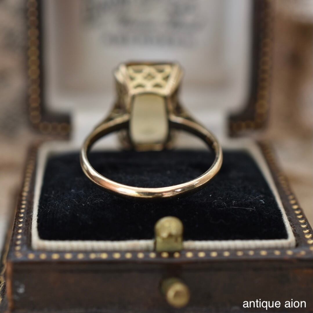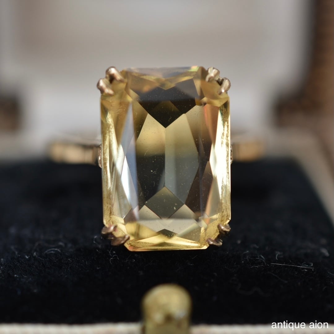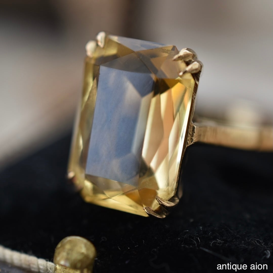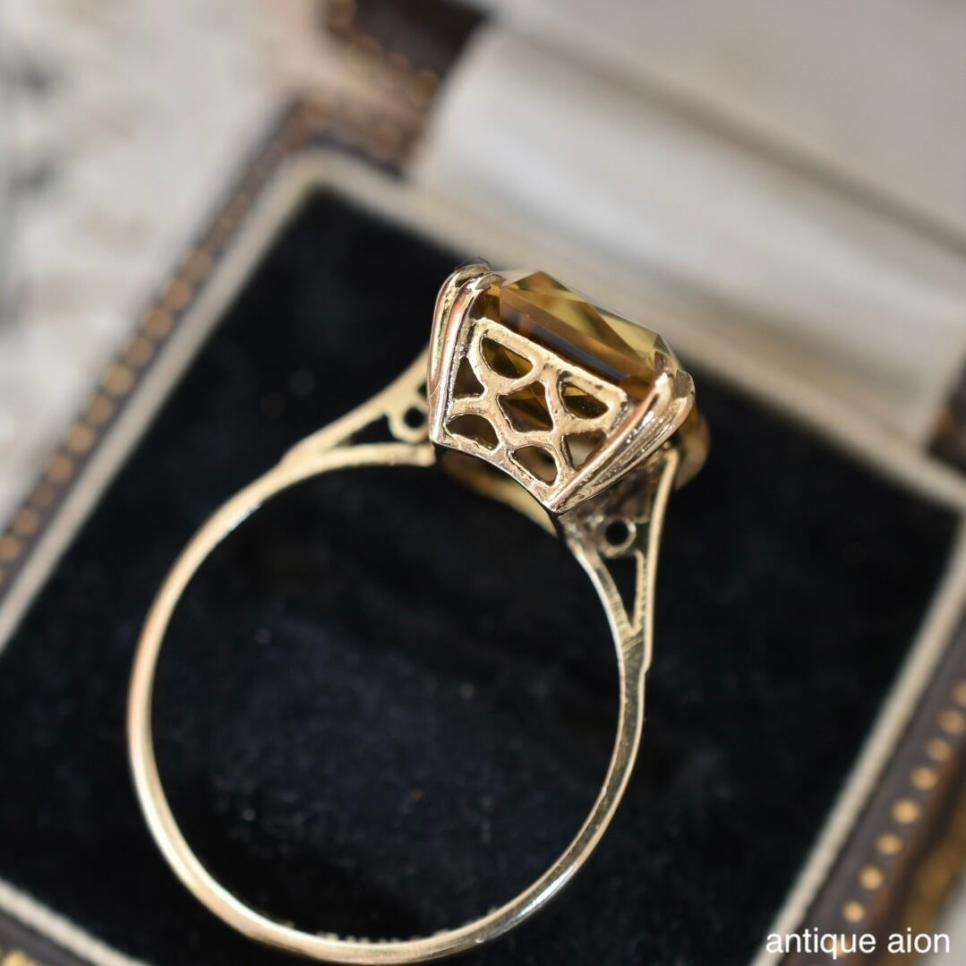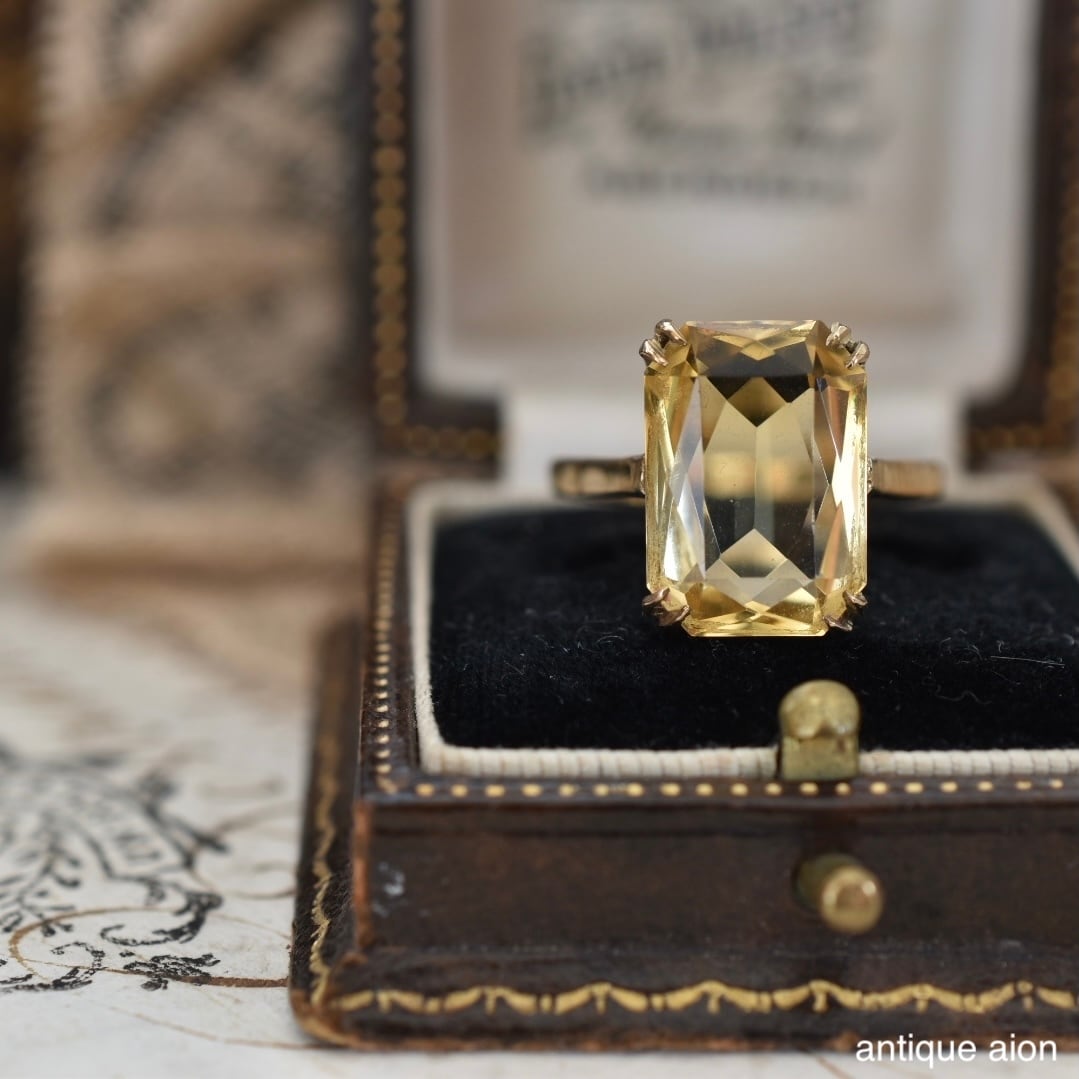 淡い透明感のあるイエローがやさしく指先を彩る、天然シトリンをあしらったアンティークリングのご紹介です。