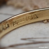 リングの内側には、メーカーズマーク「R/STW&G」、品位を示す「9.375」、バーミンガムのアッセイマーク、そして1962-1963年を示すデートレター「N」が刻まれており、確かな来歴を物語っています。