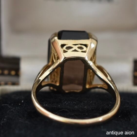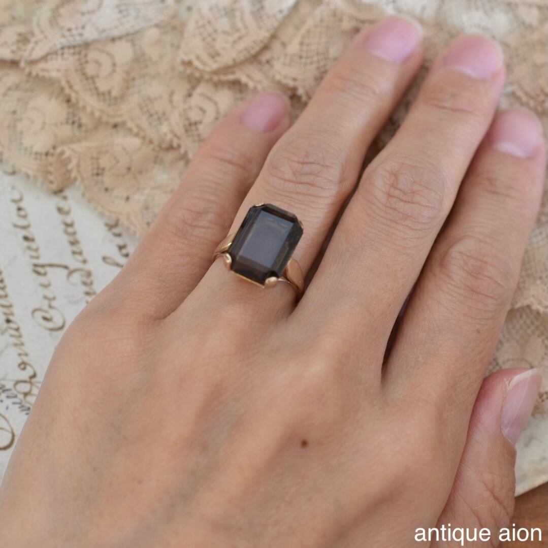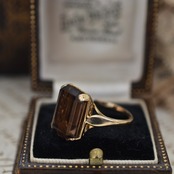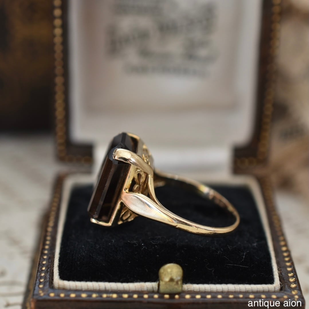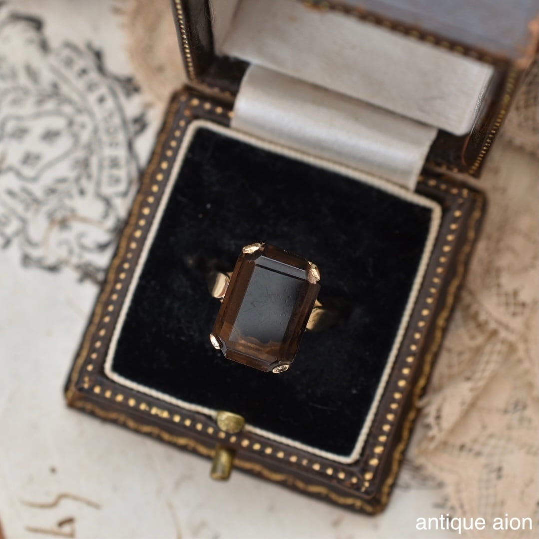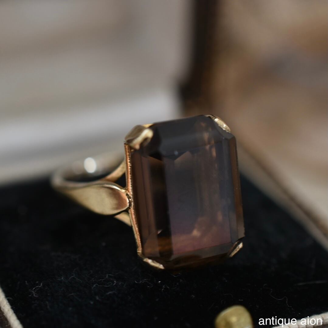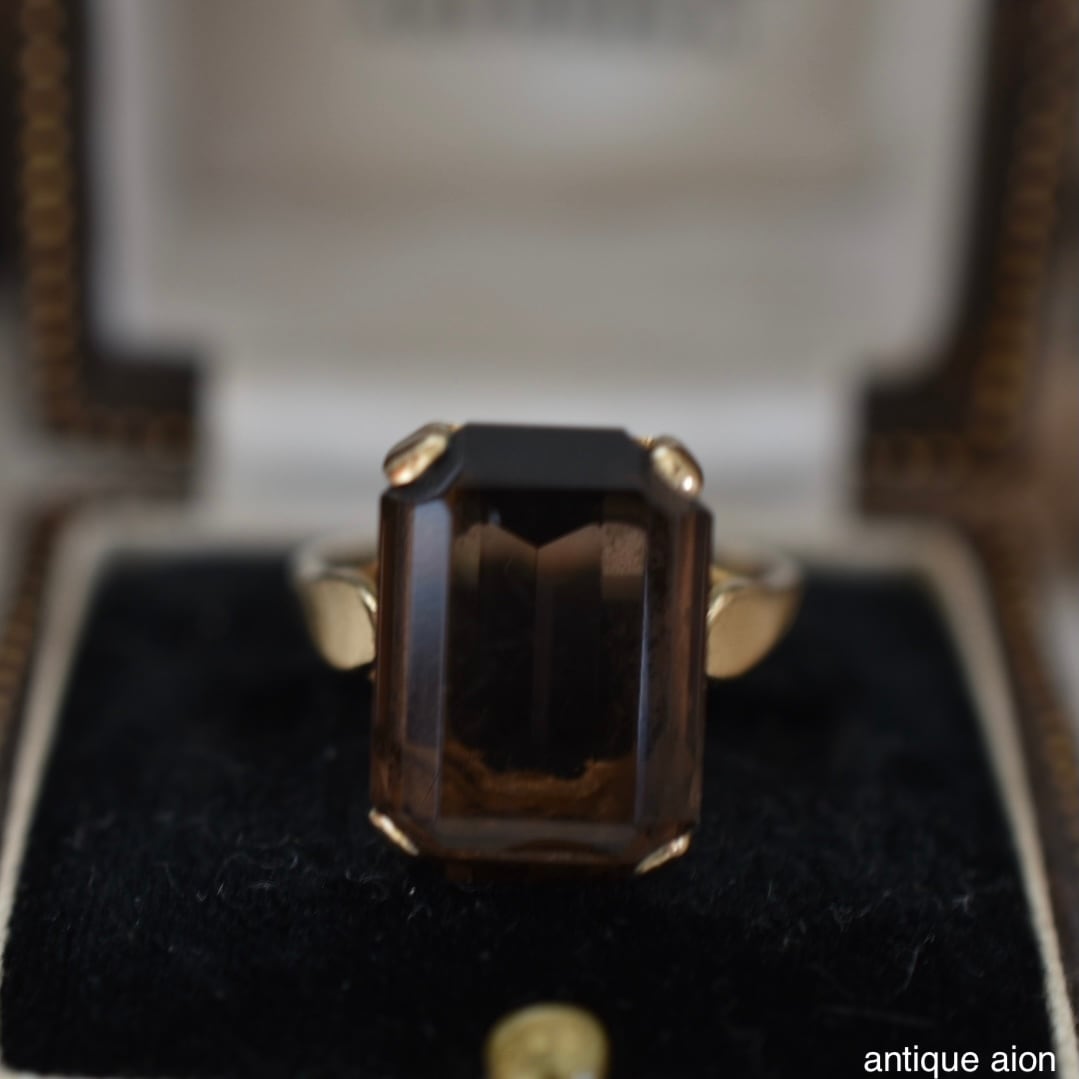 1975年ロンドン製、9ctゴールドに大粒の天然スモーキークォーツをあしらった、ヴィンテージリングのご紹介です。