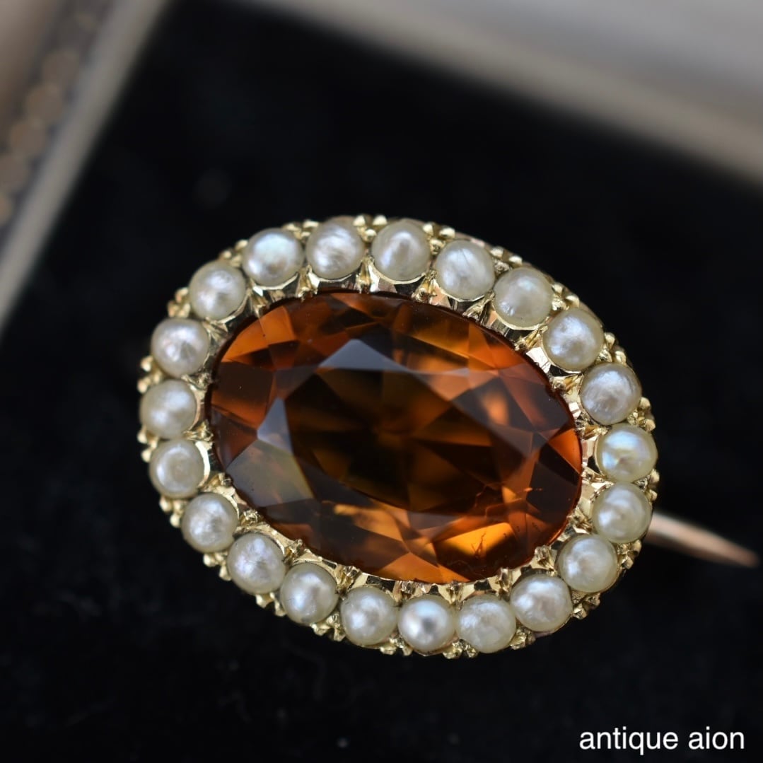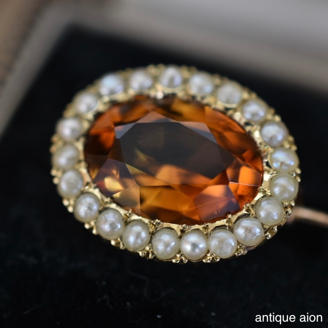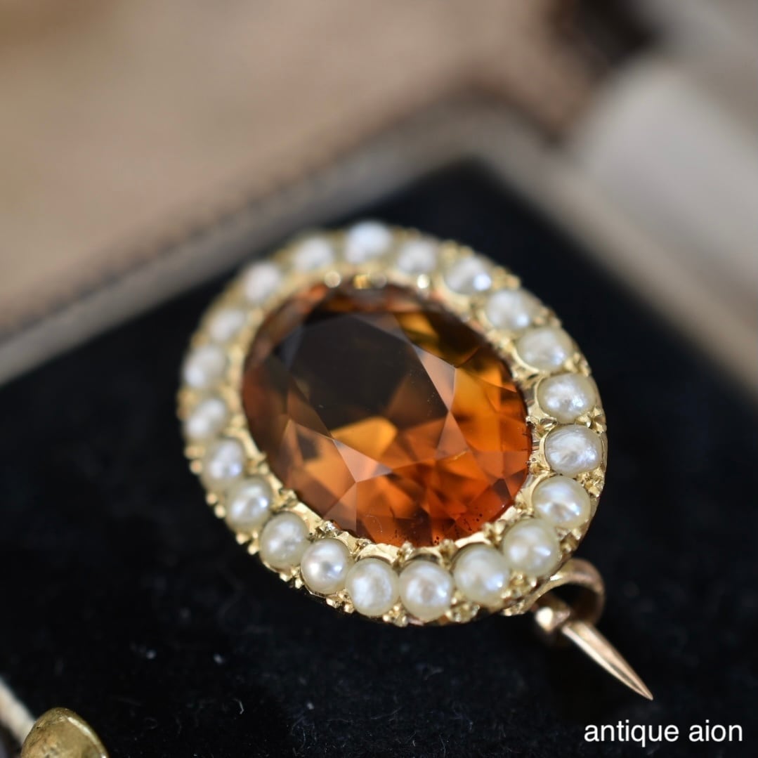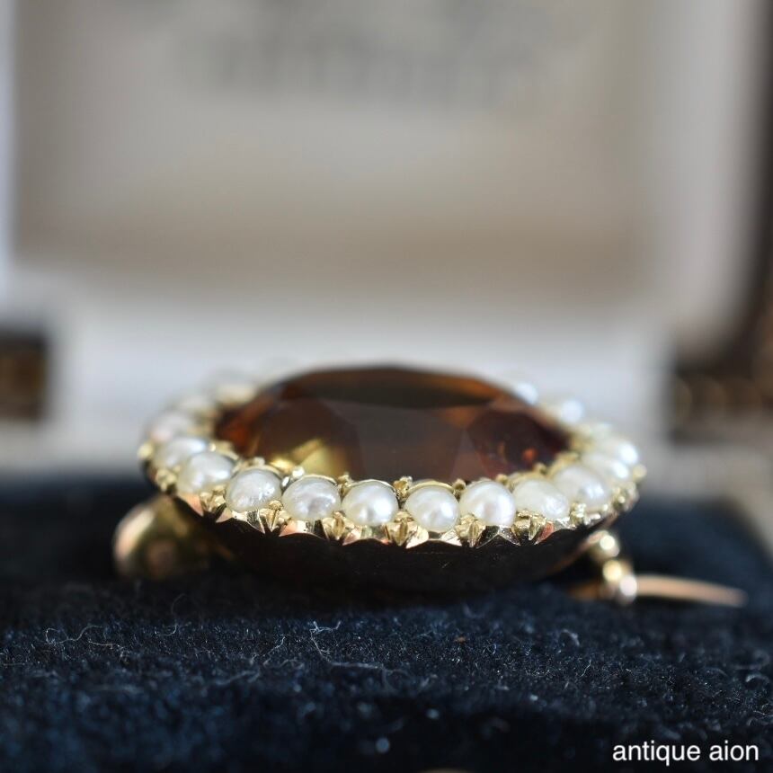 アンティークならではの優美さをまとった、天然シトリンとシードパールのクラスターブローチのご紹介です。