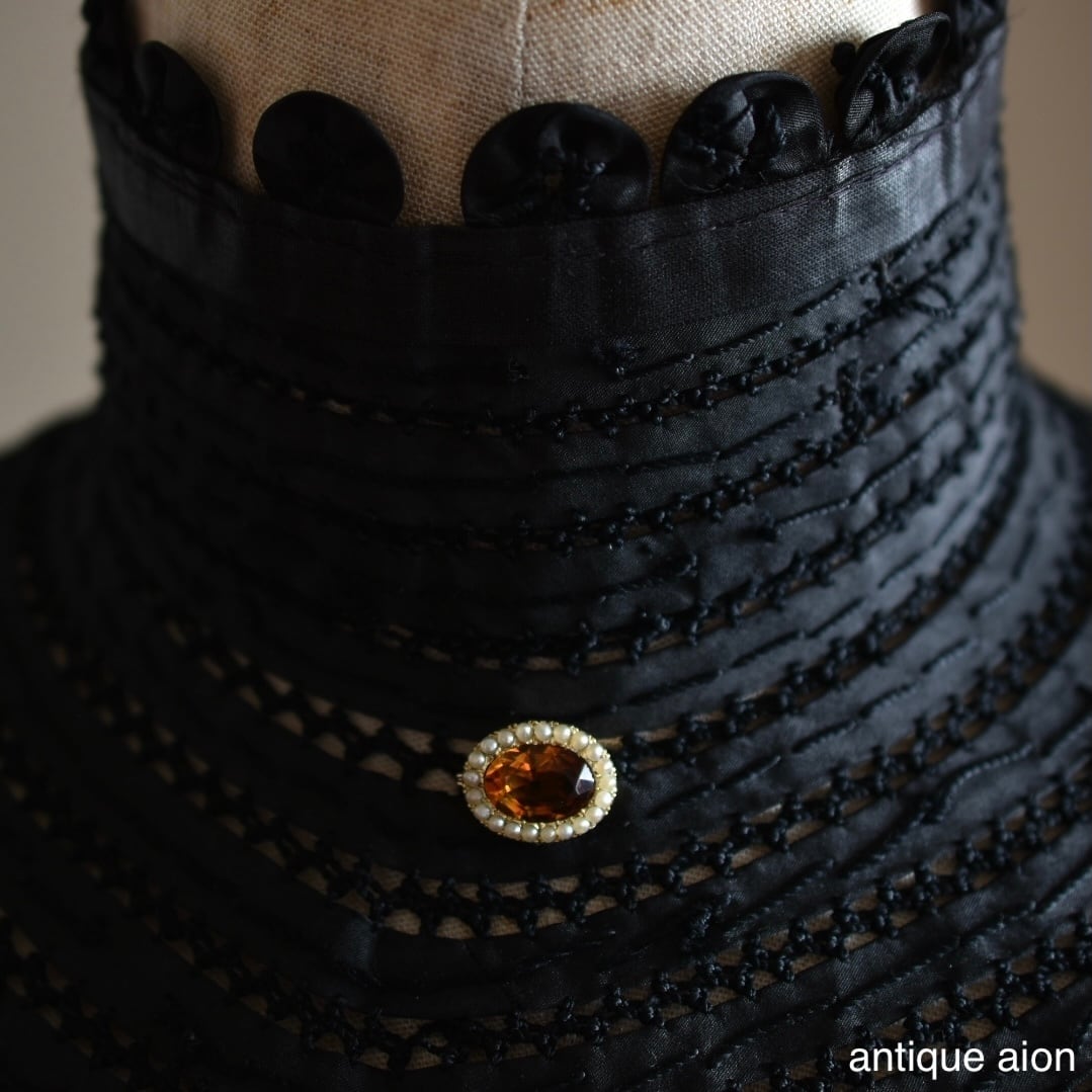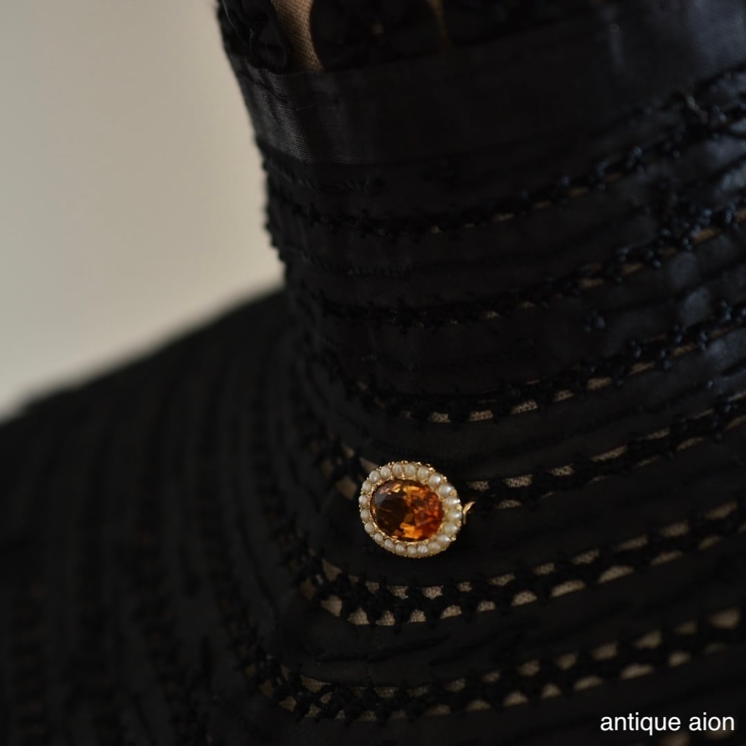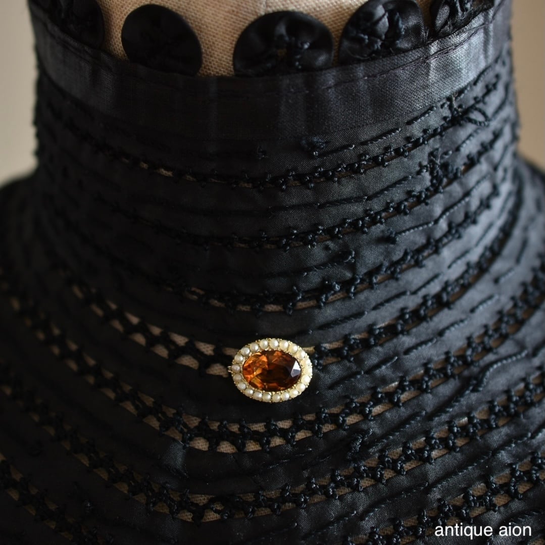 アンティークならではの優美さをまとった、天然シトリンとシードパールのクラスターブローチのご紹介です。