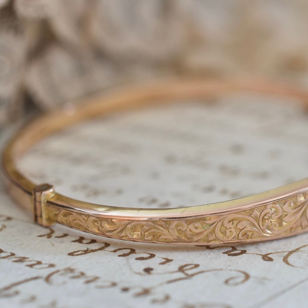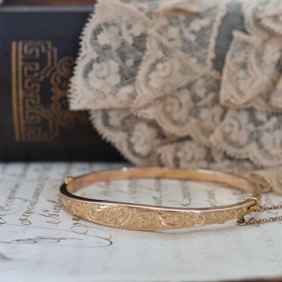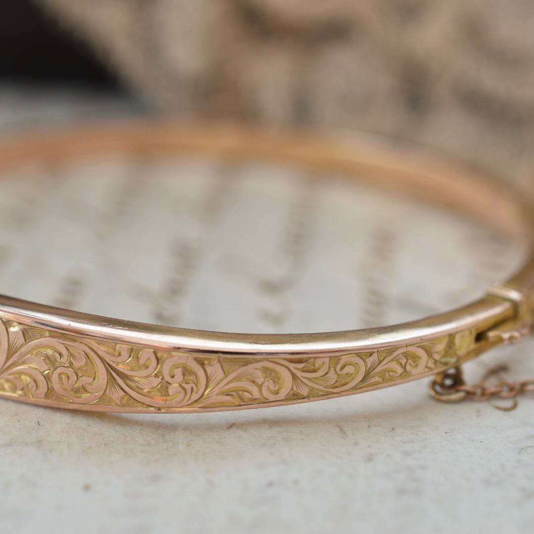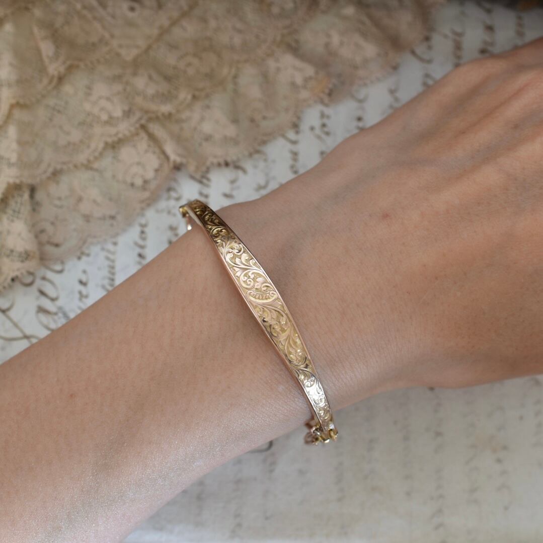 英国アンティーク 1915年 9ctゴールド アカンサス模様のバングル
