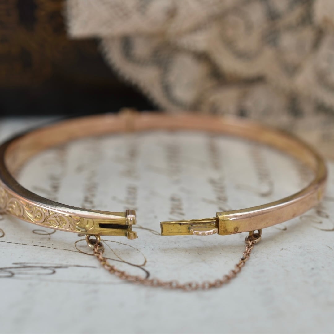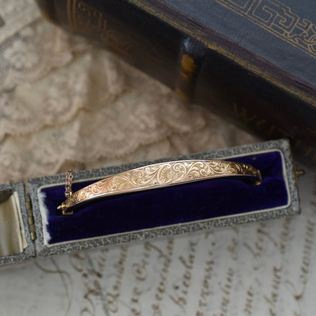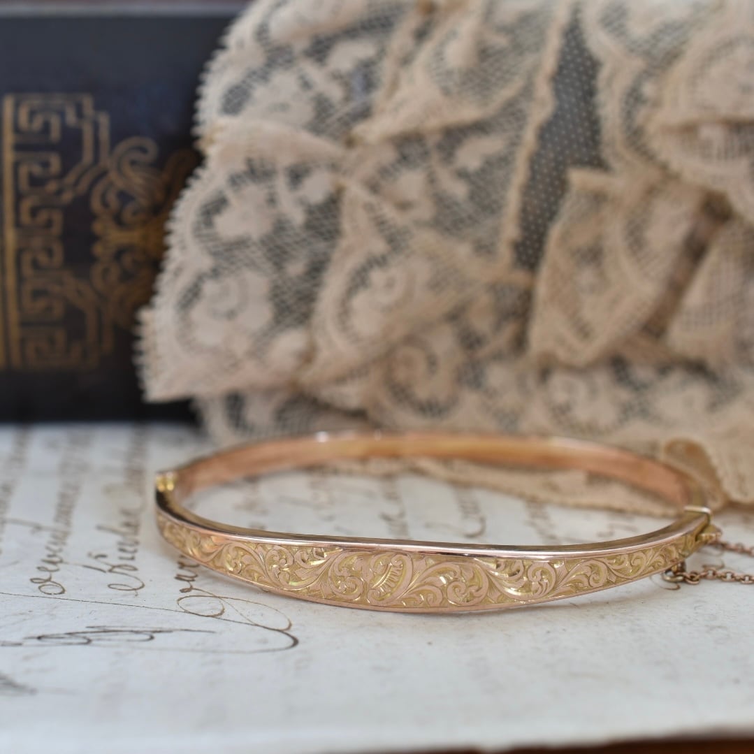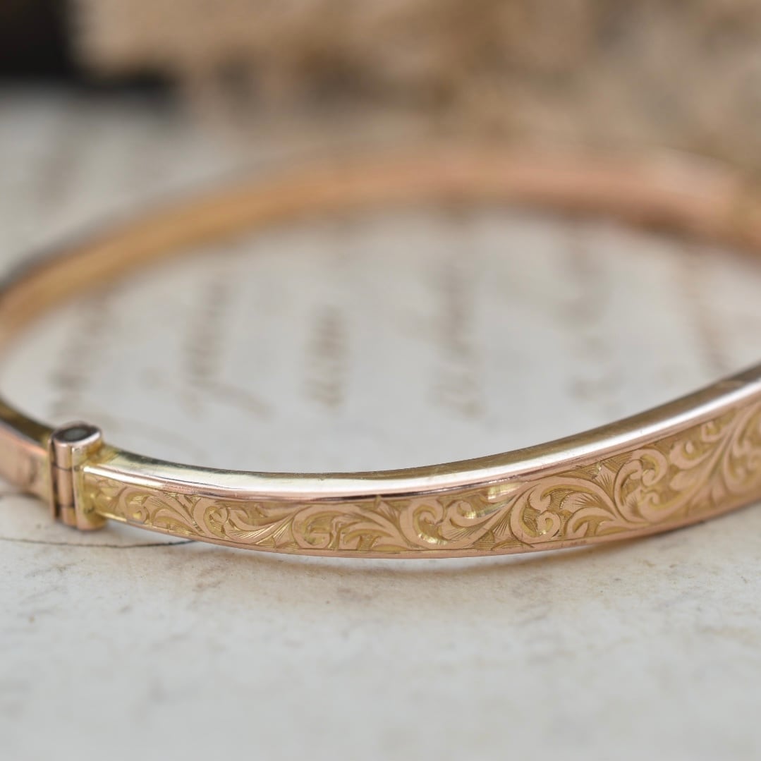 英国アンティーク 1915年 9ctゴールド アカンサス模様のバングル