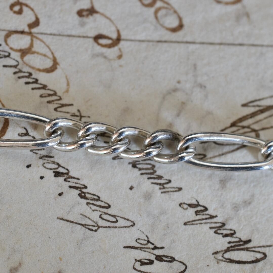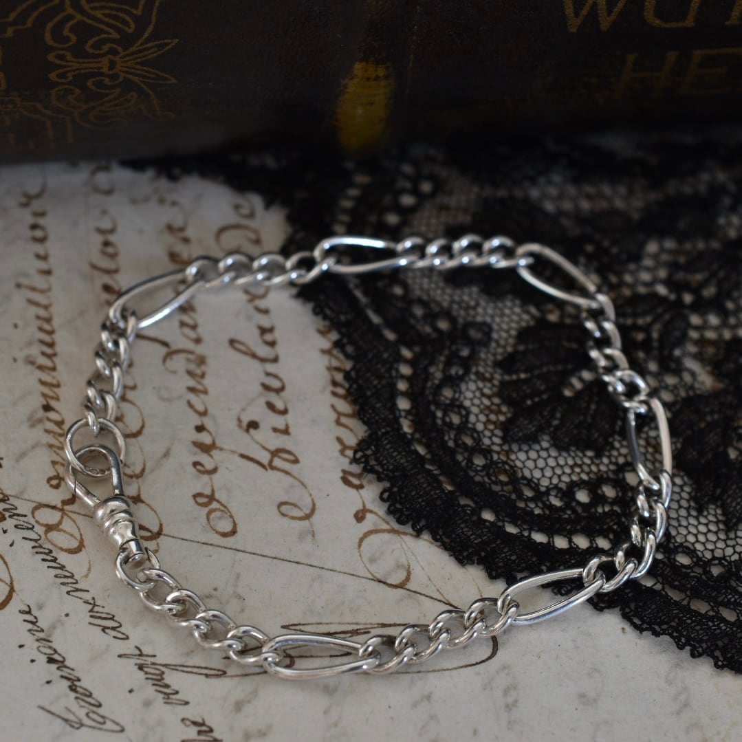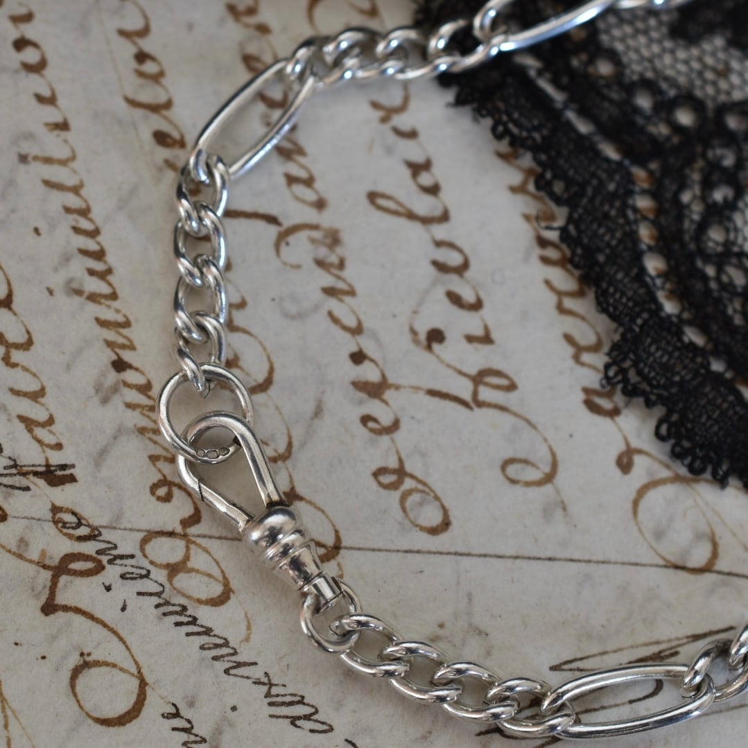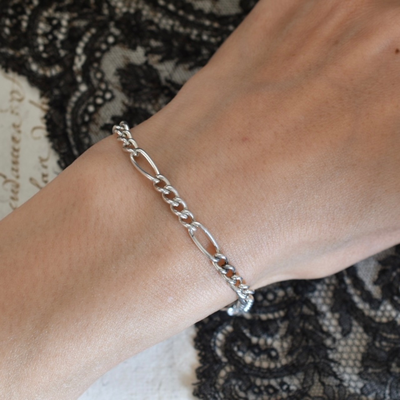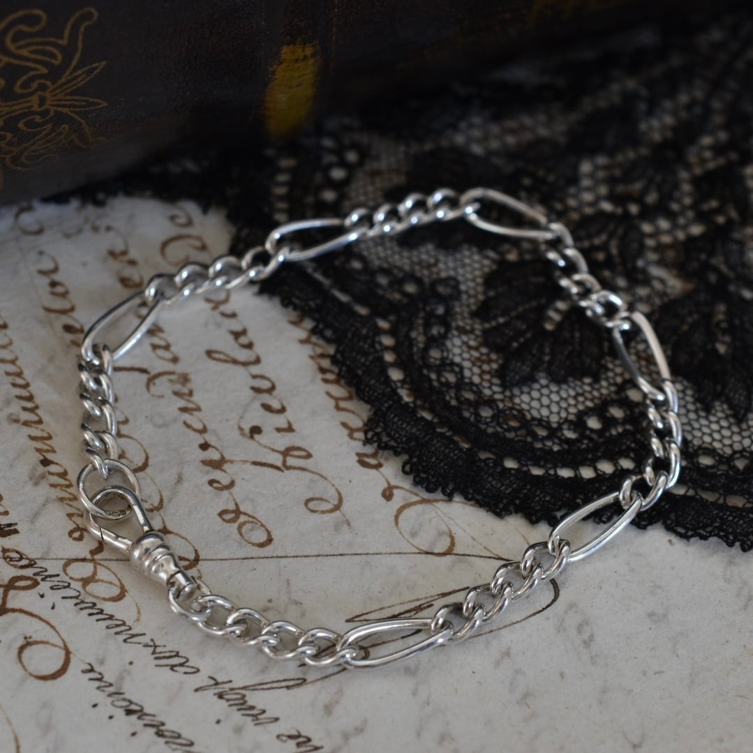 もとは懐中時計用のアルバートチェーンとして作られたものですが、19cmという長さから、現代ではブレスレットとして身に着けやすい一点となっています。