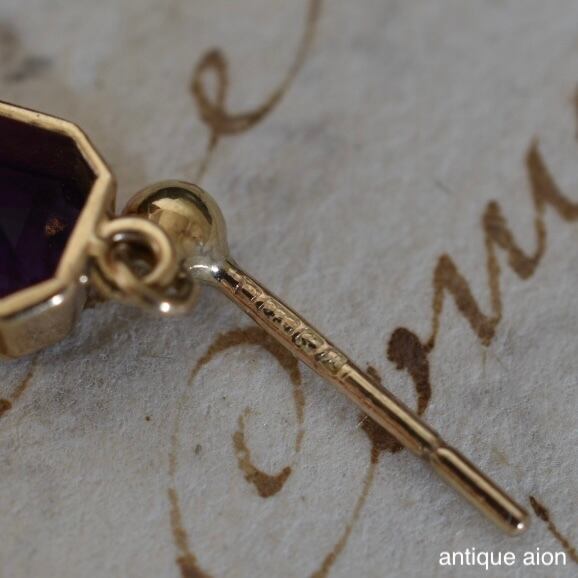 アメジストを囲む八角形のフレームには、微細なミルグレインが施されており、丁寧な手仕事が息づく仕立て。