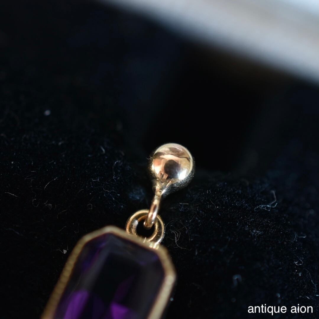 深い紫が静かに光を宿すアメジストを、繊細なミル打ちの金枠がやわらかく包み込む──