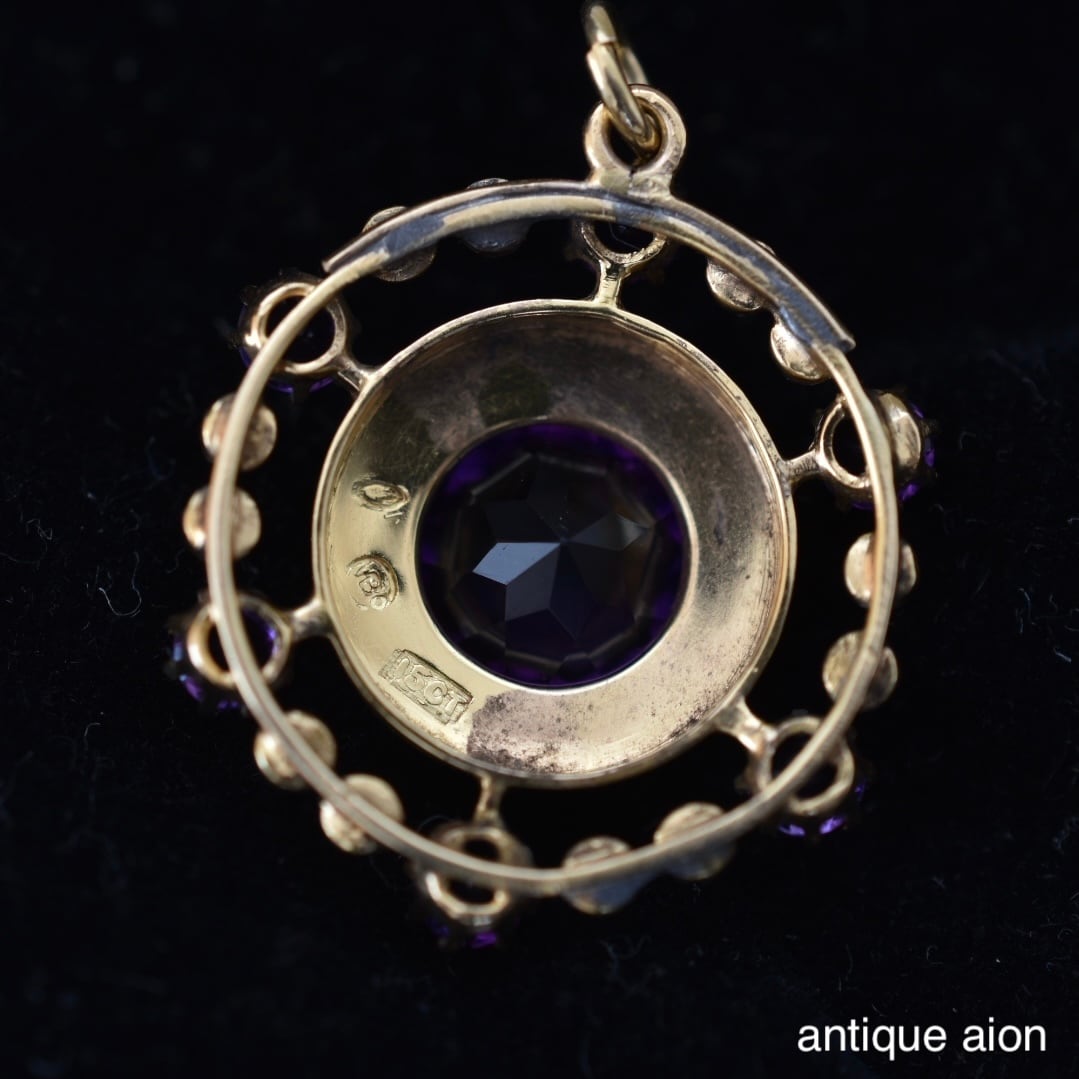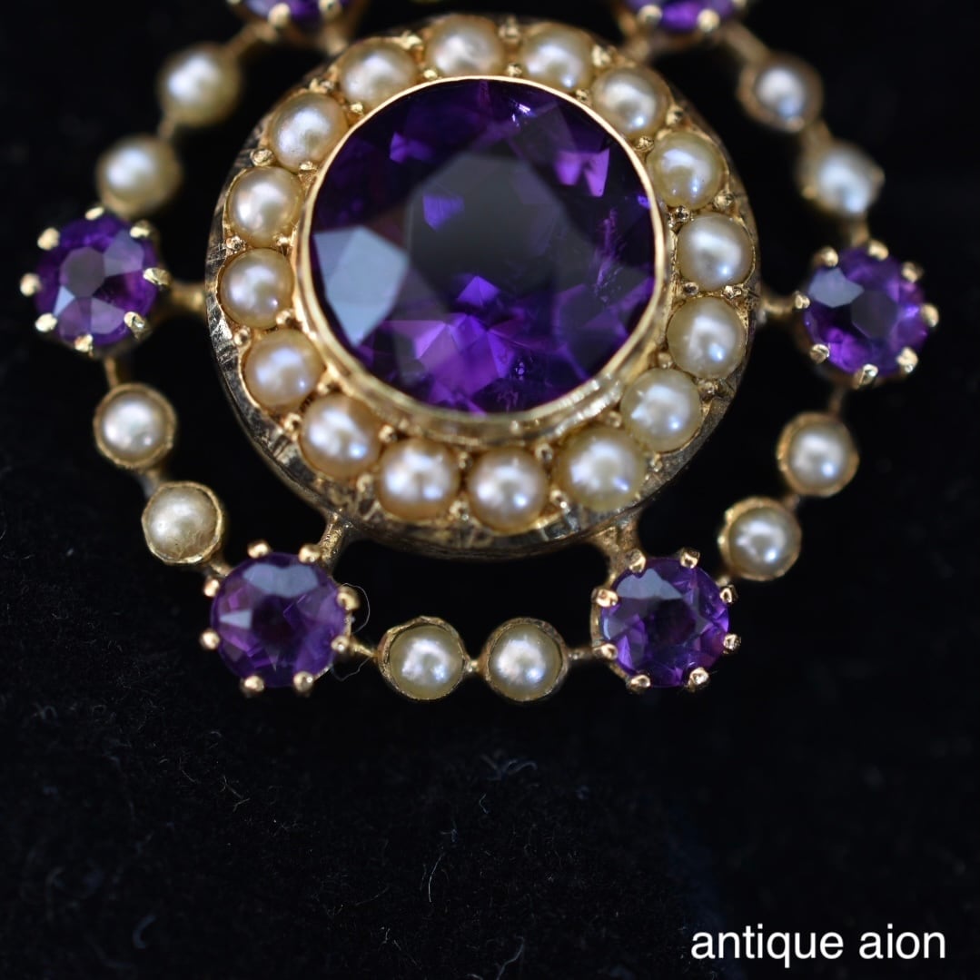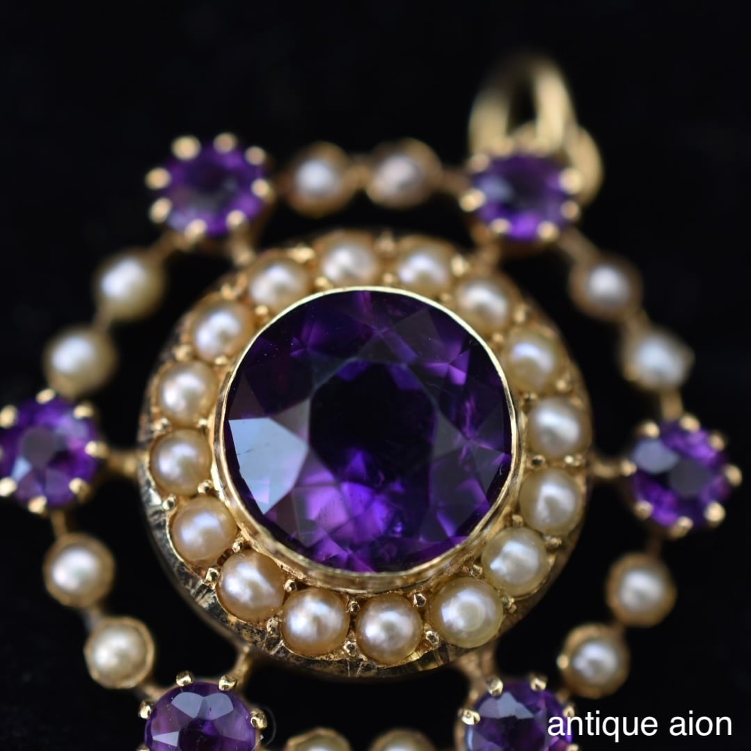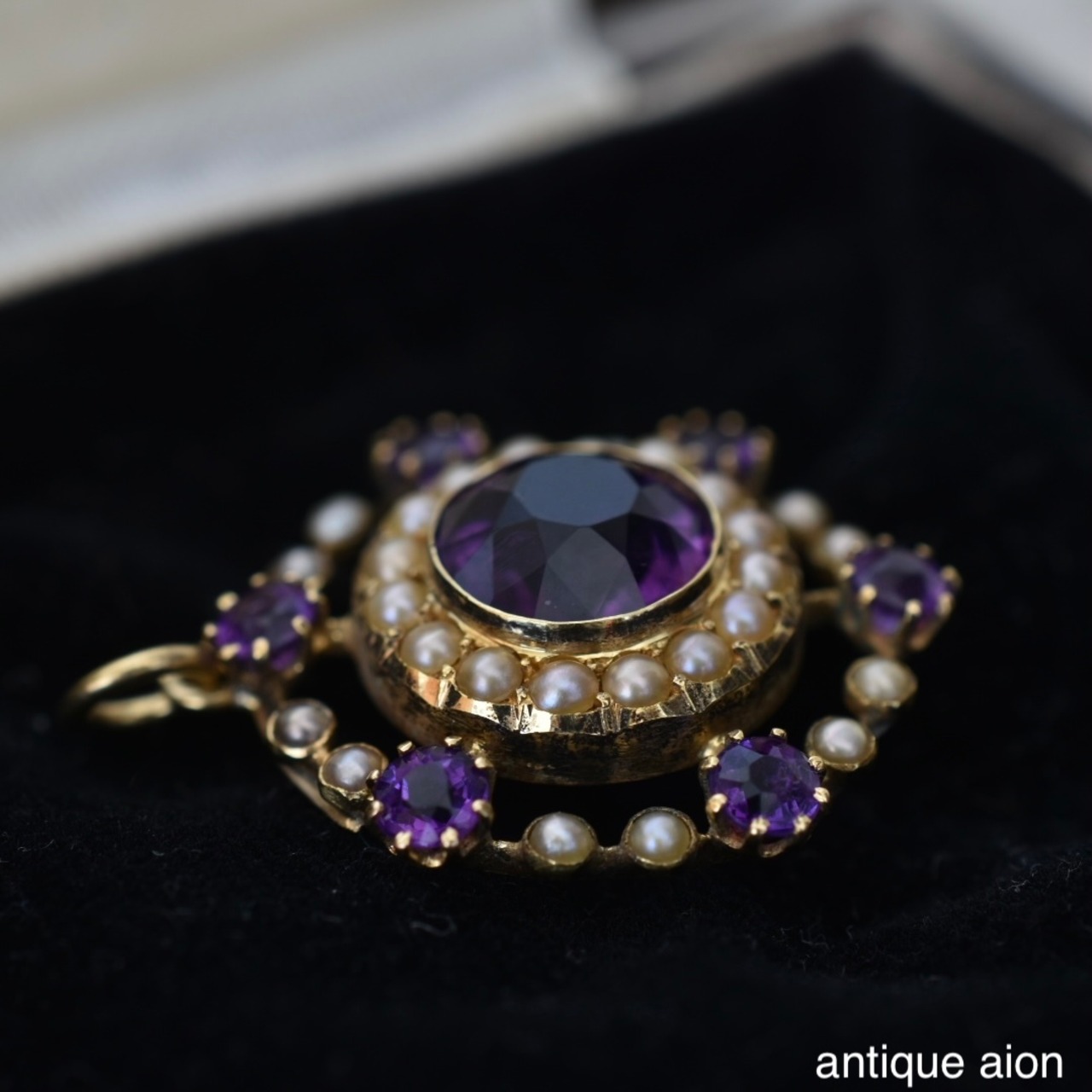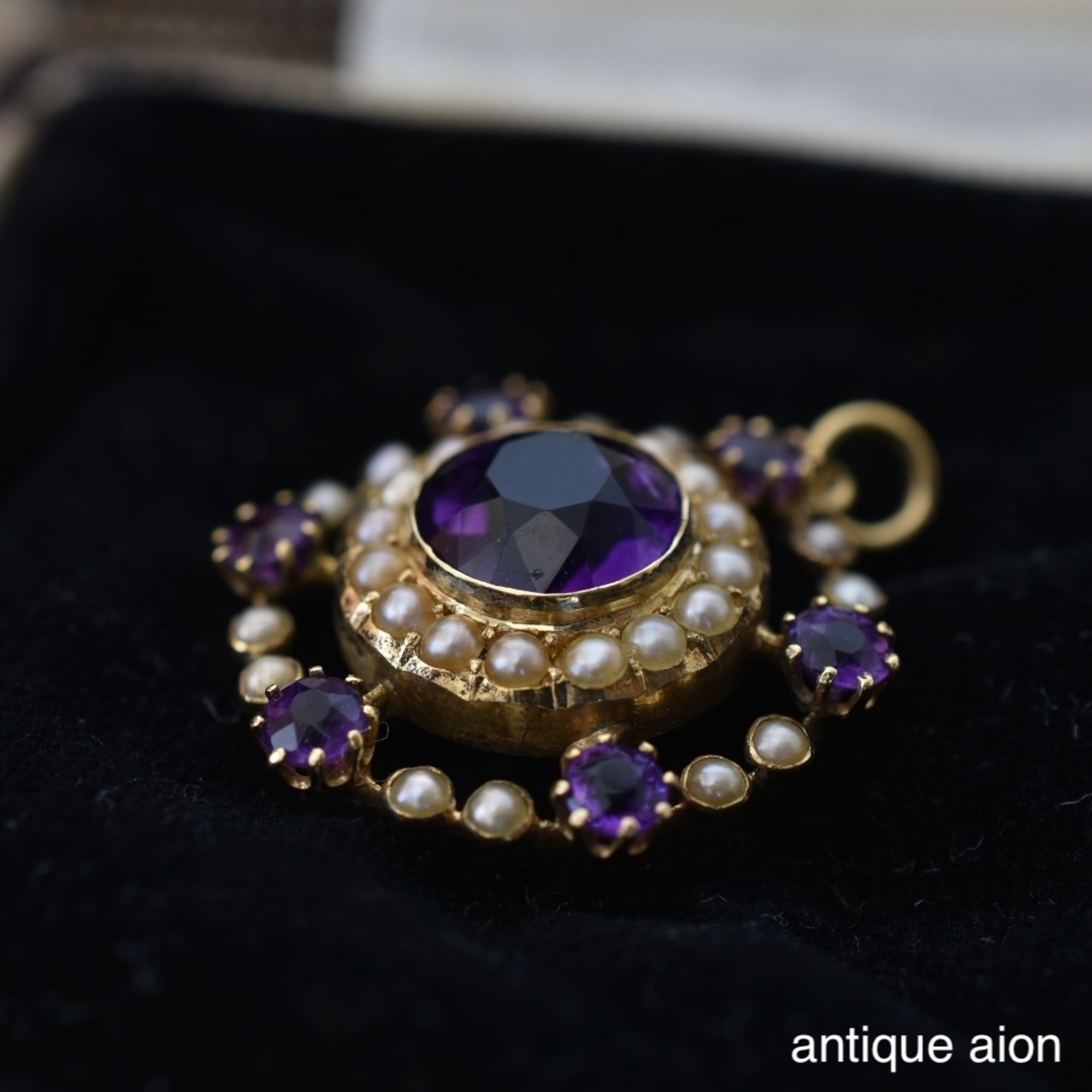 英国アンティーク 1890〜1910年頃 Murrle Bennett & Co 15ctゴールド 天然アメジスト&シードパール ペンダントトップ