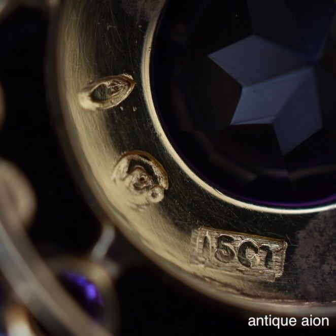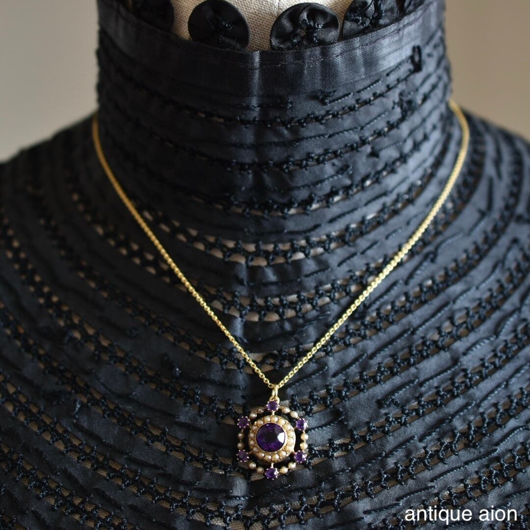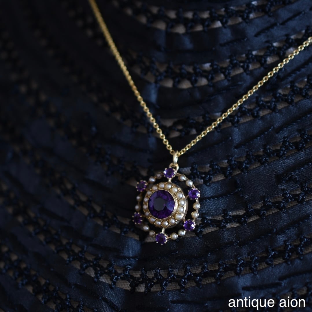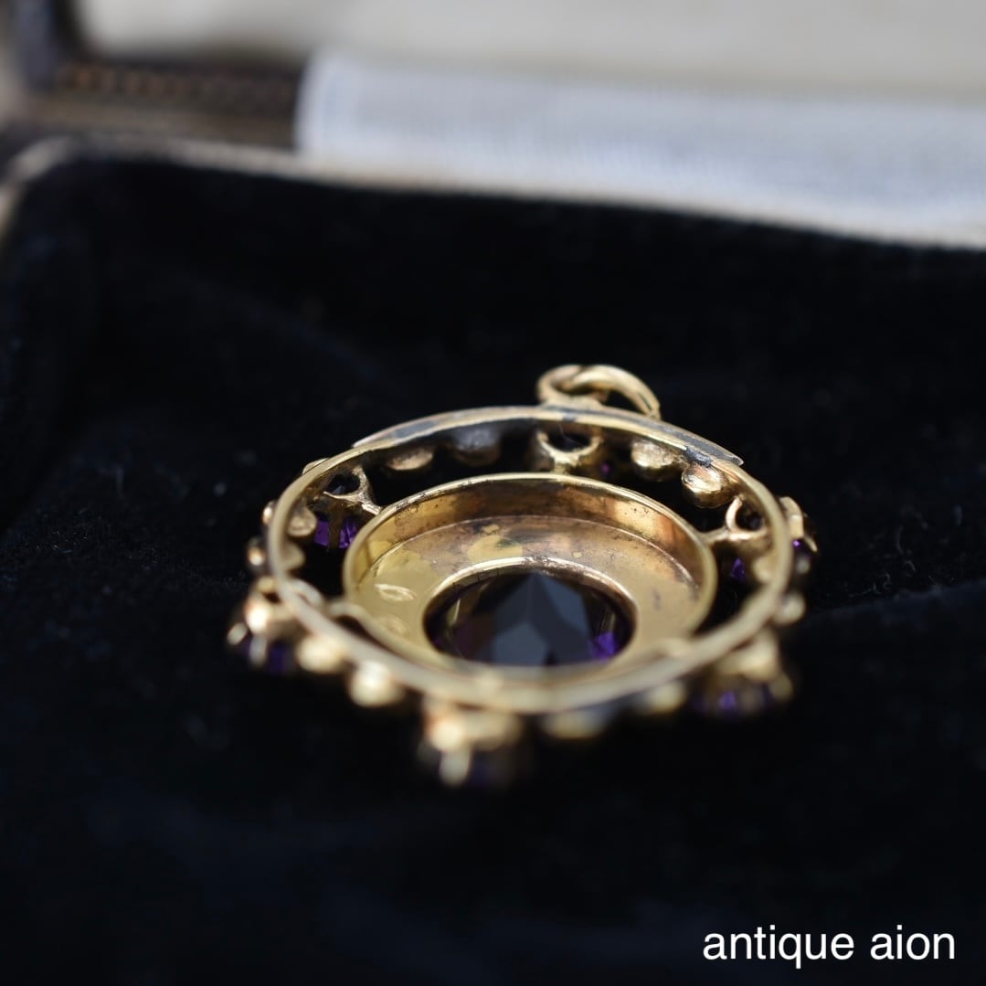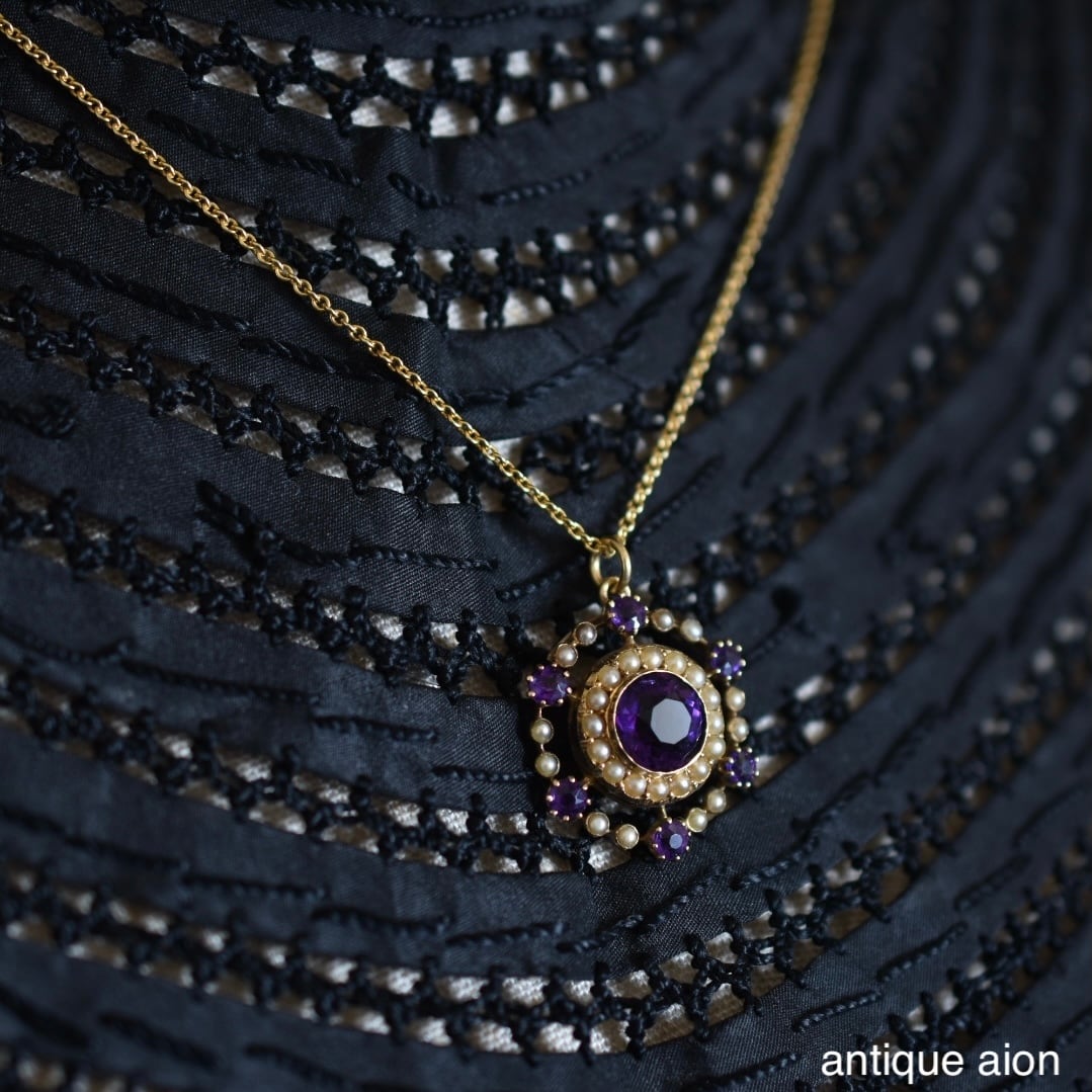 英国アンティーク 1890〜1910年頃 Murrle Bennett & Co 15ctゴールド 天然アメジスト&シードパール ペンダントトップ