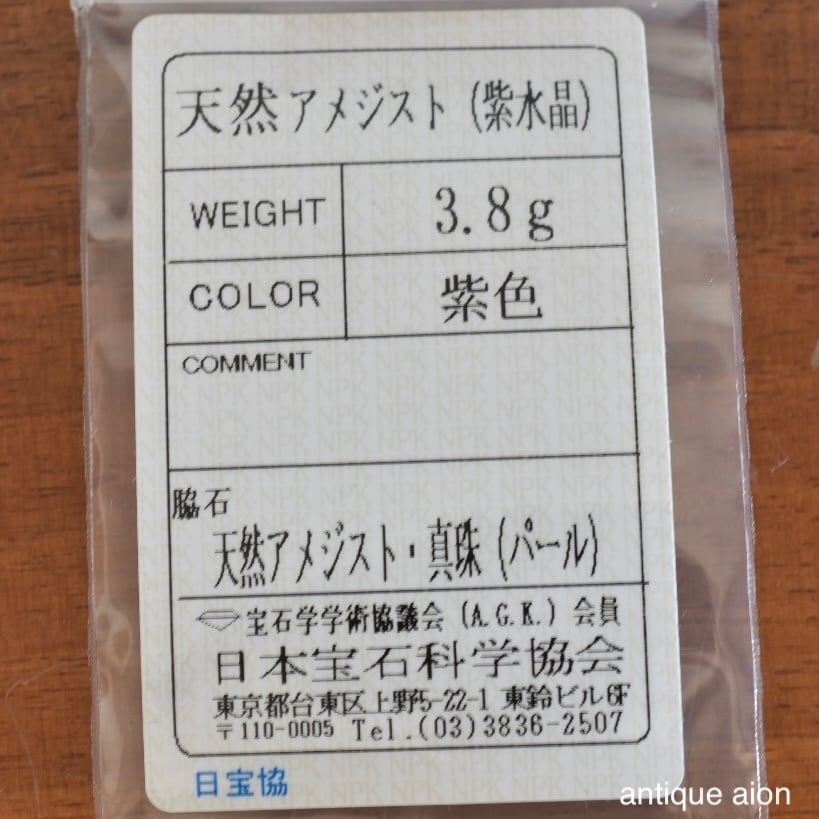 天然アメジストとシードパールは専門機関にてソーティング済みで、