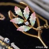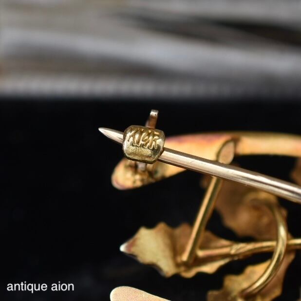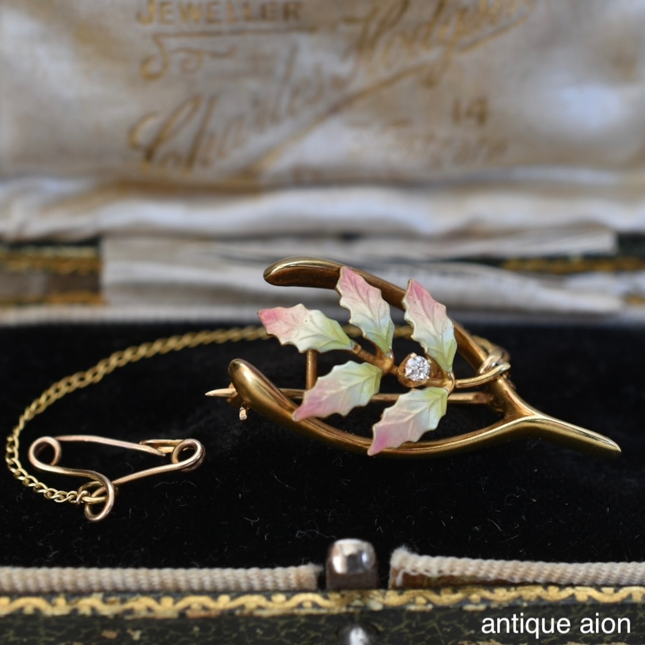 アメリカ アンティーク 1910〜1920年代 Kollmar Rauch & Co. 14ctゴールド エナメル&天然ダイヤモンド ウィッシュボーンブローチ