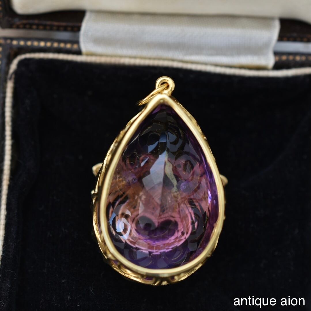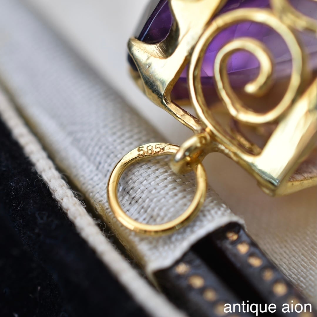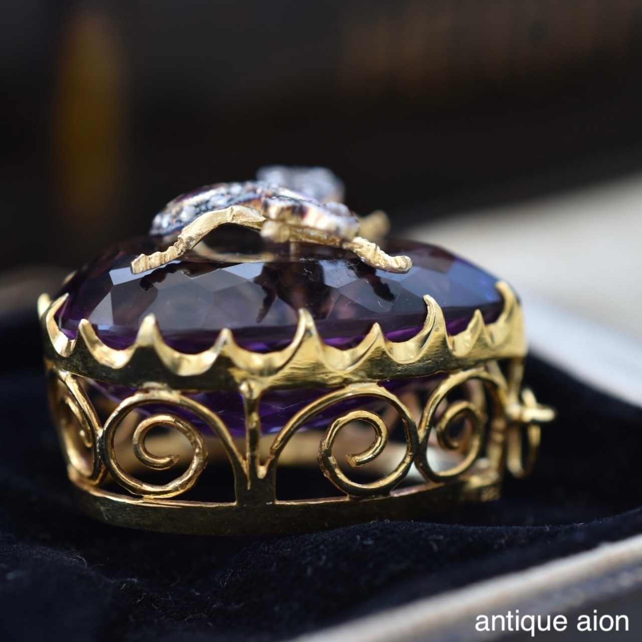 中央に据えられたアメジストは、約29 × 20 × 14mm・推定 約43ctという圧倒的な存在感を誇る大粒石。