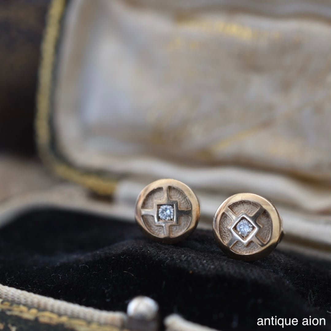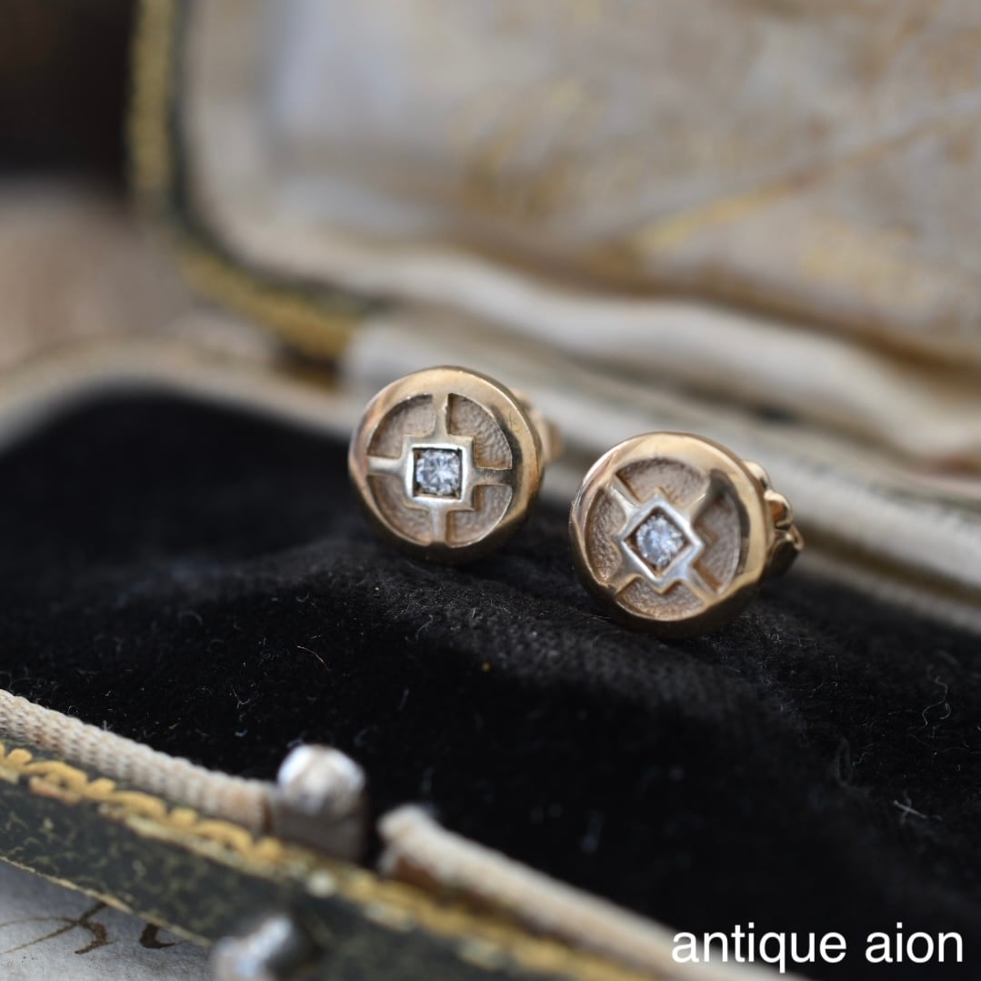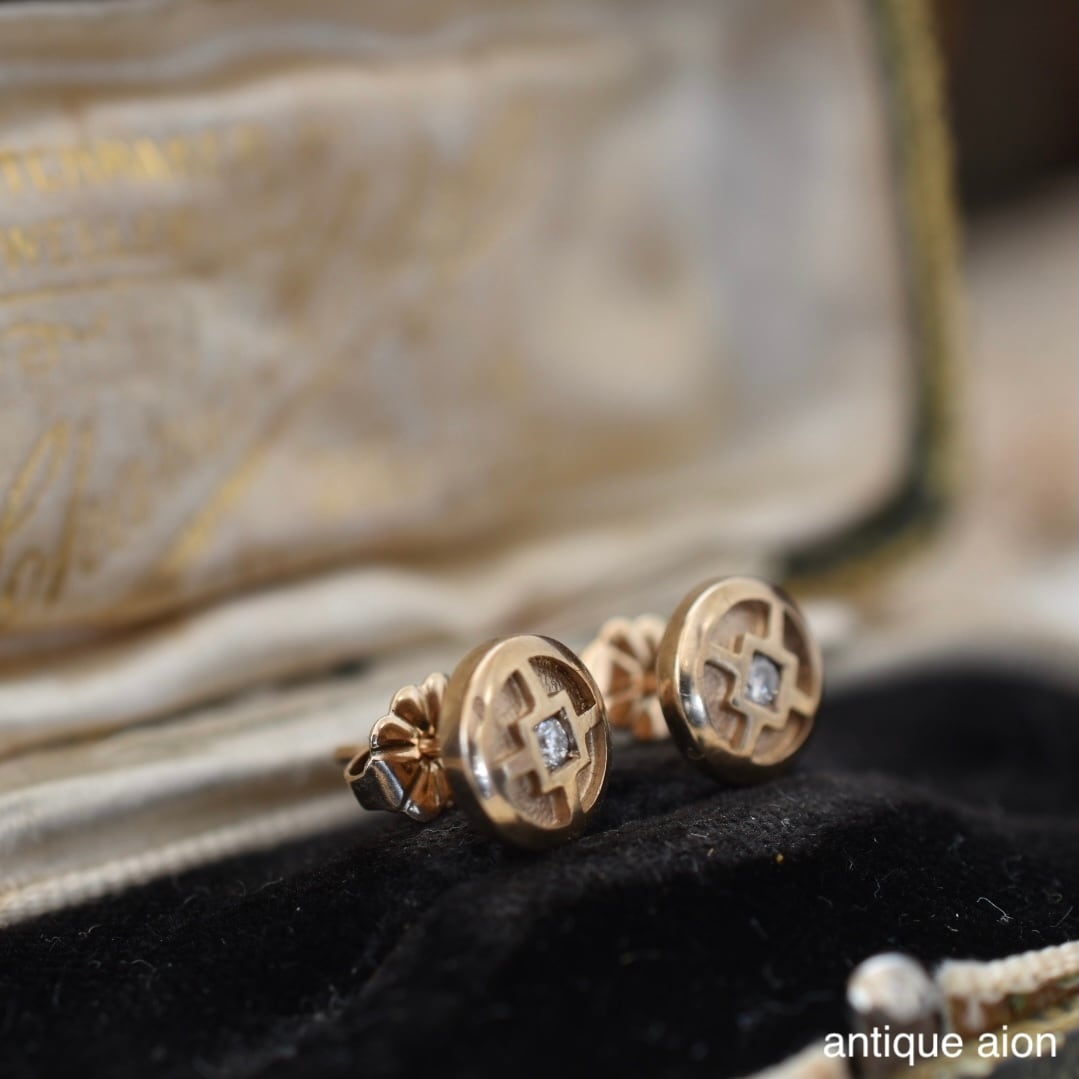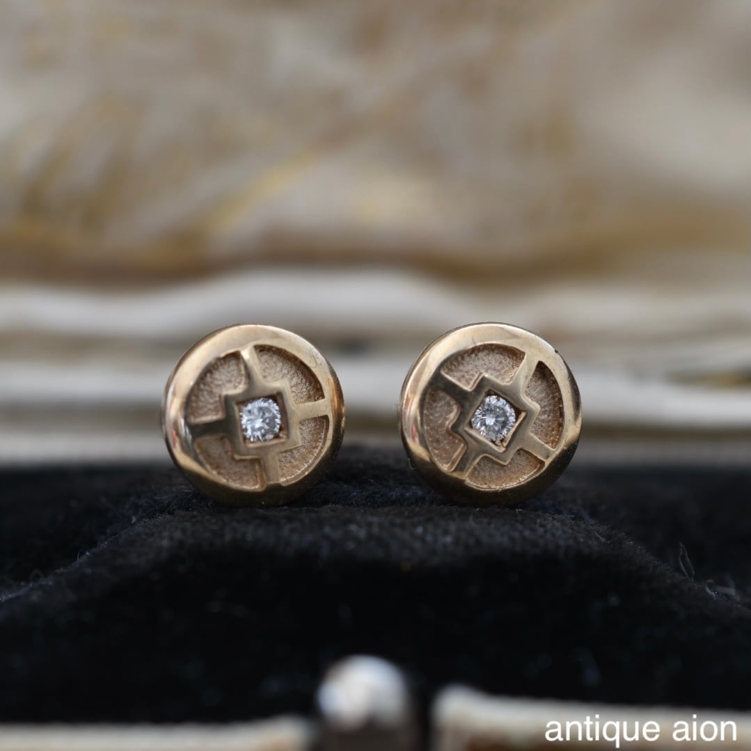 10ctゴールド 幾何学模様と小さな天然ダイヤモンドが静かにきらめくスタッドピアス