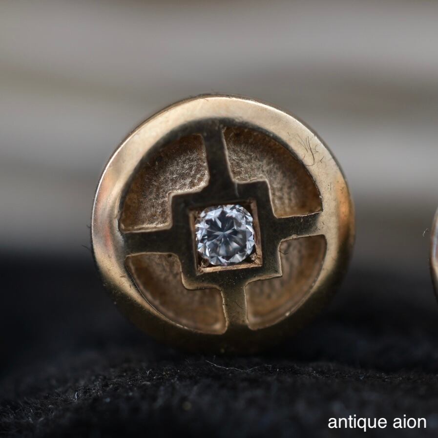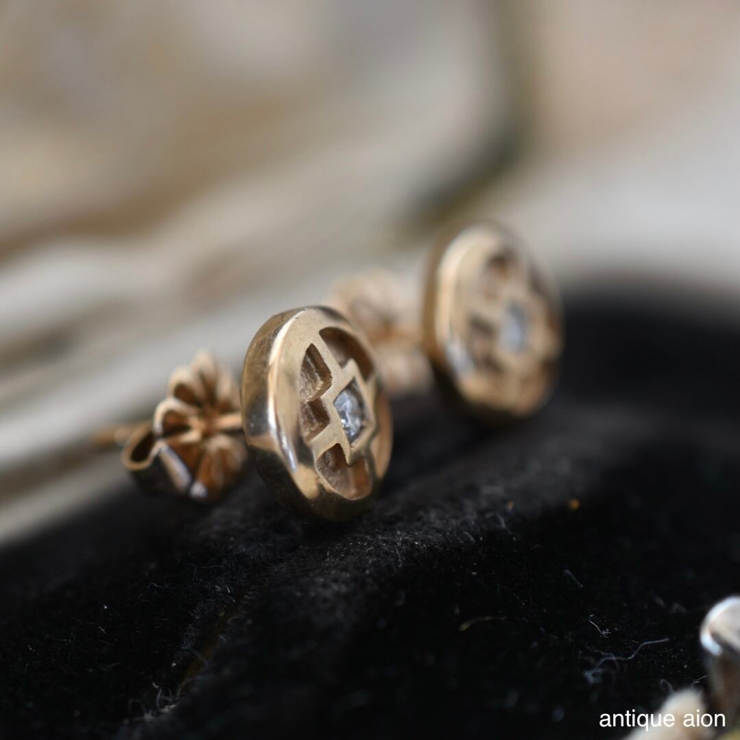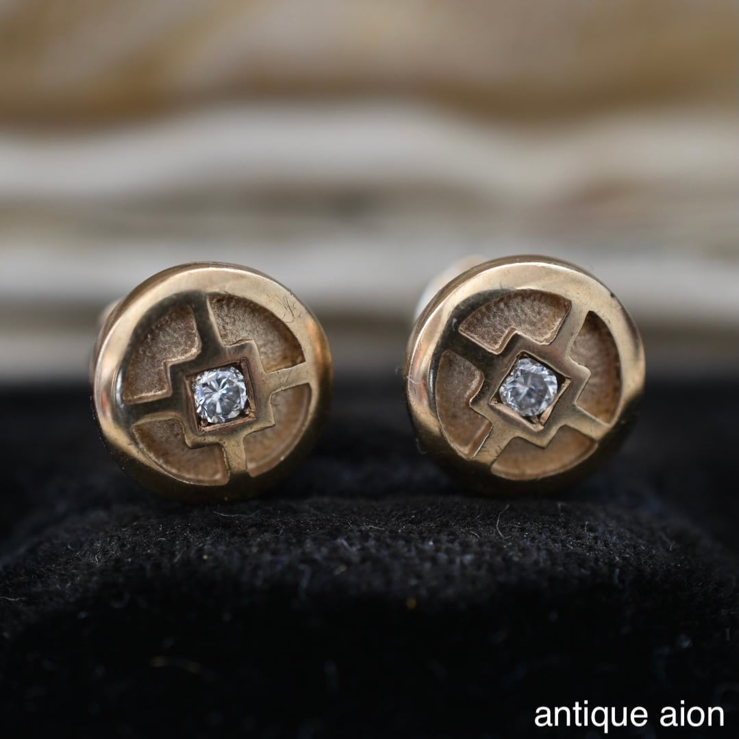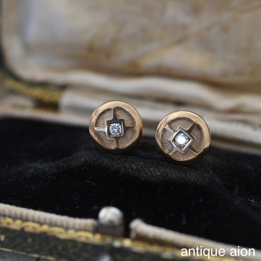 10ctゴールド 幾何学模様と小さな天然ダイヤモンドが静かにきらめくスタッドピアス