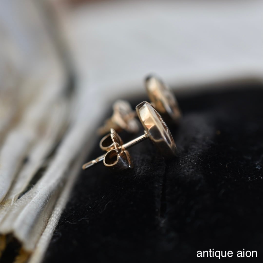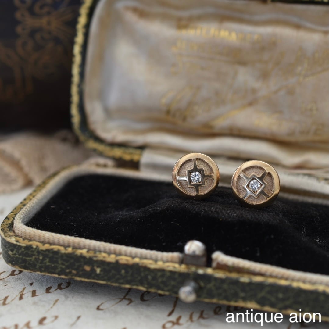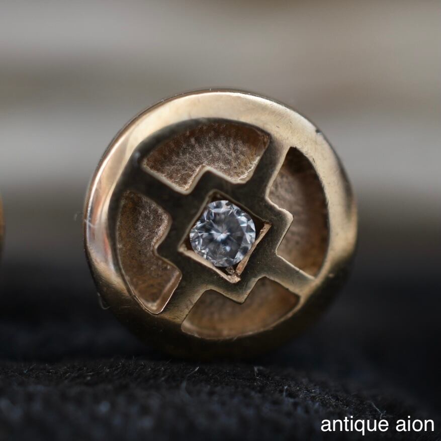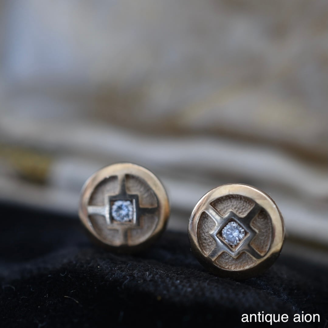 10ctゴールド 幾何学模様と小さな天然ダイヤモンドが静かにきらめくスタッドピアス