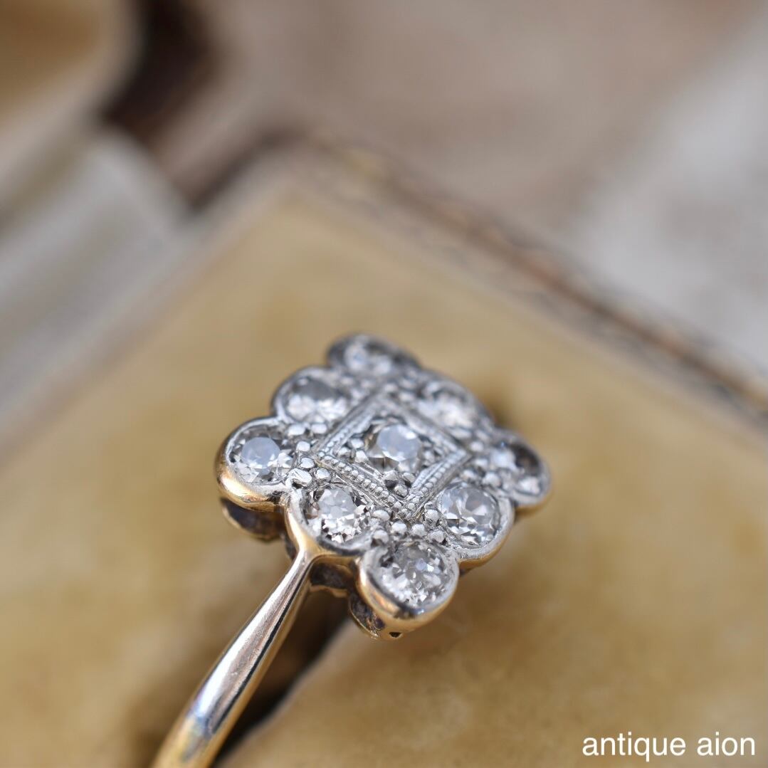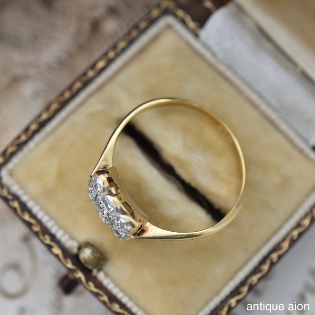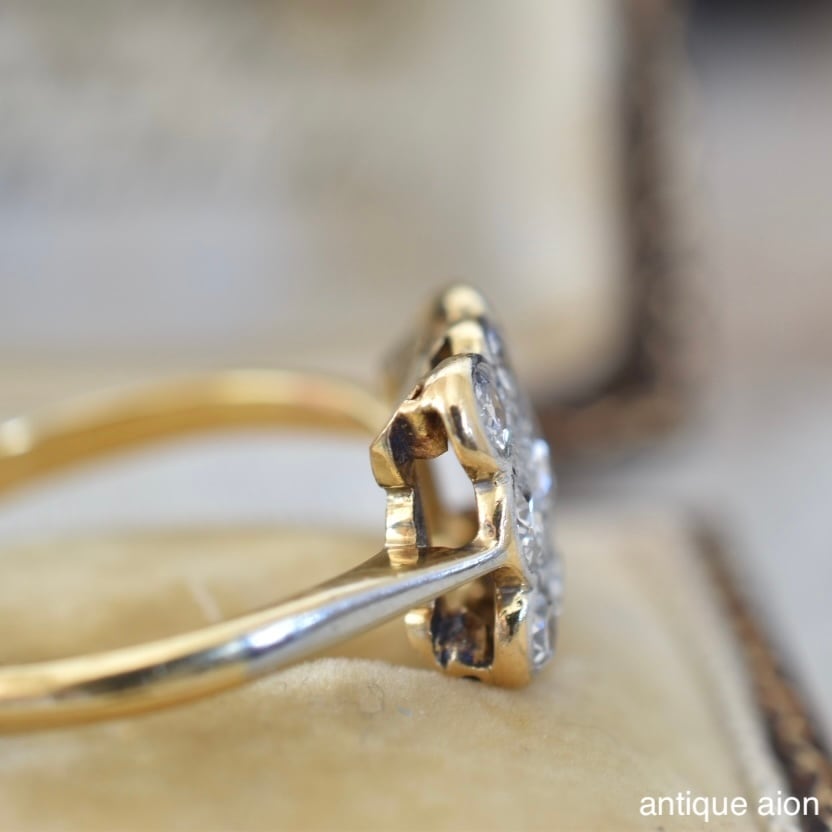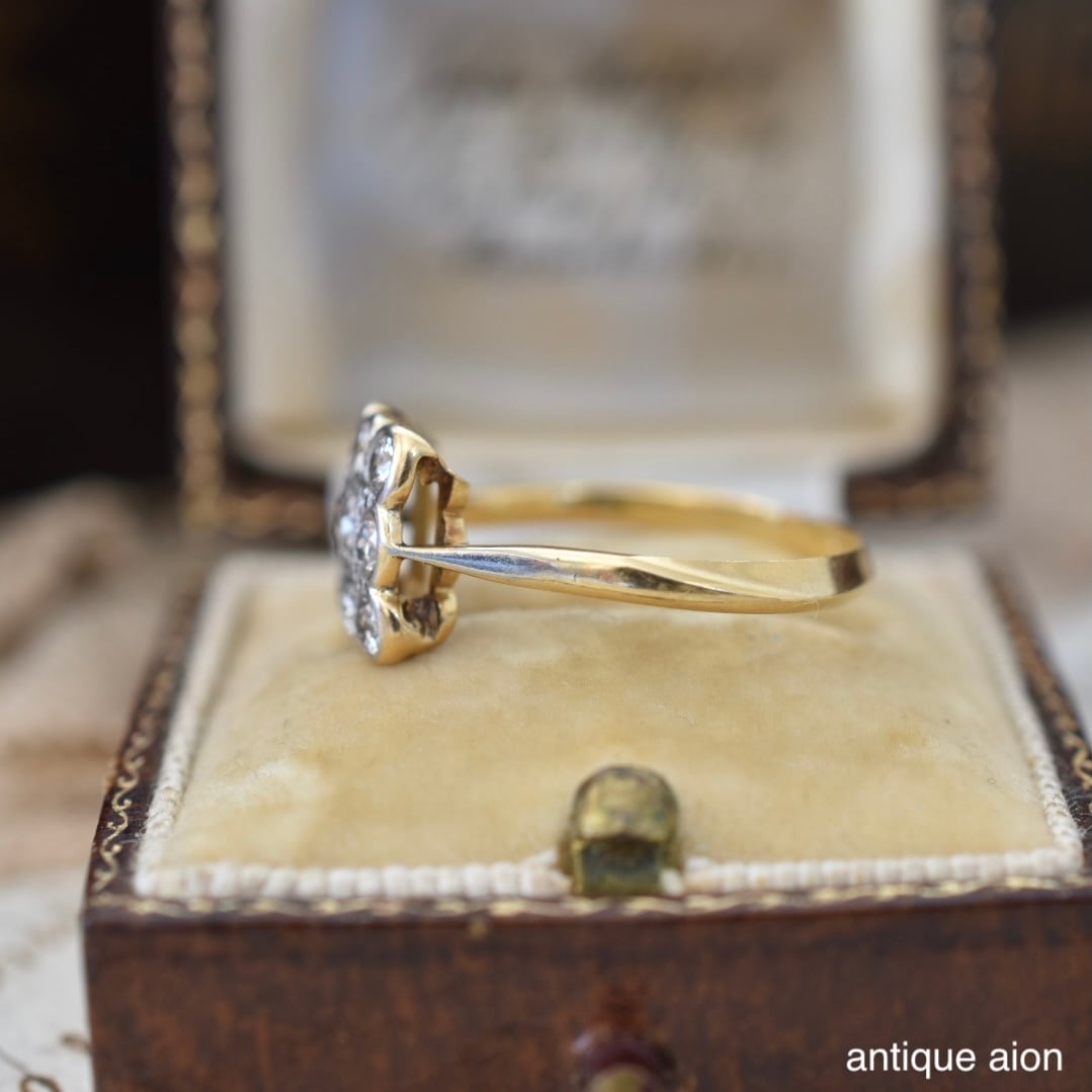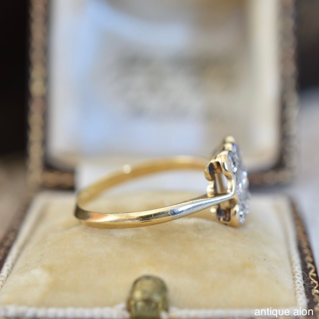 英国アンティーク 20世紀初頭頃 18ctゴールドxプラチナ 天然ダイヤモンド クラスターリング