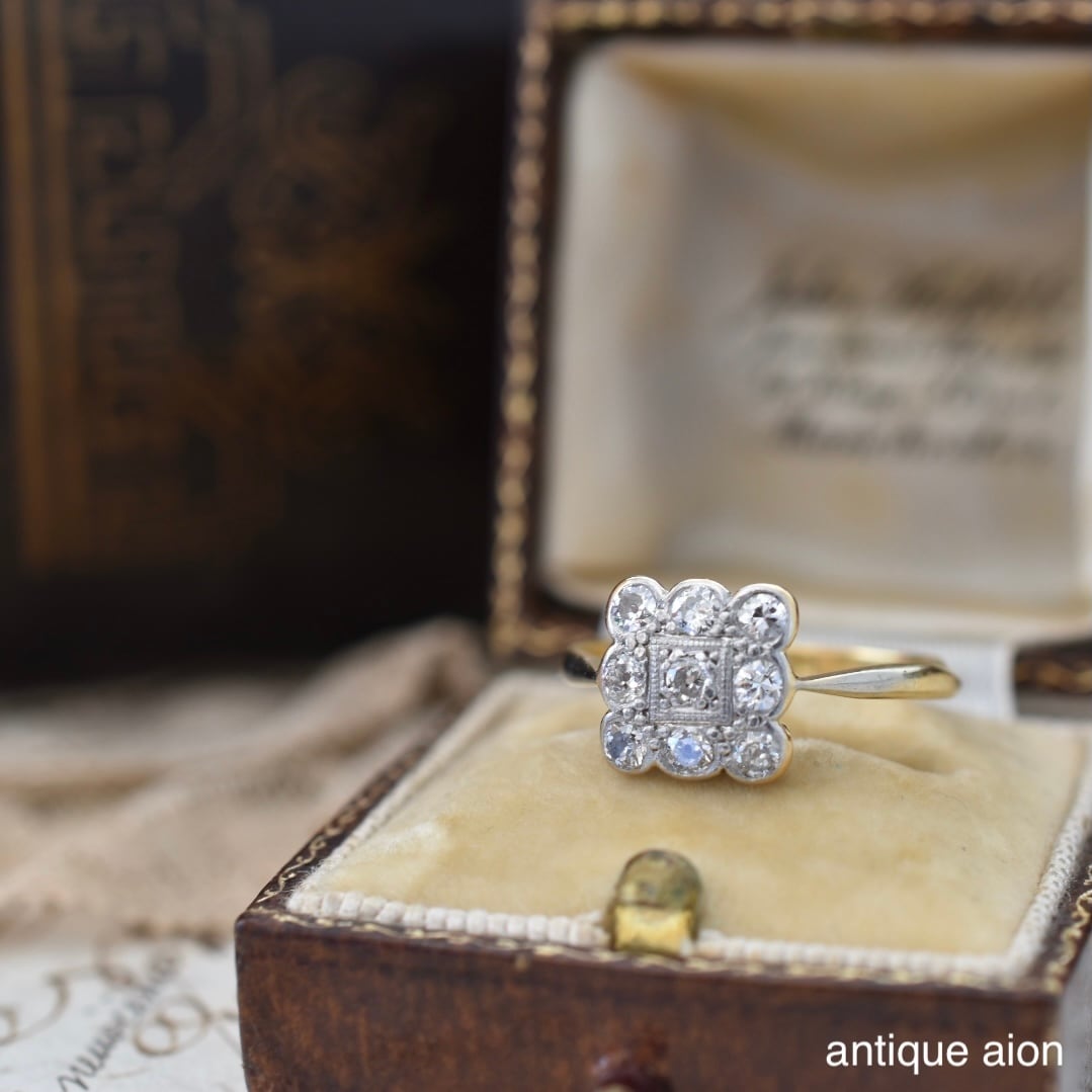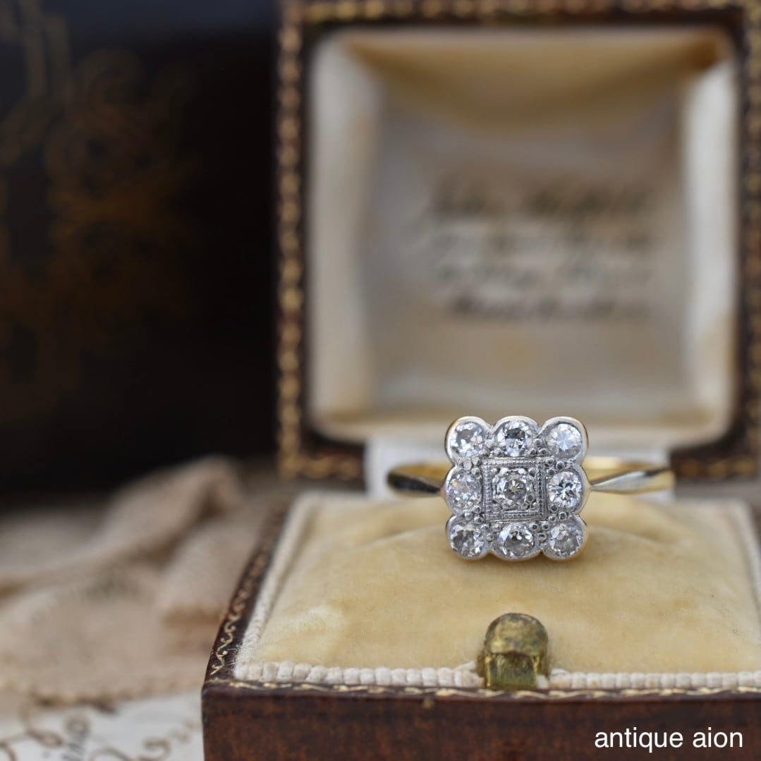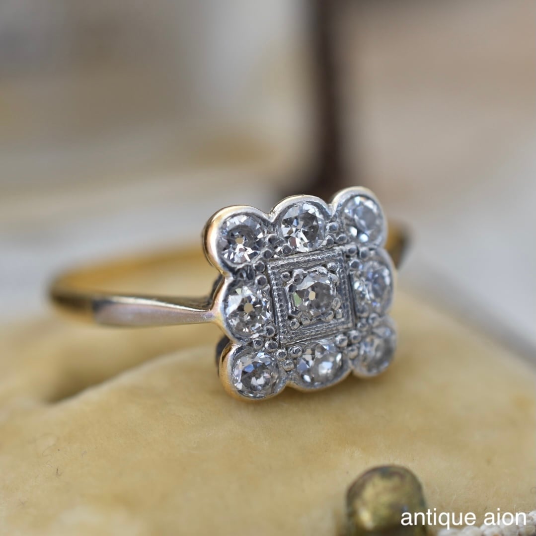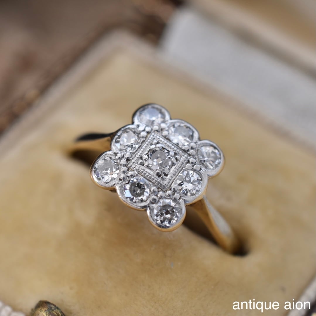 英国アンティーク 20世紀初頭頃 18ctゴールドxプラチナ 天然ダイヤモンド クラスターリング