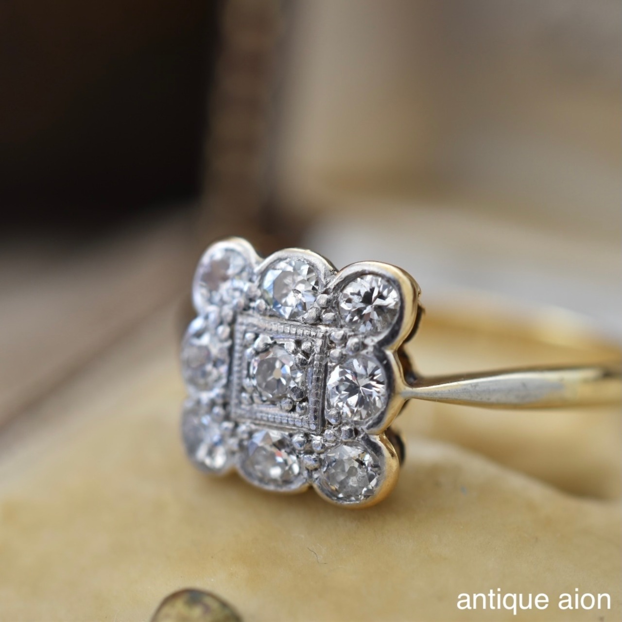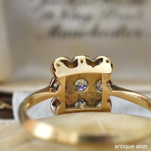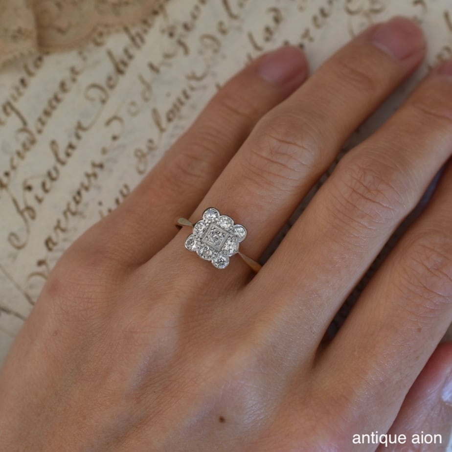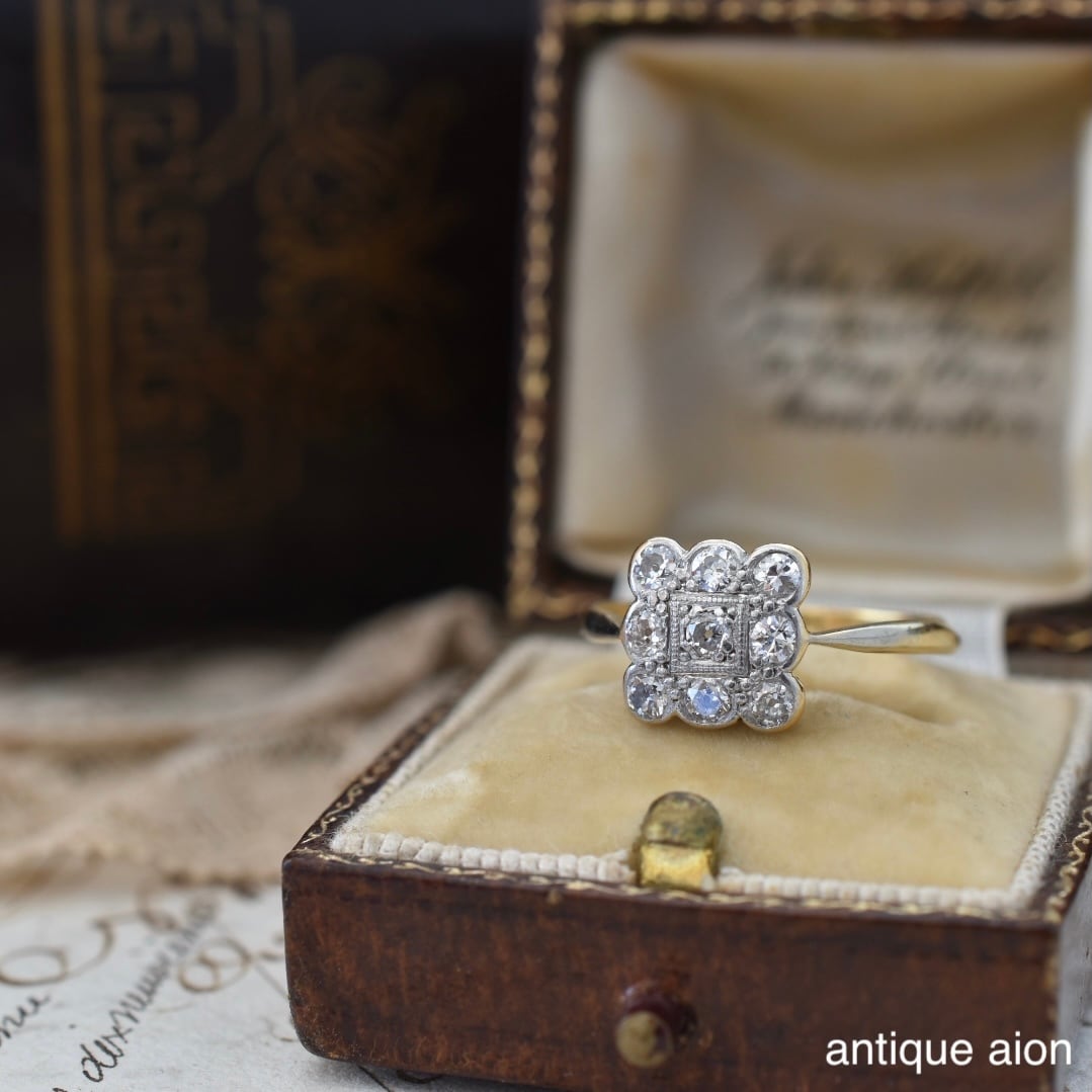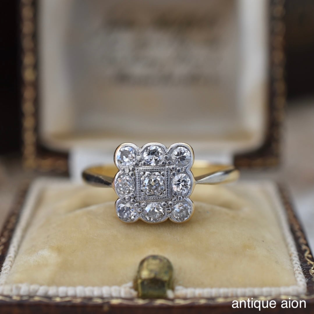 英国アンティーク 20世紀初頭頃 18ctゴールドxプラチナ 天然ダイヤモンド クラスターリング