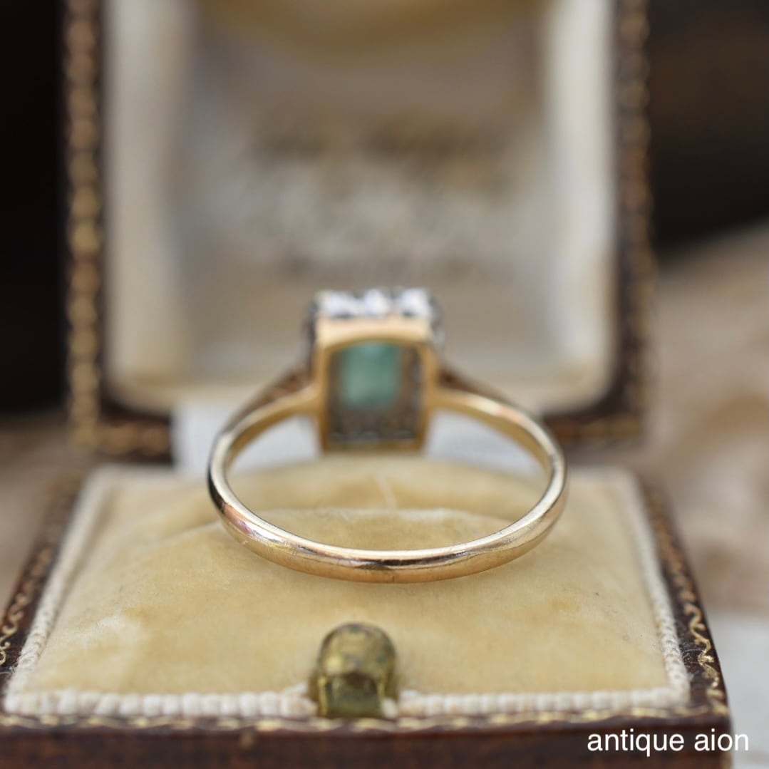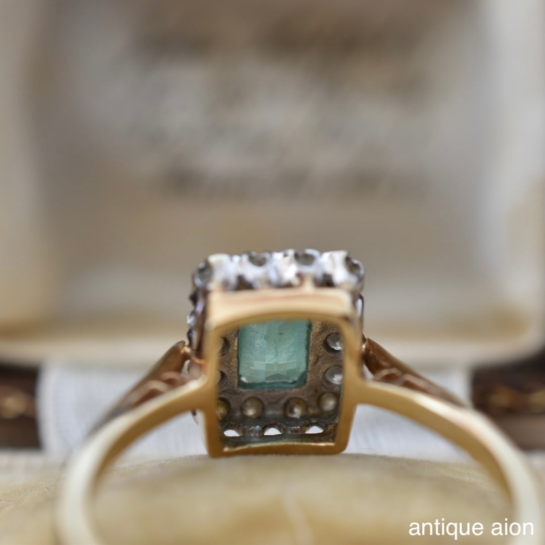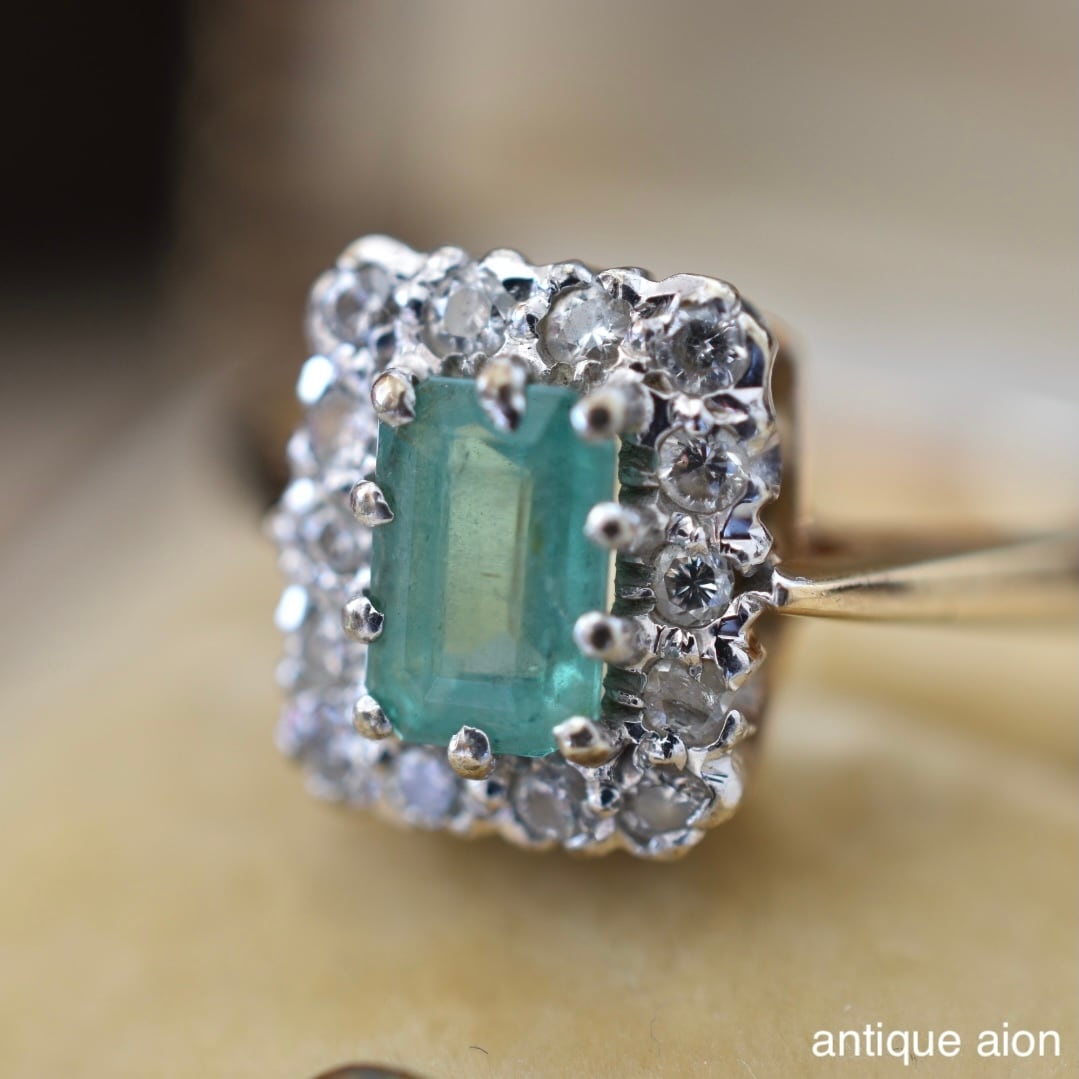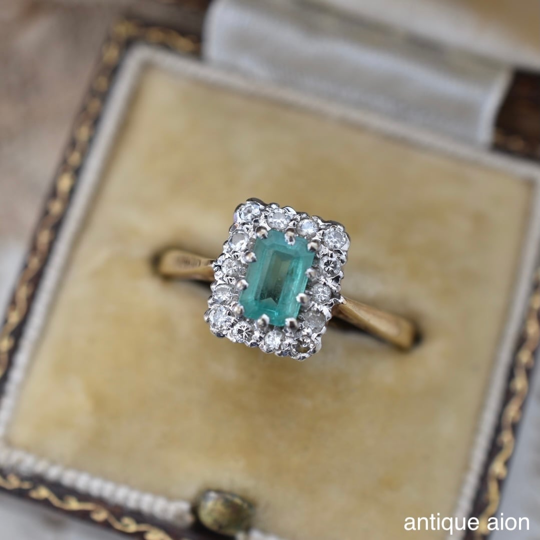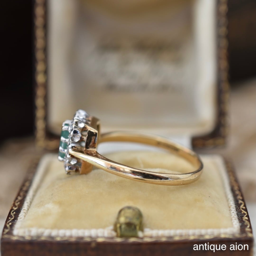 天然エメラルドと天然ダイヤモンドが清楚にきらめくヴィンテージのクラスターリングです。