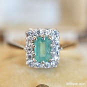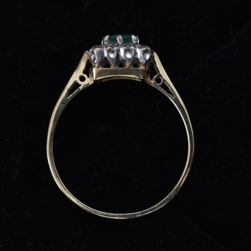 英国ヴィンテージ 1987年 天然エメラルド&天然ダイヤモンド 9ctゴールド × ホワイトゴールド クラスターリング