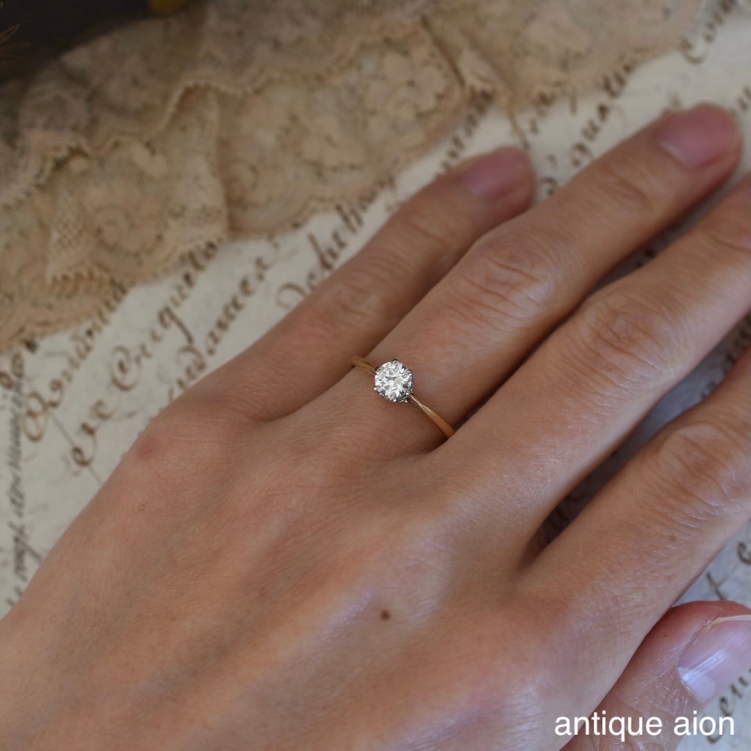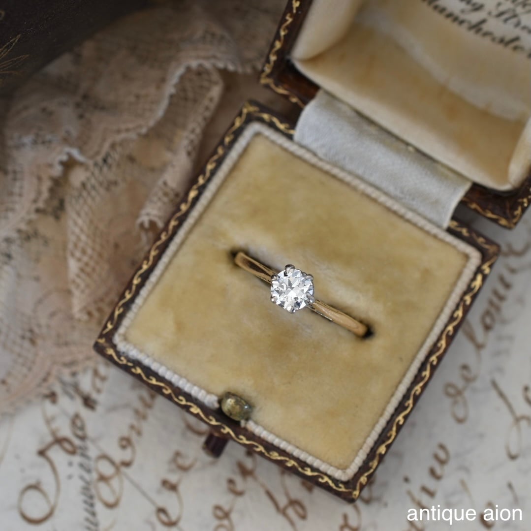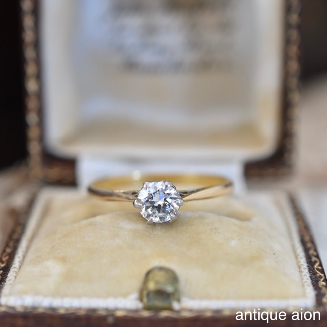 一粒ダイヤモンドのアンティークソリテールリングです。