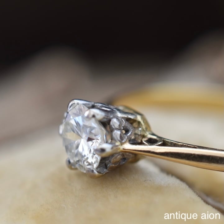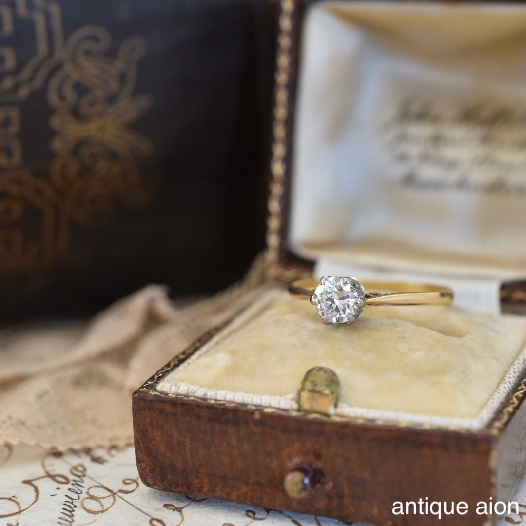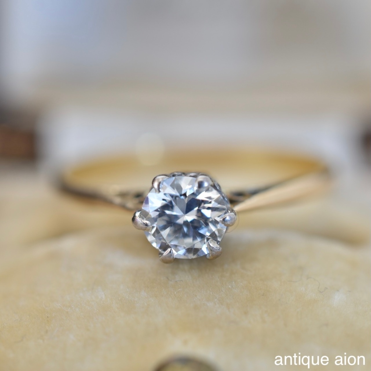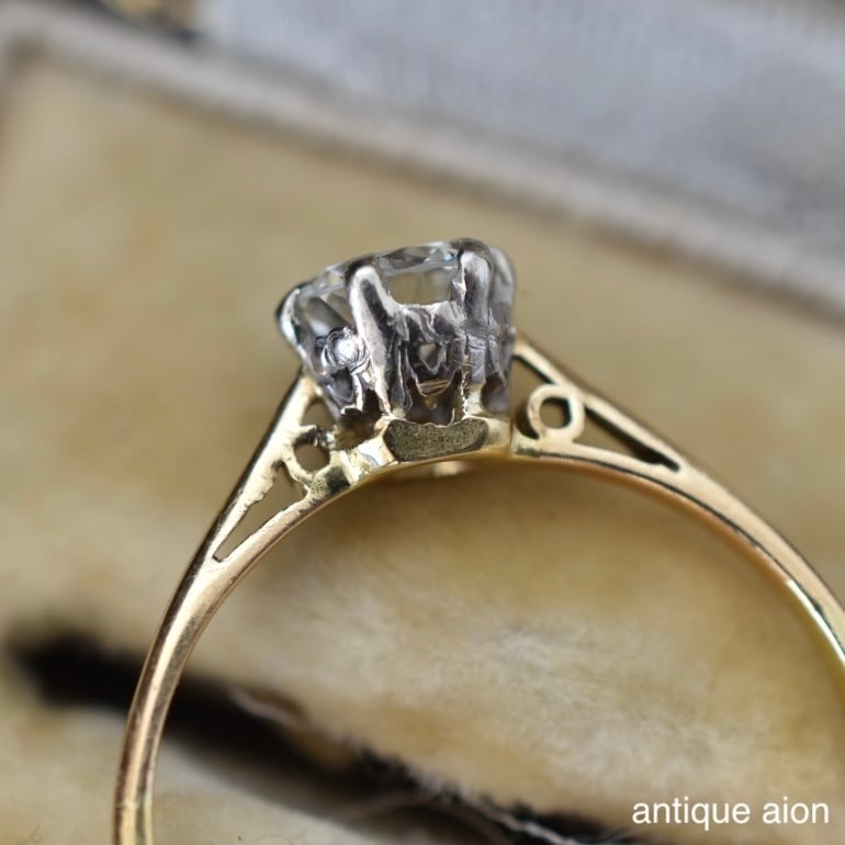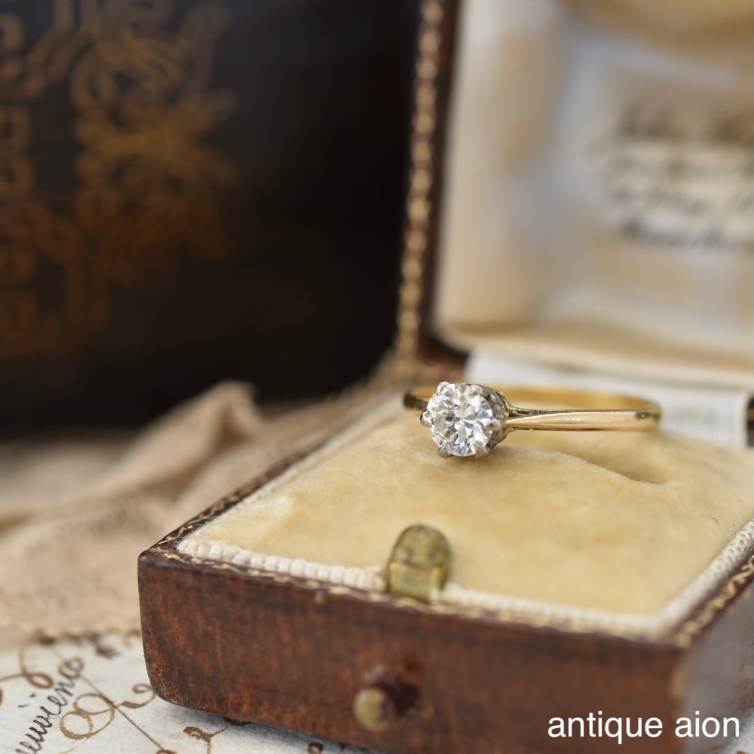 一粒ダイヤモンドのアンティークソリテールリングです。