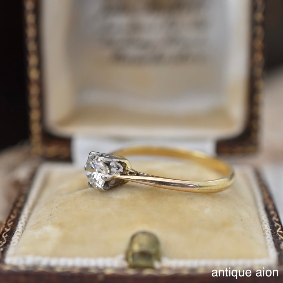 英国アンティーク 1920年代頃 18ctゴールド 天然ダイヤモンド ソリテールリング