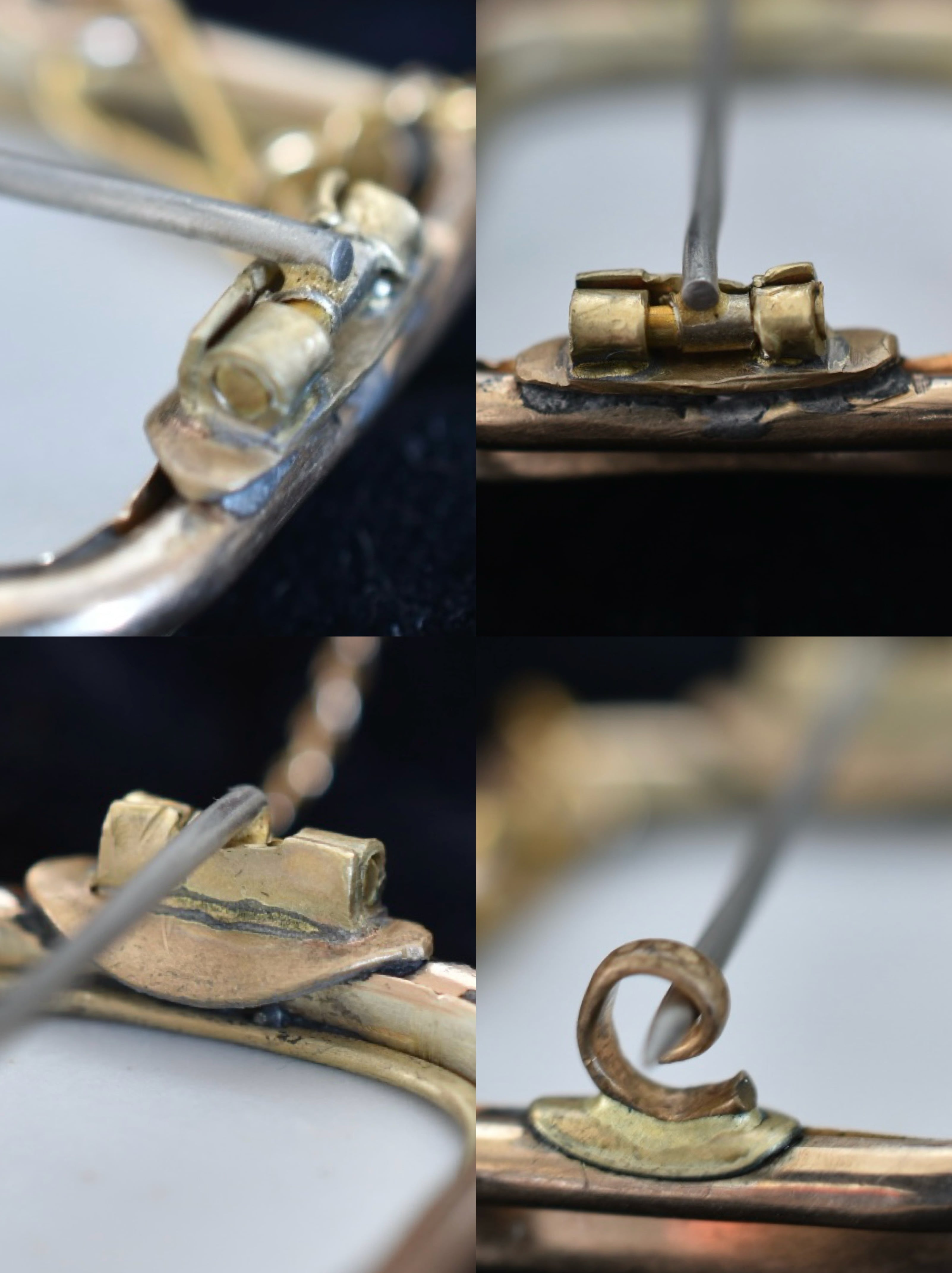 ブローチ本体は金約37%を主成分とする9ctゴールドであることを確認しており、