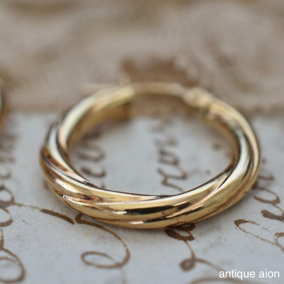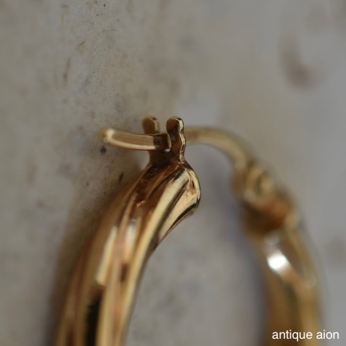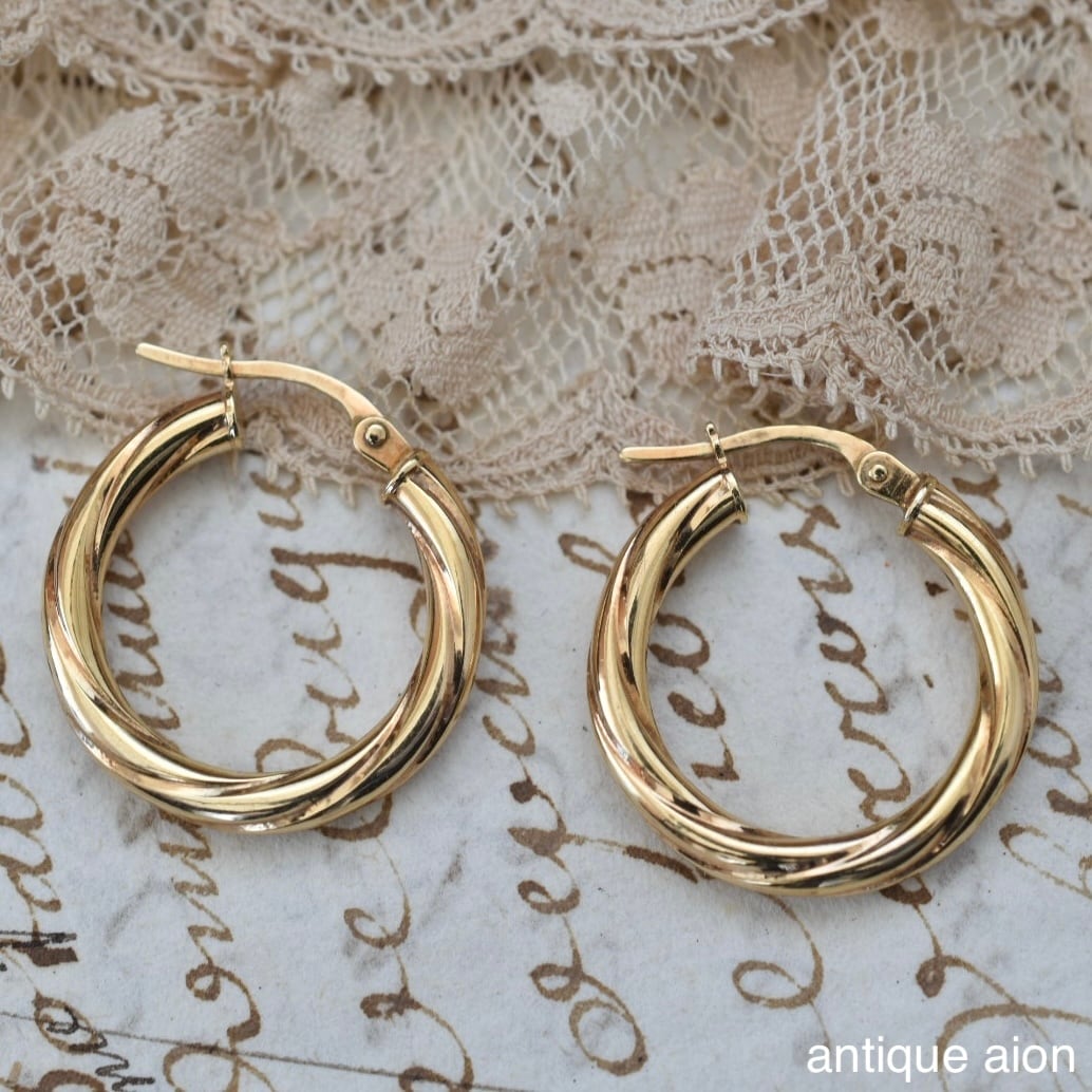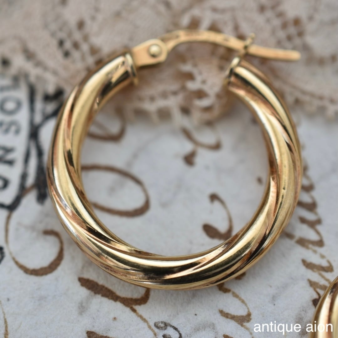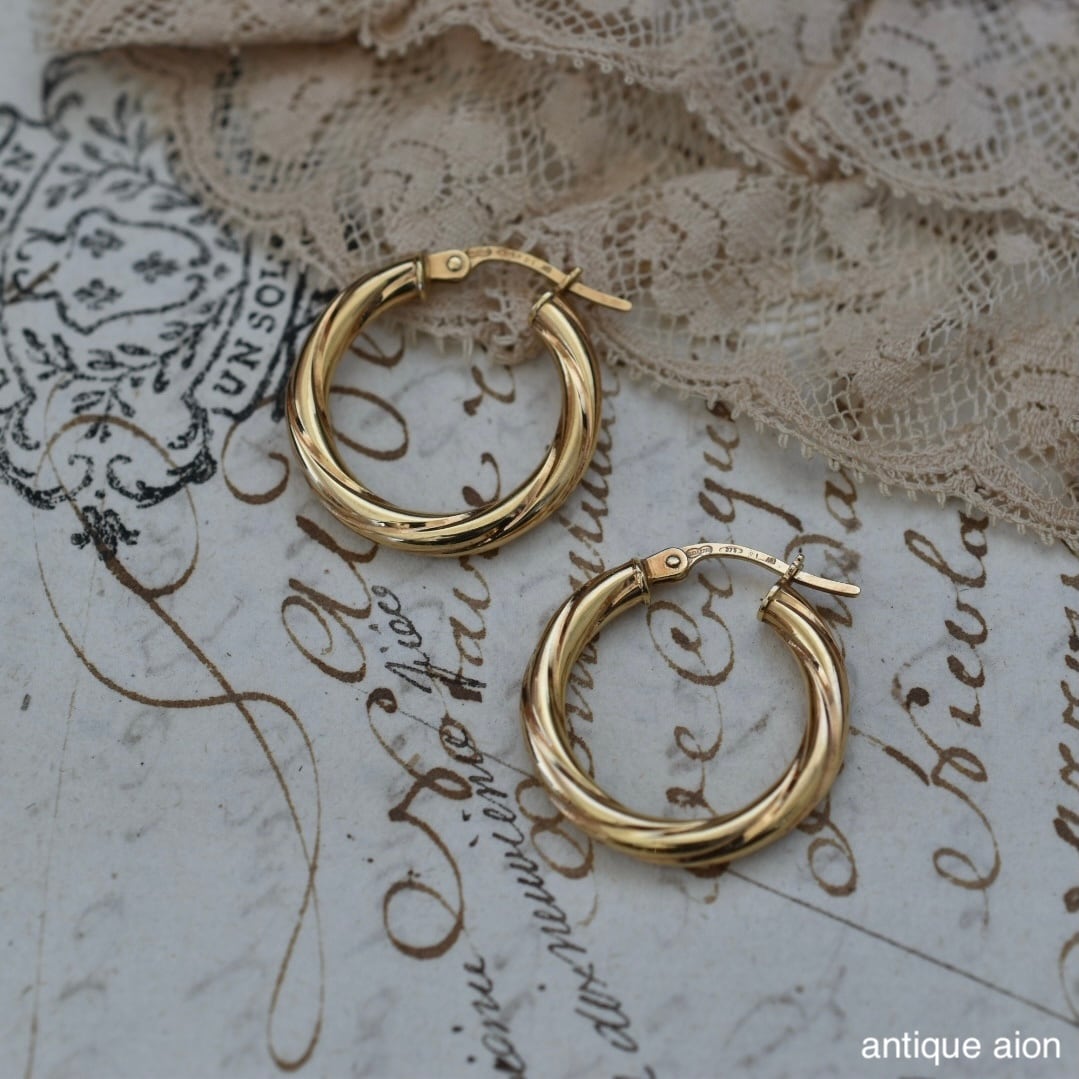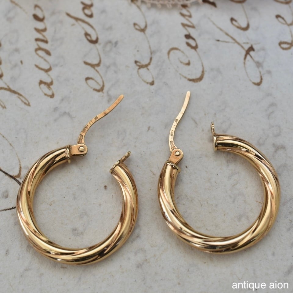 イタリア製 ヴィンテージ 1980年代頃 UNOAERRE(ウノアエレ) 9ctゴールド ツイストフープピアス