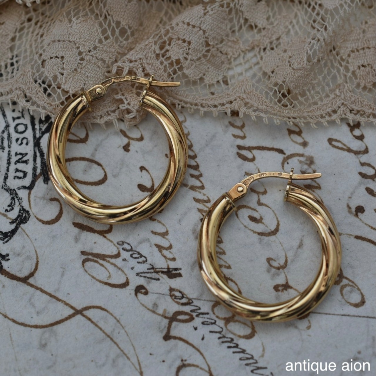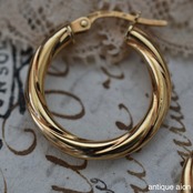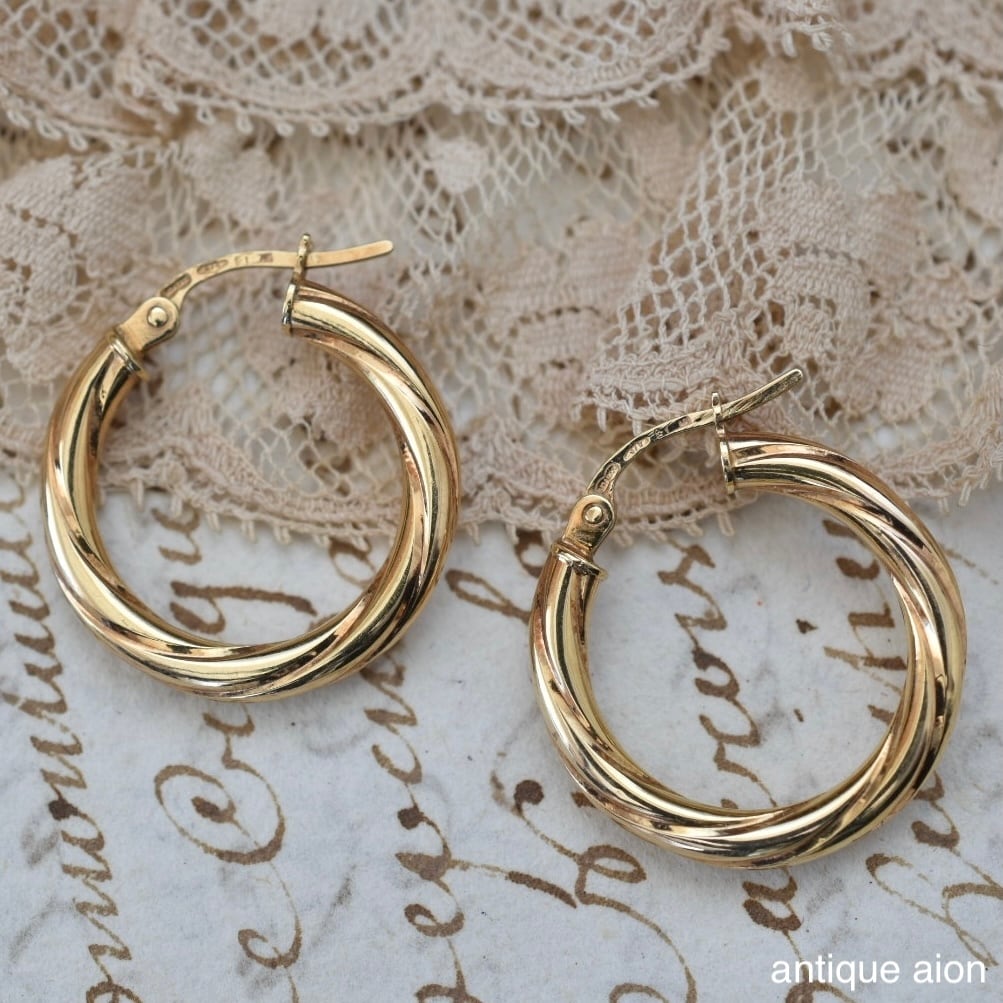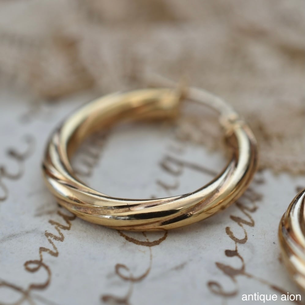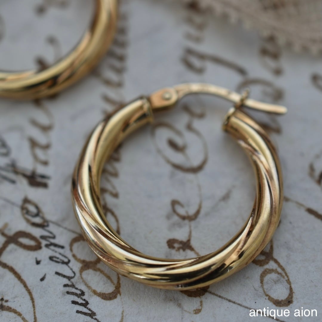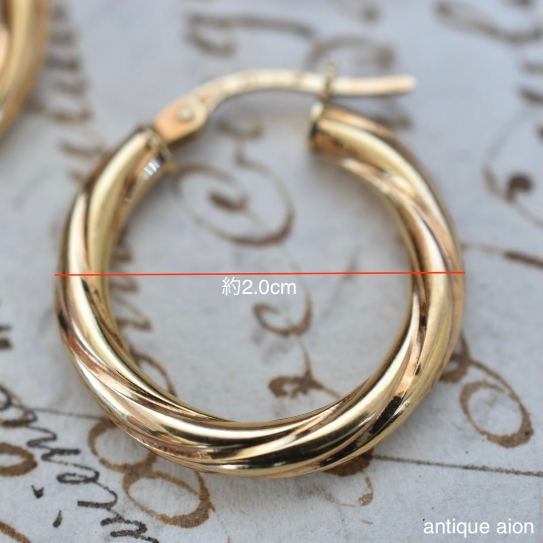 イタリア製 ヴィンテージ 1980年代頃 UNOAERRE(ウノアエレ) 9ctゴールド ツイストフープピアス