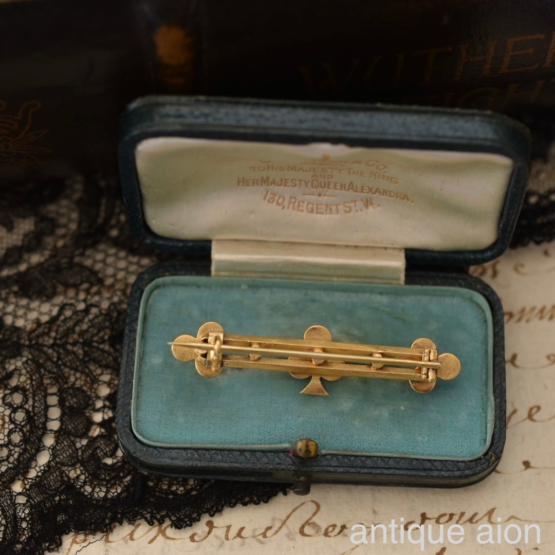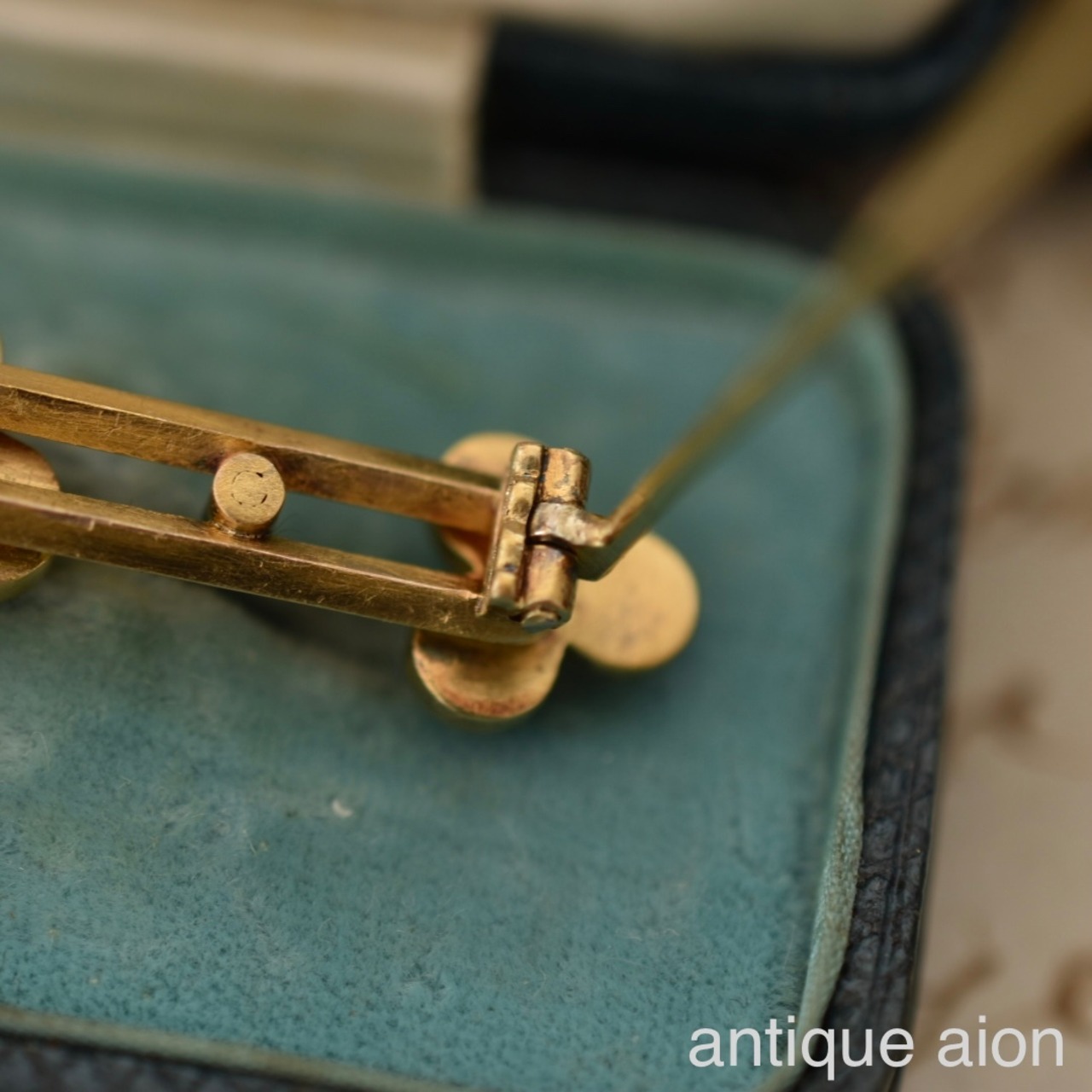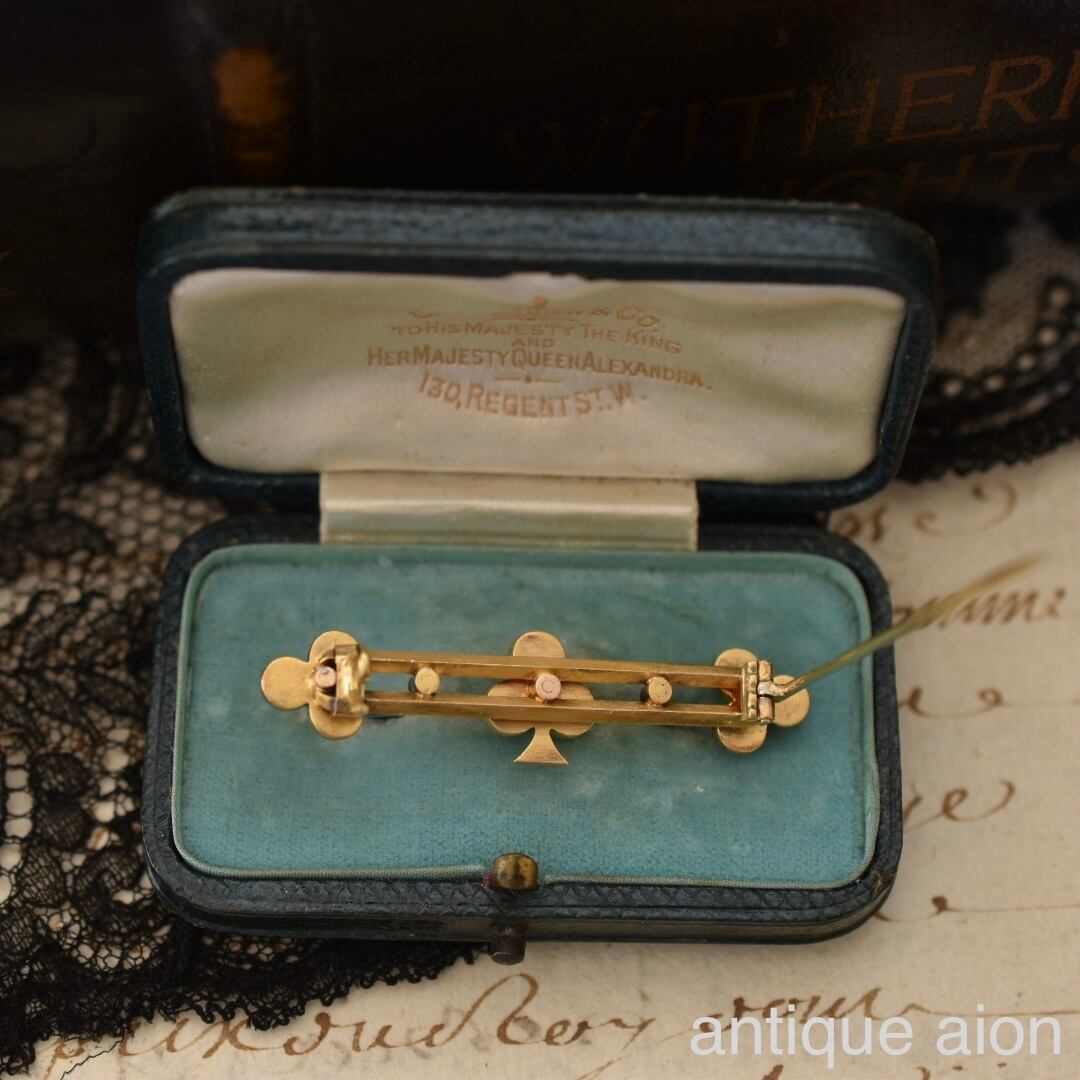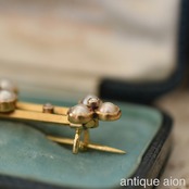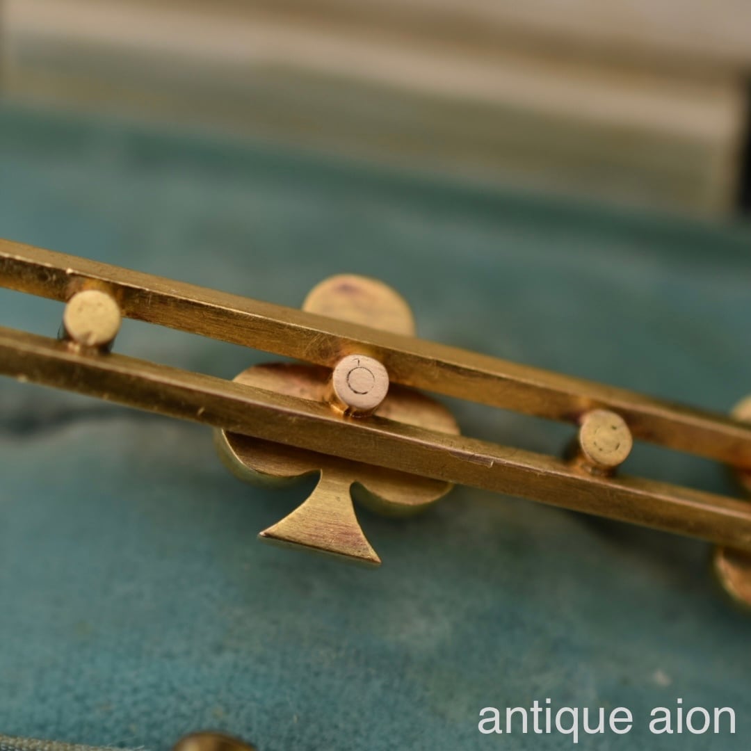 英国アンティーク 1880年頃 ヴィクトリア朝時代 23ctゴールド 天然ダイヤモンド&天然シードパール クローバーブローチ