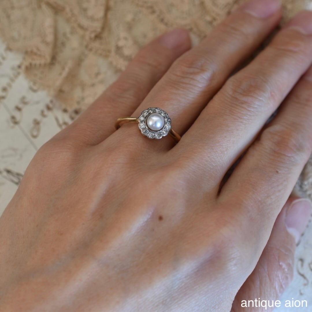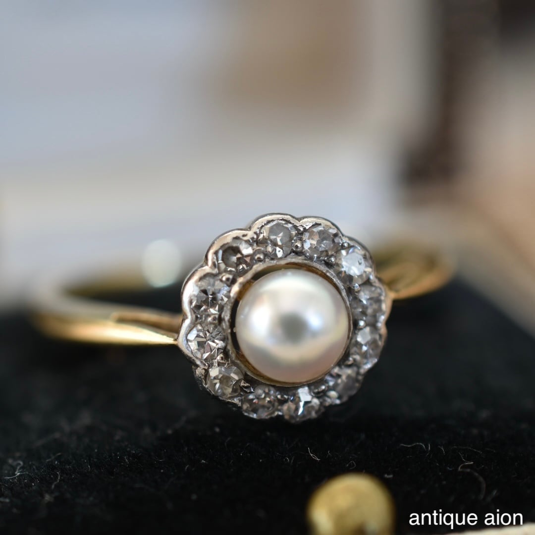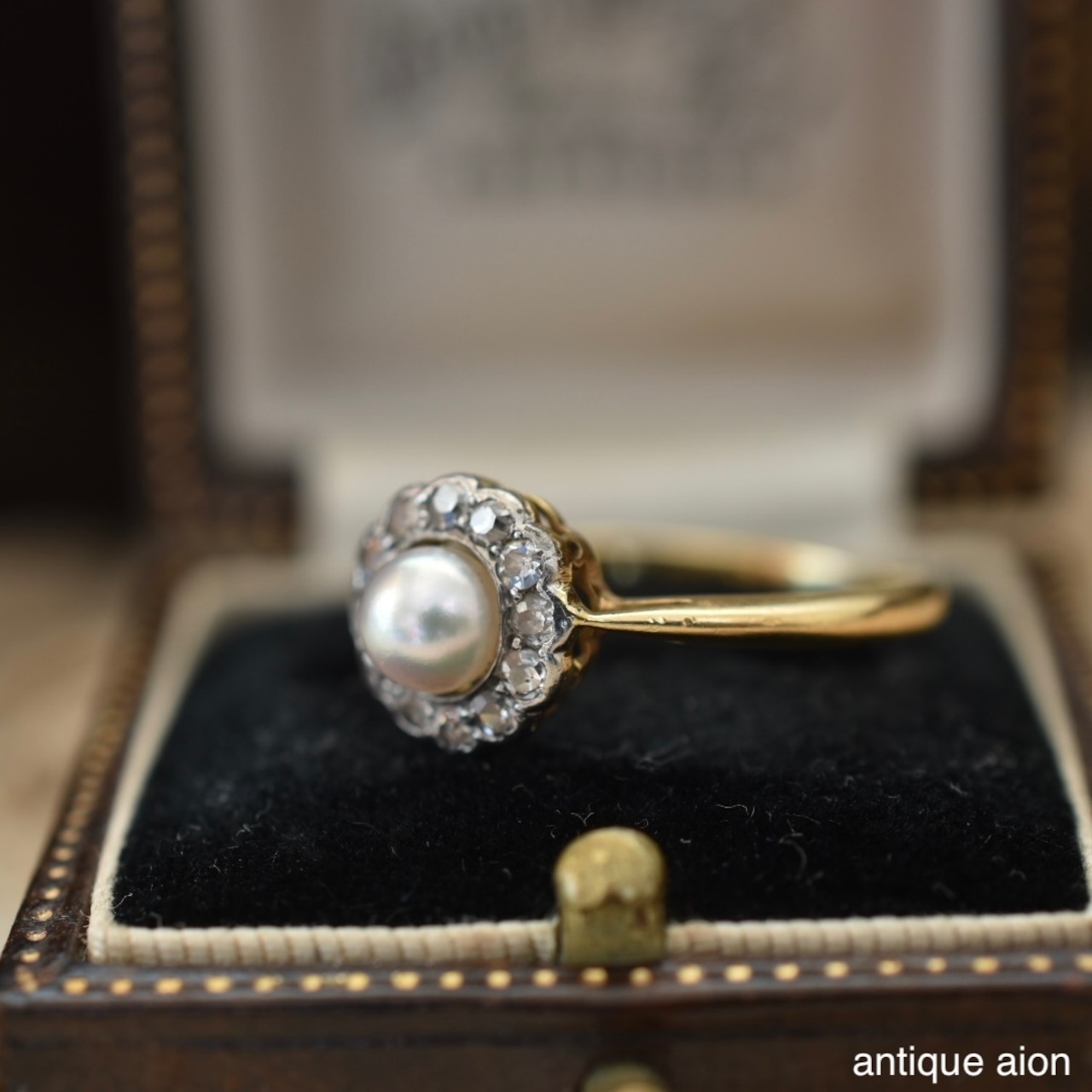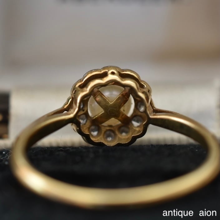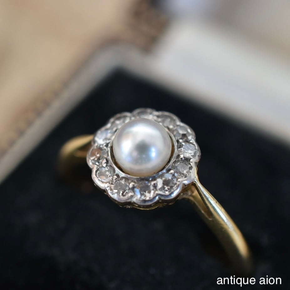 英国アンティーク 19世紀末-20世紀初頭 天然アコヤ真珠と天然ダイヤモンドのクラスターリング