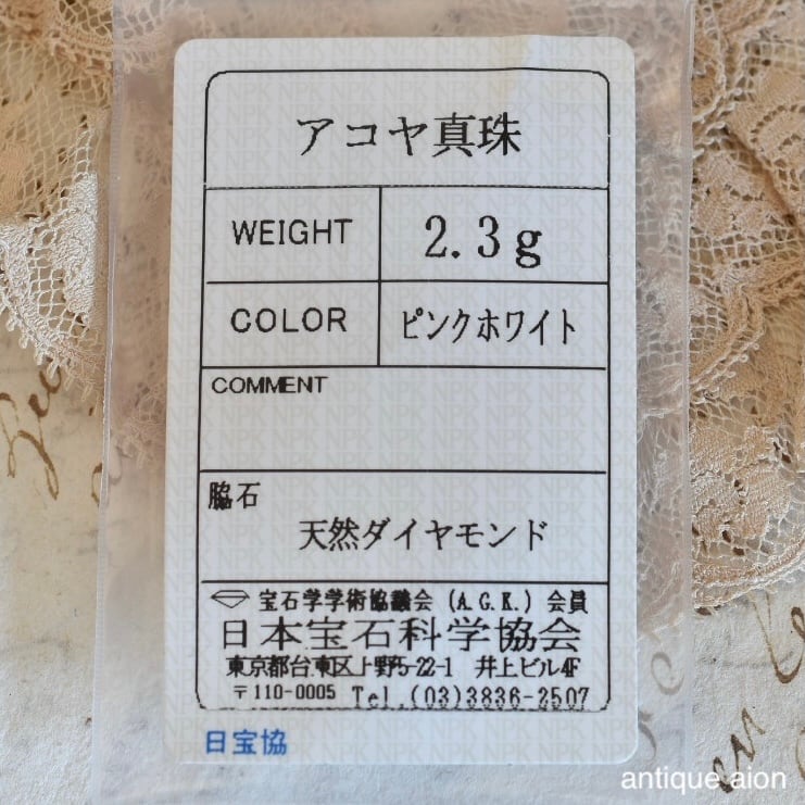 天然ダイヤモンド、天然アコヤ真珠につきましては、専門機関にて鑑別済みです。