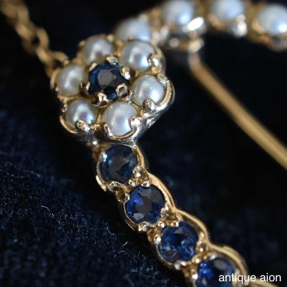 英国ヴィンテージ 1985年 ロンドン 9ctゴールド 天然サファイア&パールのブローチ
