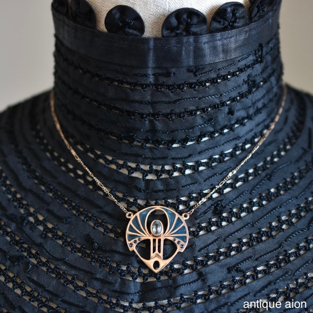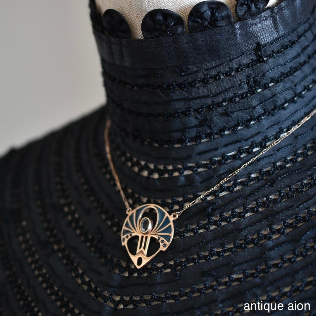 2000年にロンドンで製作された、アール・ヌーヴォー様式を思わせるデザインが美しい14金ゴールドのネックレスです。