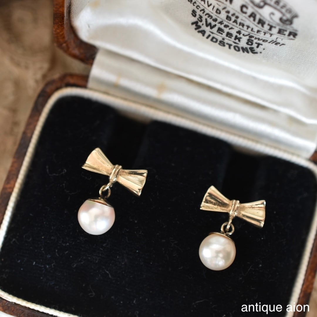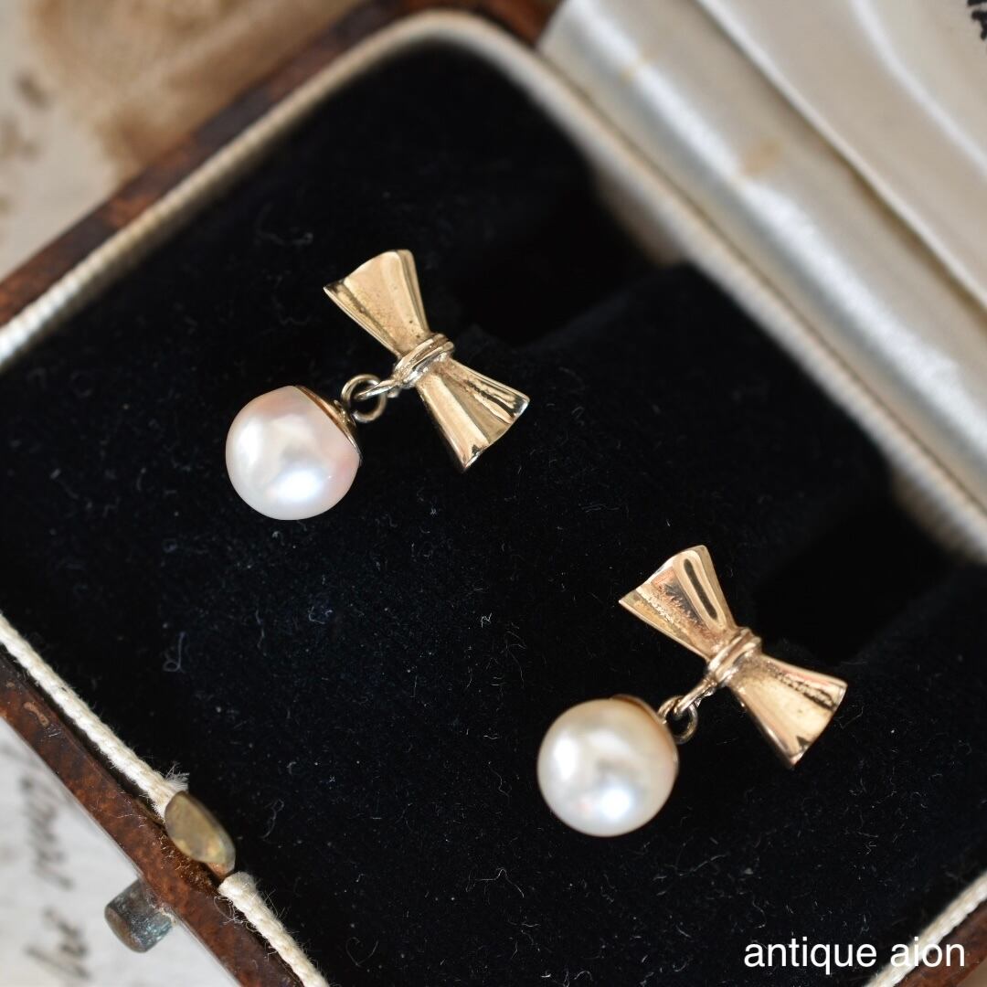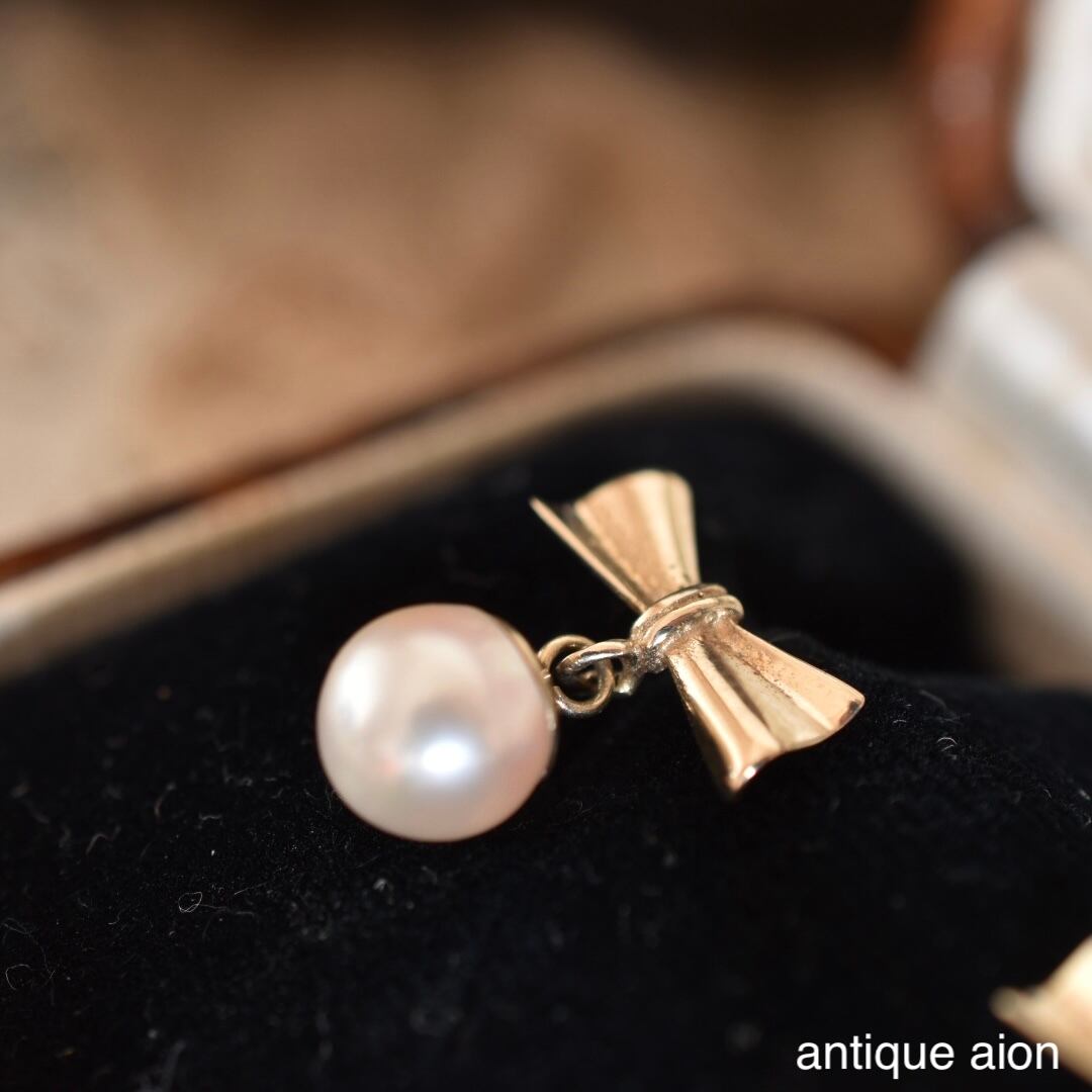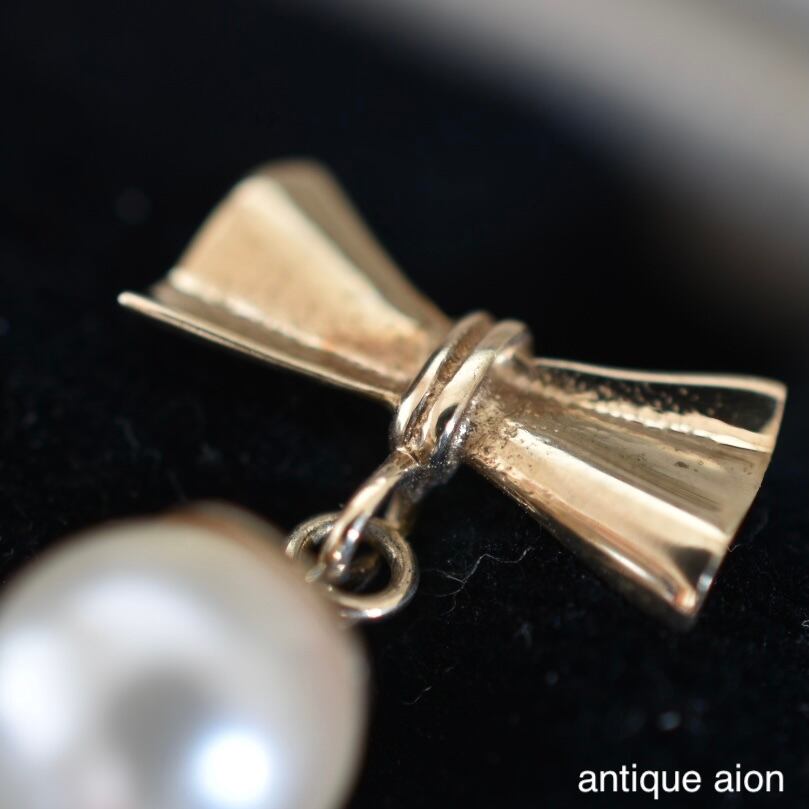 9ctゴールド アコヤ真珠 リボンモチーフ ピアス