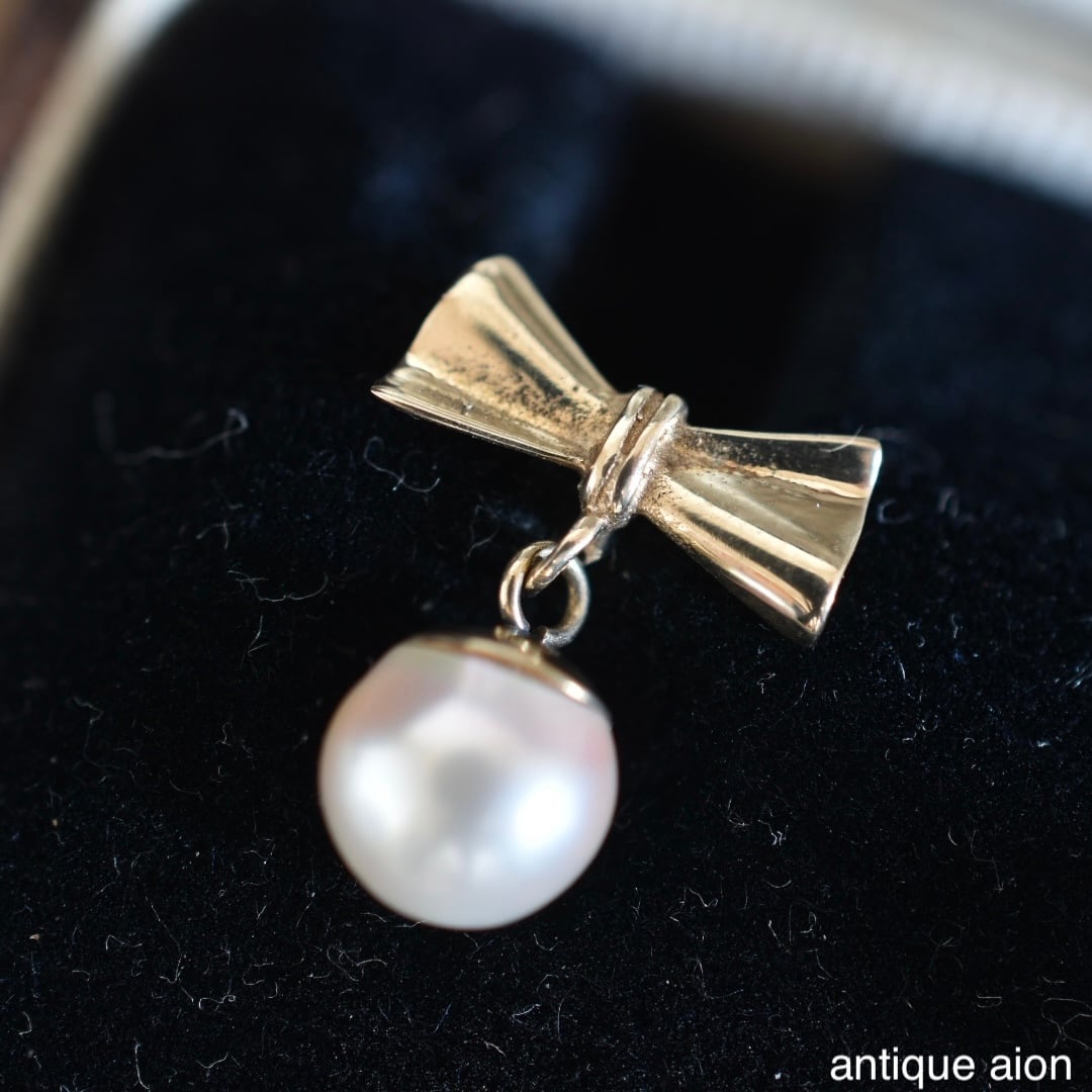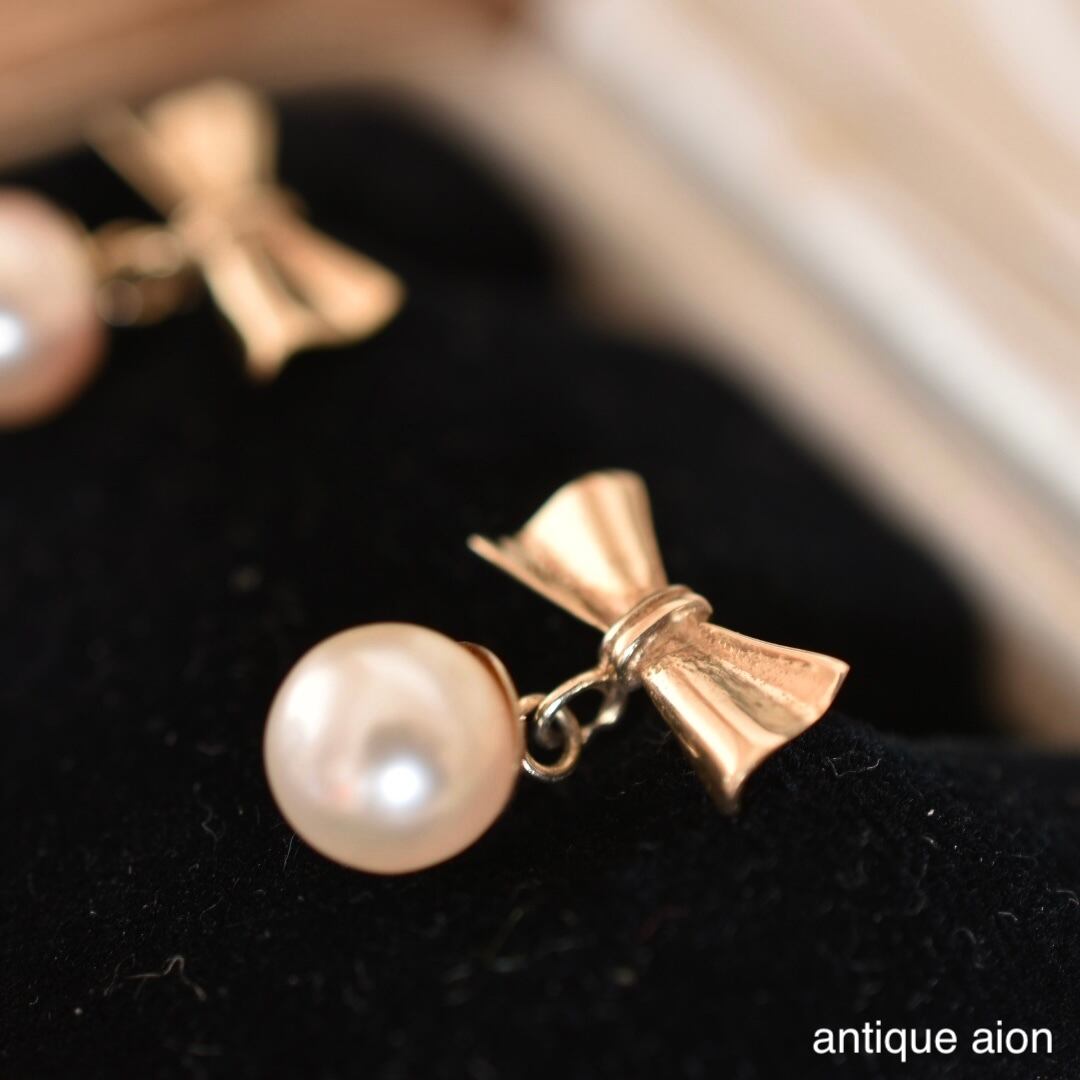 やさしい曲線でかたどられたリボンモチーフの下に、ころんとしたアコヤ真珠が揺れる、上品で可憐なデザイン。