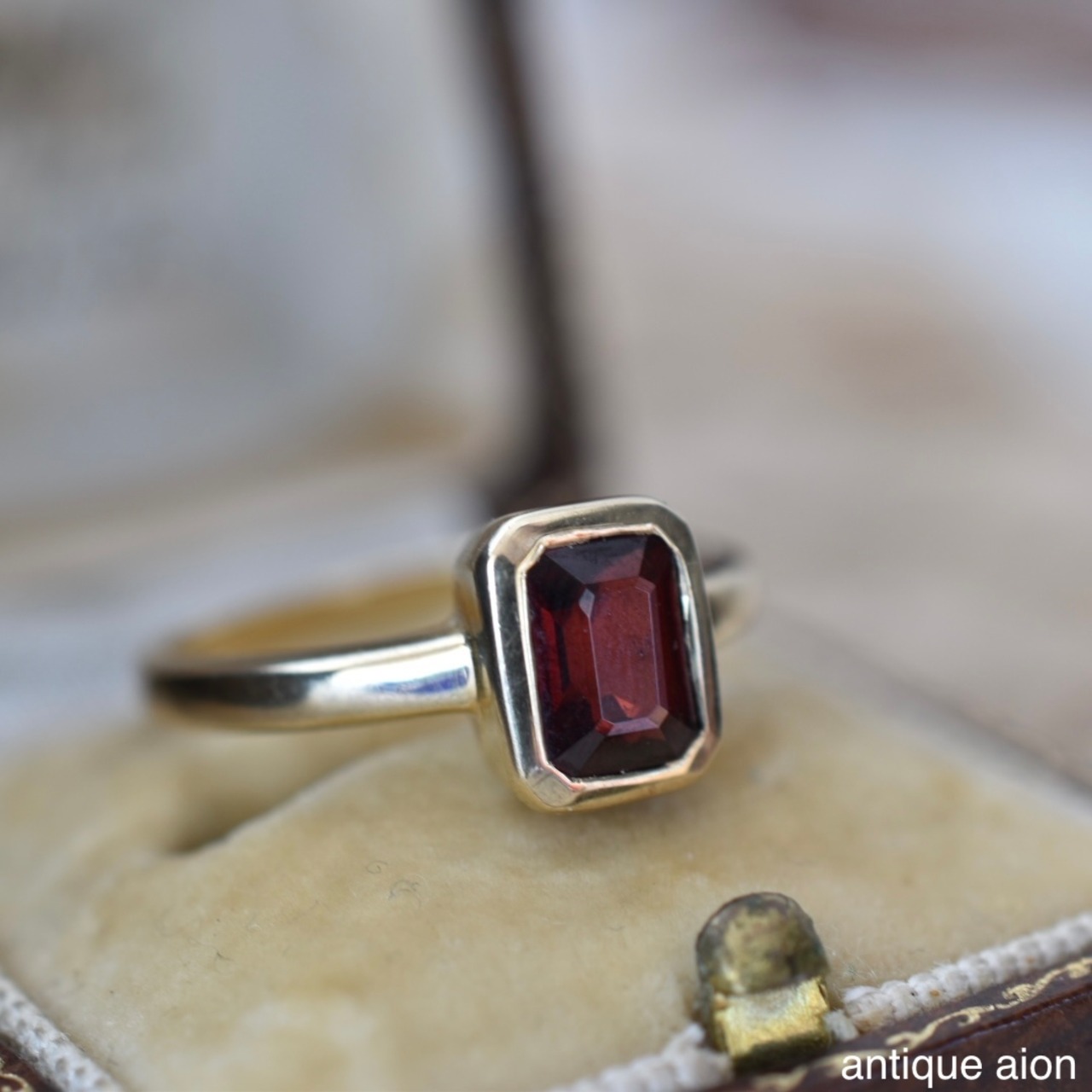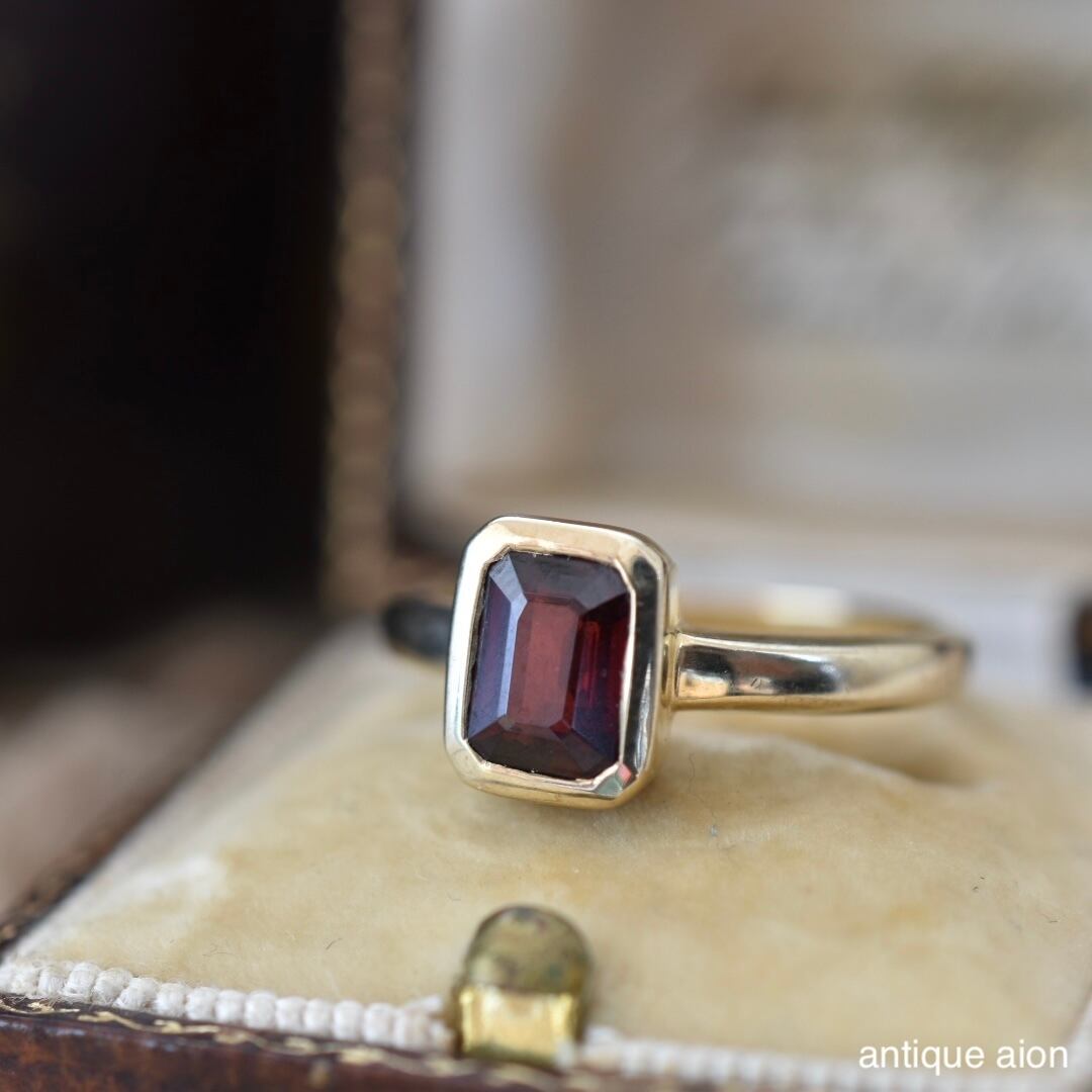 天然ロードライトガーネットが、静かに輝きを宿す英国製リングです。