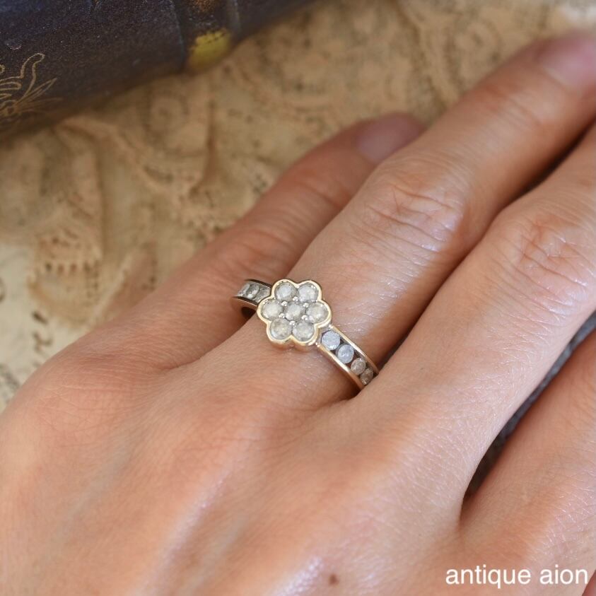 中央には複数の天然ダイヤモンドが寄り添うように配され、クラスターならではの広がりのある輝きを生み出しています。
