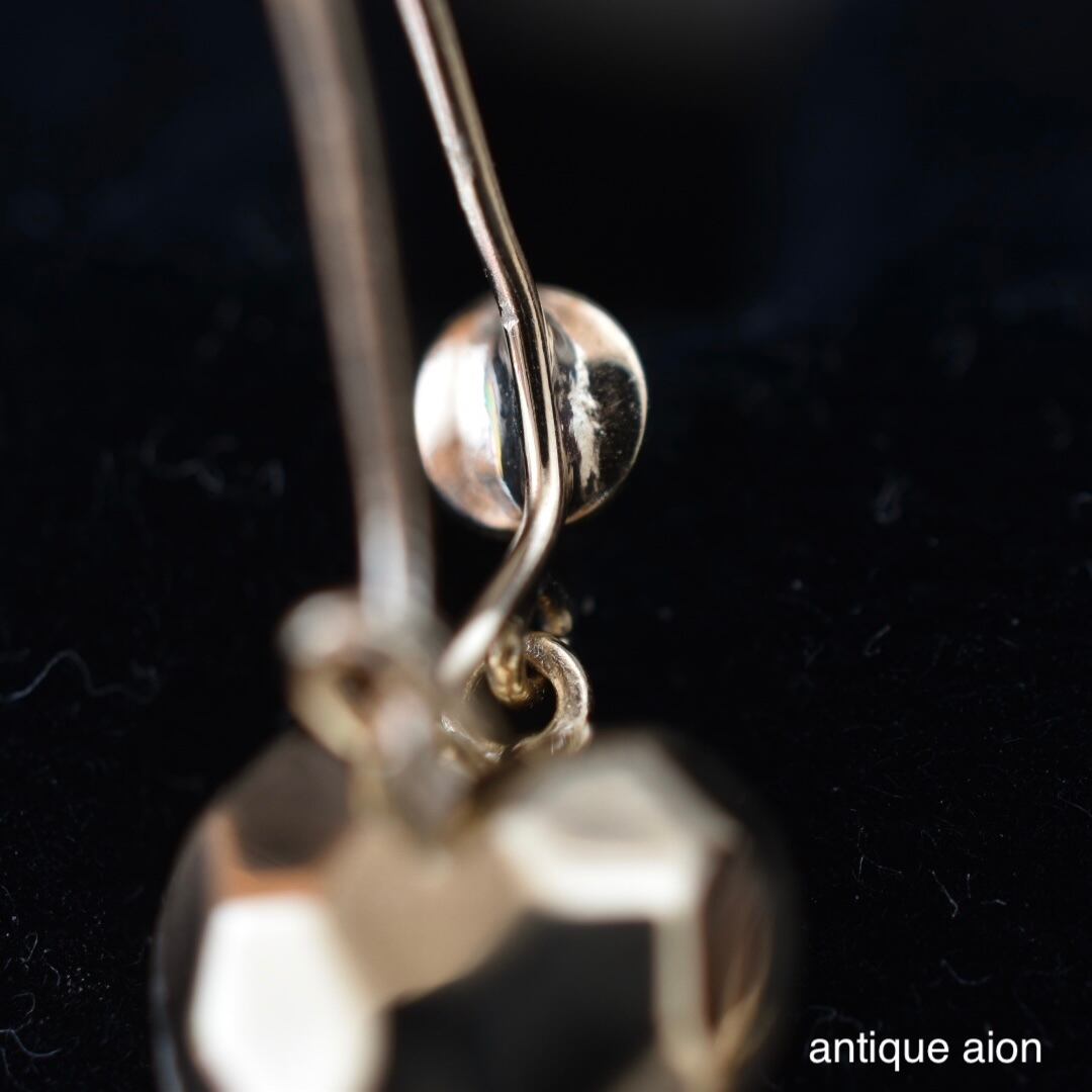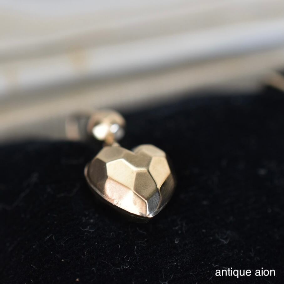光を受けて繊細にきらめく、多面体に仕上げられたハートモチーフが印象的な、英国製ヴィンテージピアスです。