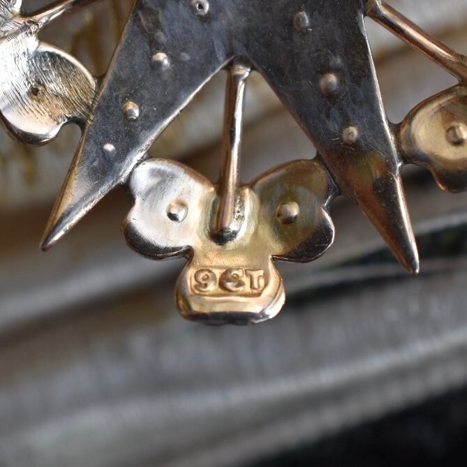 19世紀末から20世紀初頭のイギリスのアンティーク、夜空に輝く一番星の周りを6つの三つ葉のクローバーが取り囲んでいるようなデザインのペンダントトップ。