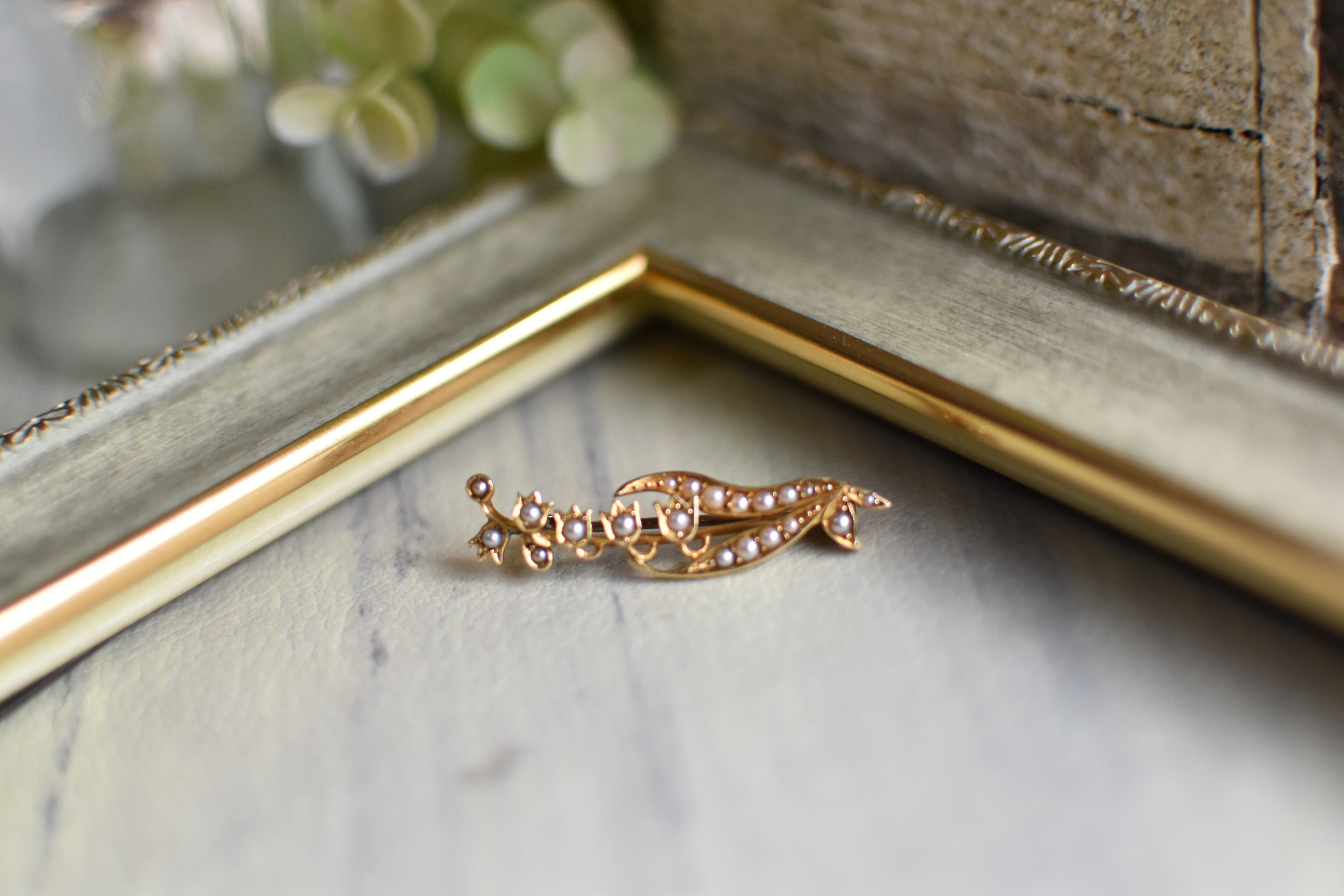 英国アンティーク 20世紀初頭 K14ゴールド シードパール 鈴蘭のブローチ